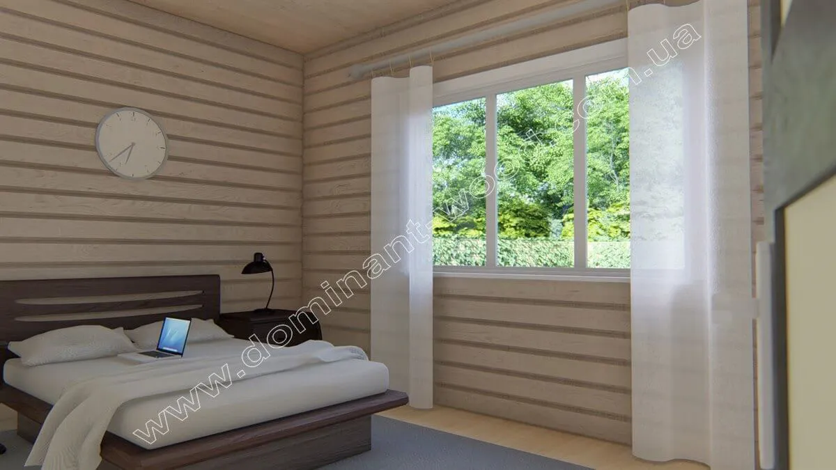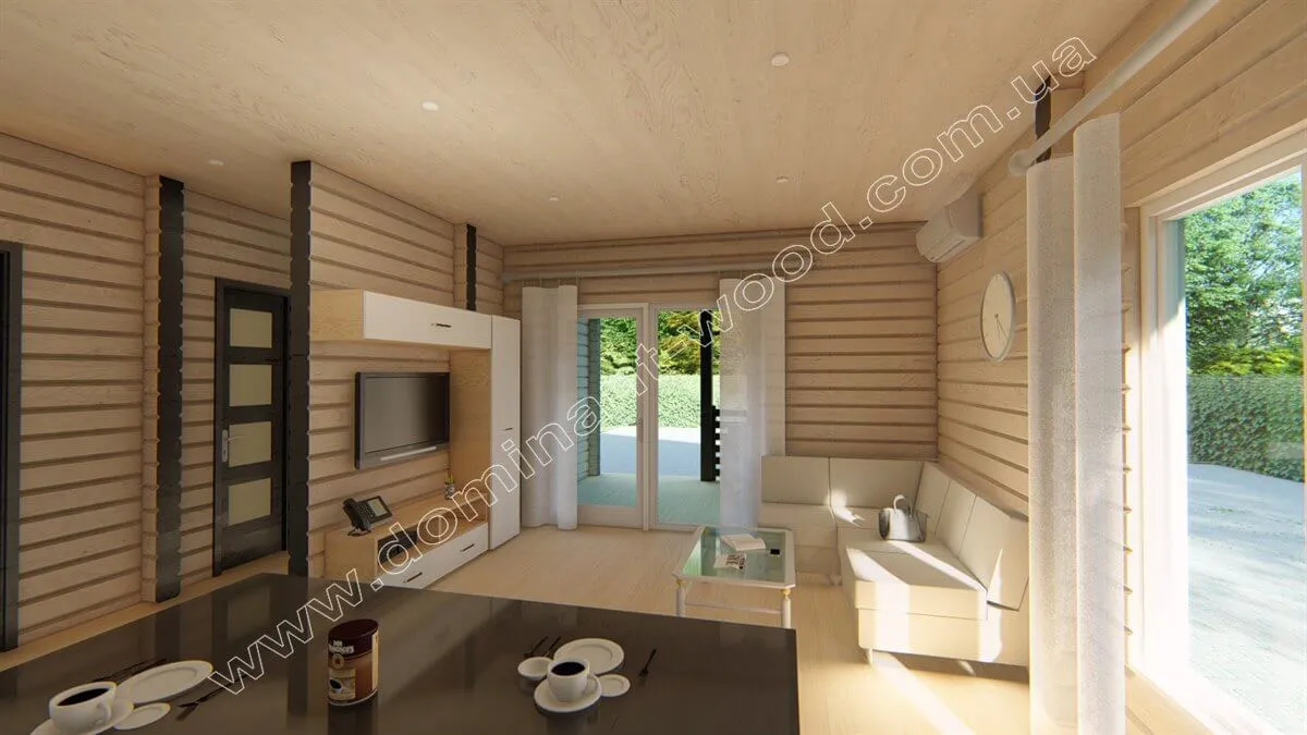 «Мадж» - справжня класика серед дачних будиночків. Недарма, ми включили цей проект в добірку: «10 міні-будиночків «Домінант», в яких хочеться жити!». Тут усе зосереджено на комфорті у форматі «виїхати на природу, пожити трохи в тиші». Величезна тераса створює комфортабельну зону для відпочинку в просторі будинку на свіжому повітрі, а кухня-студія з відкритим плануванням - зручне місце для готування, посиденьок і прийому гостей. Простора спальня з великим вікном створює відчуття постійної присутності на природі. Санвузол достатньо великий для сезонного проживання. Такий будинок ідеально підійде для пари або невеликої сім’ї на вихідні, відпустку чи літо. Але для повноцінного цілорічного проживання знадобиться адаптація: утеплення, зонування, або збільшення площі для зберігання речей чи додаткової кімнати.