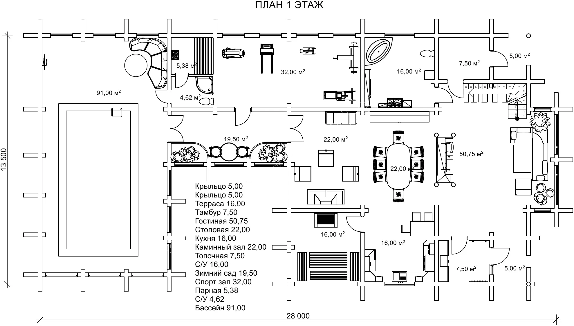 камінна зала (м²)22