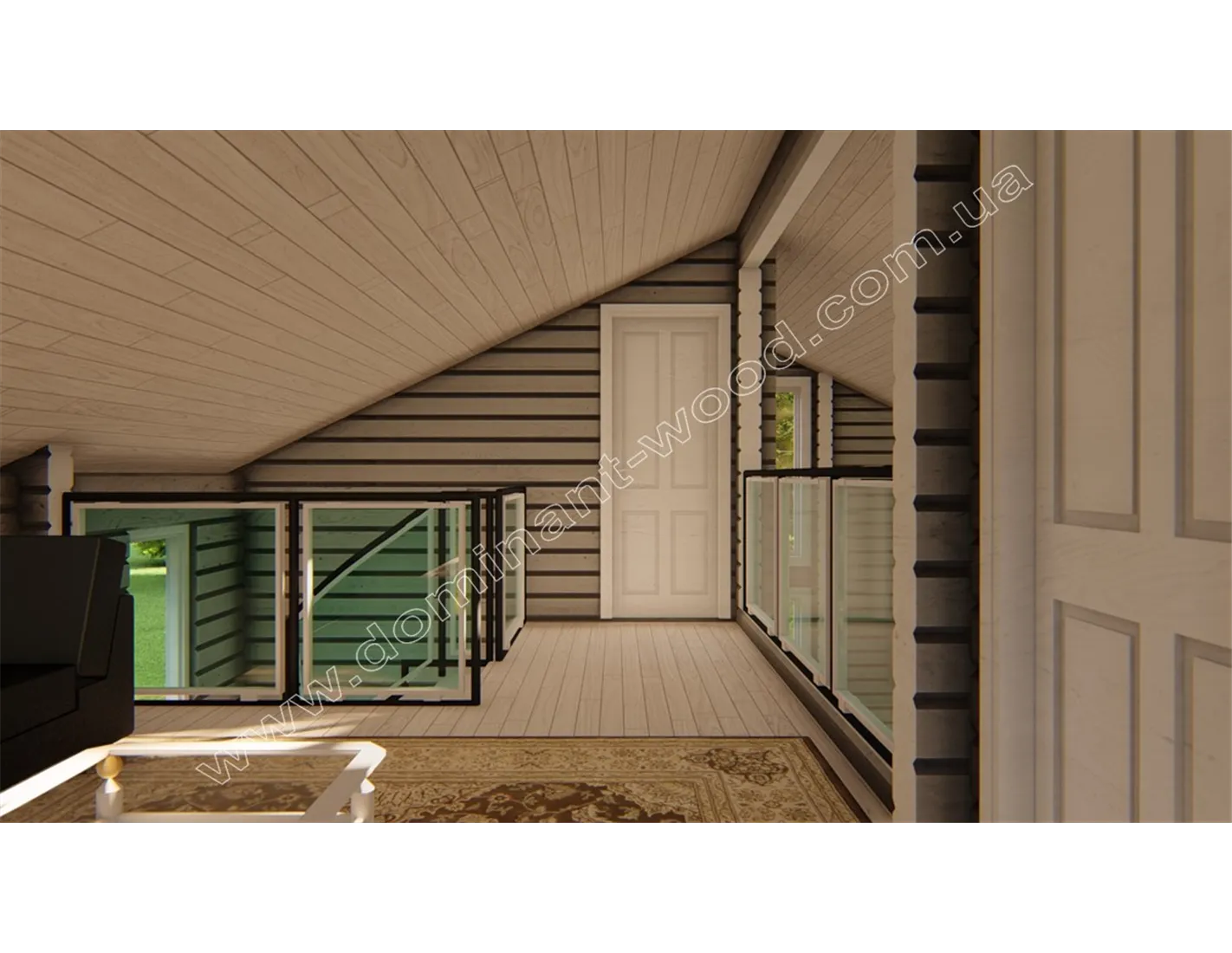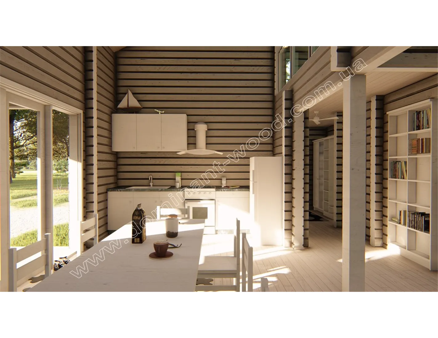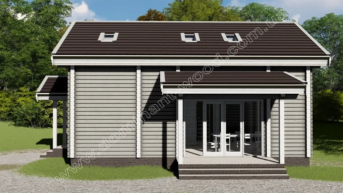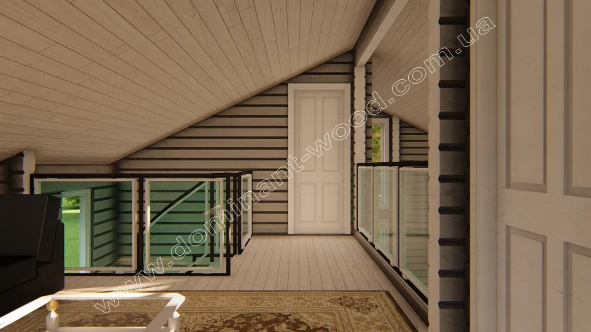 Проект «Донім» – це дуже затишна дерев’яна садиба, побудована із соснового, висушеного та відшліфованого бруса для проживання великої родини. Солідний зовнішній вигляд особняка та його стриманий, лаконічний дизайн виглядає неймовірно урочисто та виразно. Добротний заміський особняк із соснового, деревного масиву уособлює свого господаря як авторитетну та статусну людину. Будівництво будинку 9х10,5 м із сухого, профільованого бруса дозволить реалізувати мрію про власну сімейну садибу, справжній домашній осередок для кількох поколінь роду. Для кожного домочадця плануванням проекту «Донім» виділяється особистий простір, а також є спільний простір для відпочинку та спільного, сімейного дозвілля. Внутрішнє наповнення маєтку з брусу «Доним» продумано не тільки функціонально, а й естетично, чого тільки вартий розкішний вид на вітальню з антресольного балкончика другого світла. Ознайомившись докладніше з плануванням приміщень у дерев’яному будинку за проектом «Донім», ви знайдете в ньому великий простір для фантазії створення розкішного та сучасного інтер’єру.