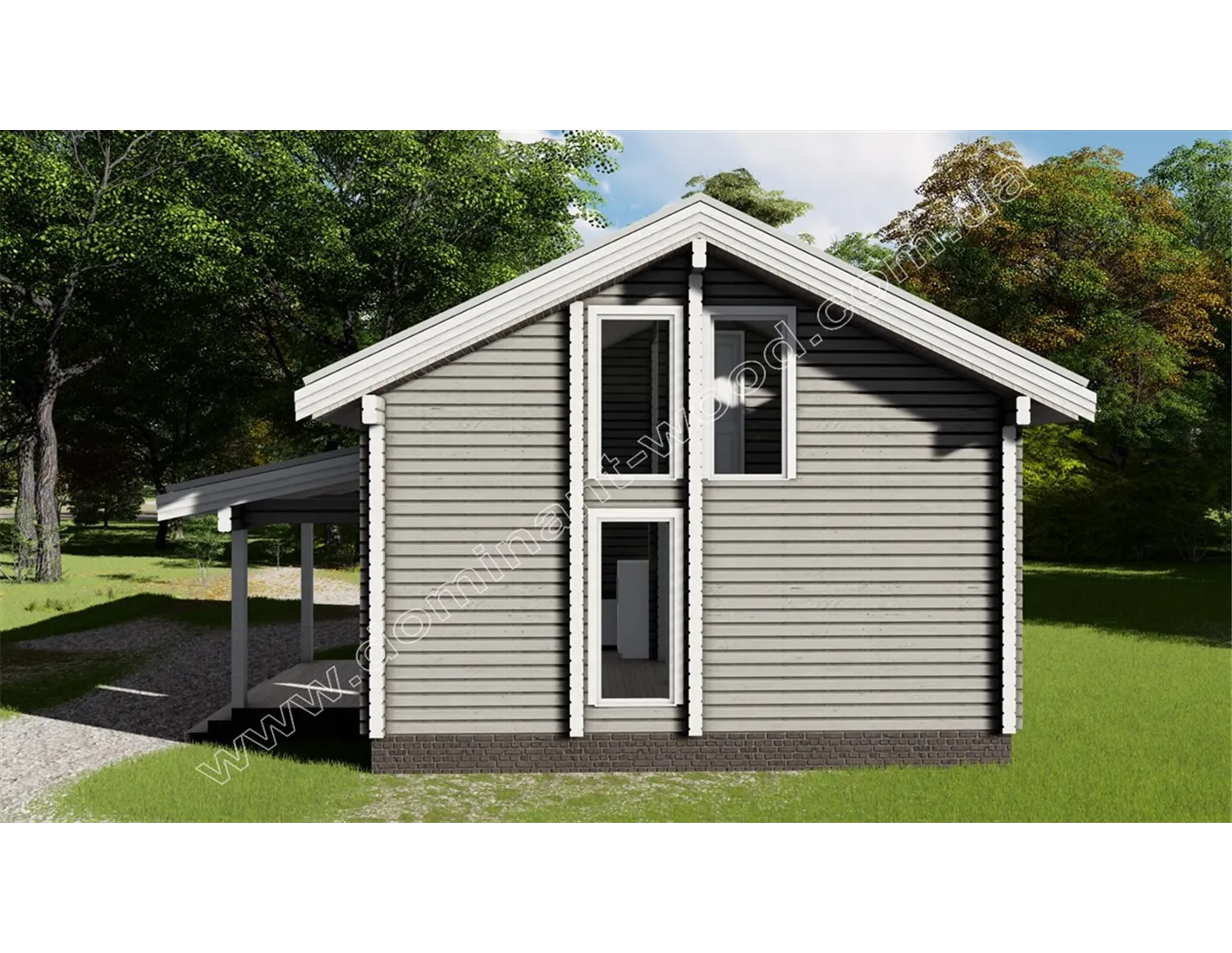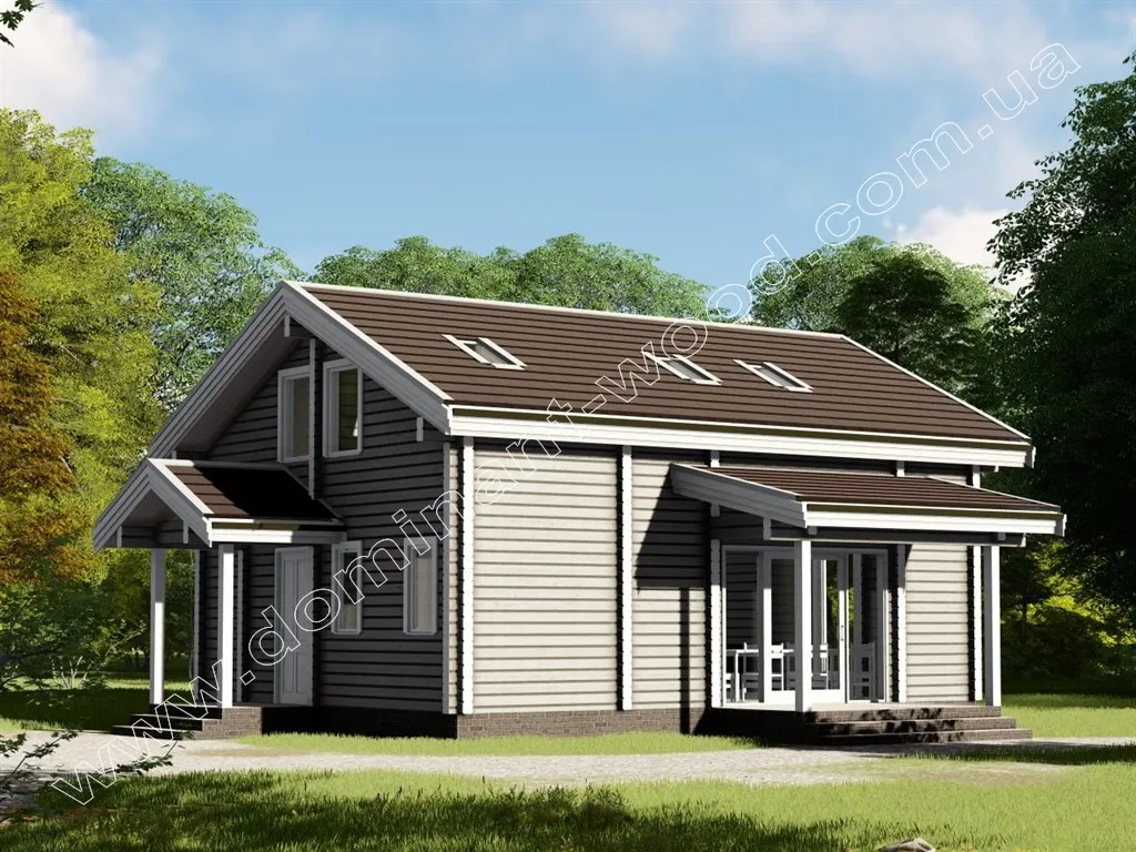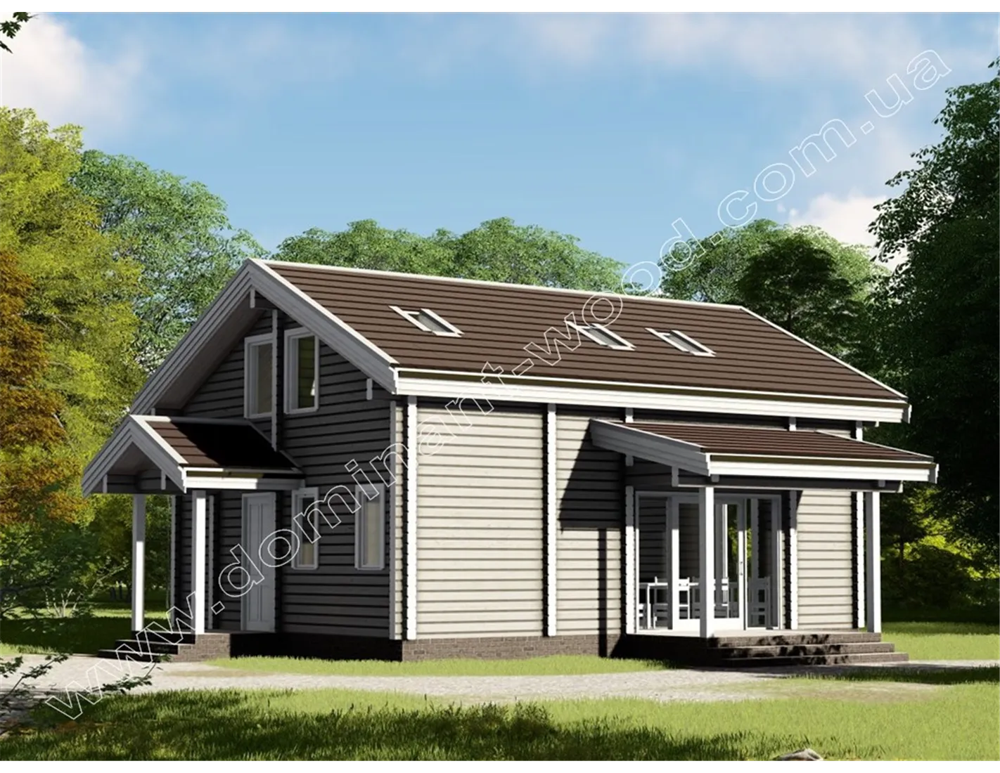 Проект «Донім» – це дуже затишна дерев’яна садиба, побудована із соснового, висушеного та відшліфованого бруса для проживання великої родини. Солідний зовнішній вигляд особняка та його стриманий, лаконічний дизайн виглядає неймовірно урочисто та виразно. Добротний заміський особняк із соснового, деревного масиву уособлює свого господаря як авторитетну та статусну людину. Будівництво будинку 9х10,5 м із сухого, профільованого бруса дозволить реалізувати мрію про власну сімейну садибу, справжній домашній осередок для кількох поколінь роду. Для кожного домочадця плануванням проекту «Донім» виділяється особистий простір, а також є спільний простір для відпочинку та спільного, сімейного дозвілля. Внутрішнє наповнення маєтку з брусу «Доним» продумано не тільки функціонально, а й естетично, чого тільки вартий розкішний вид на вітальню з антресольного балкончика другого світла. Ознайомившись докладніше з плануванням приміщень у дерев’яному будинку за проектом «Донім», ви знайдете в ньому великий простір для фантазії створення розкішного та сучасного інтер’єру.