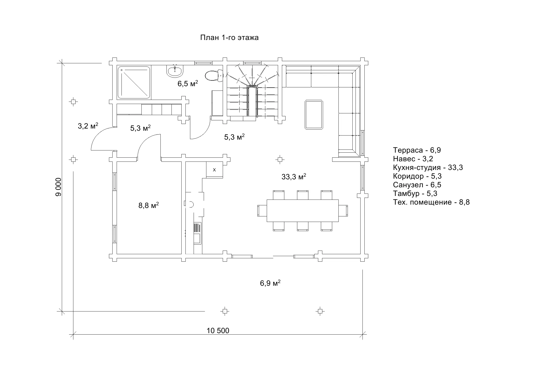 Будинок 9х10,5 м із сухого, профільованого брусу - «Донім»