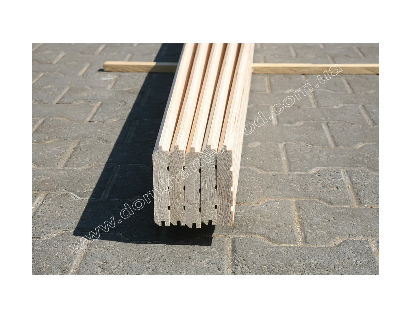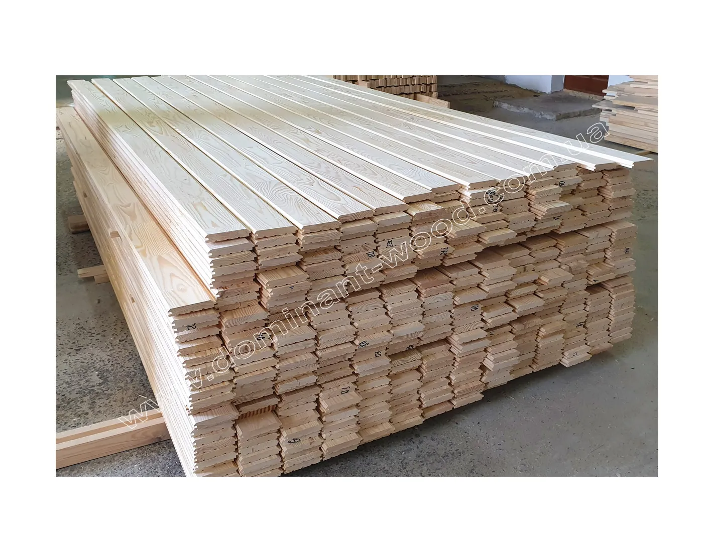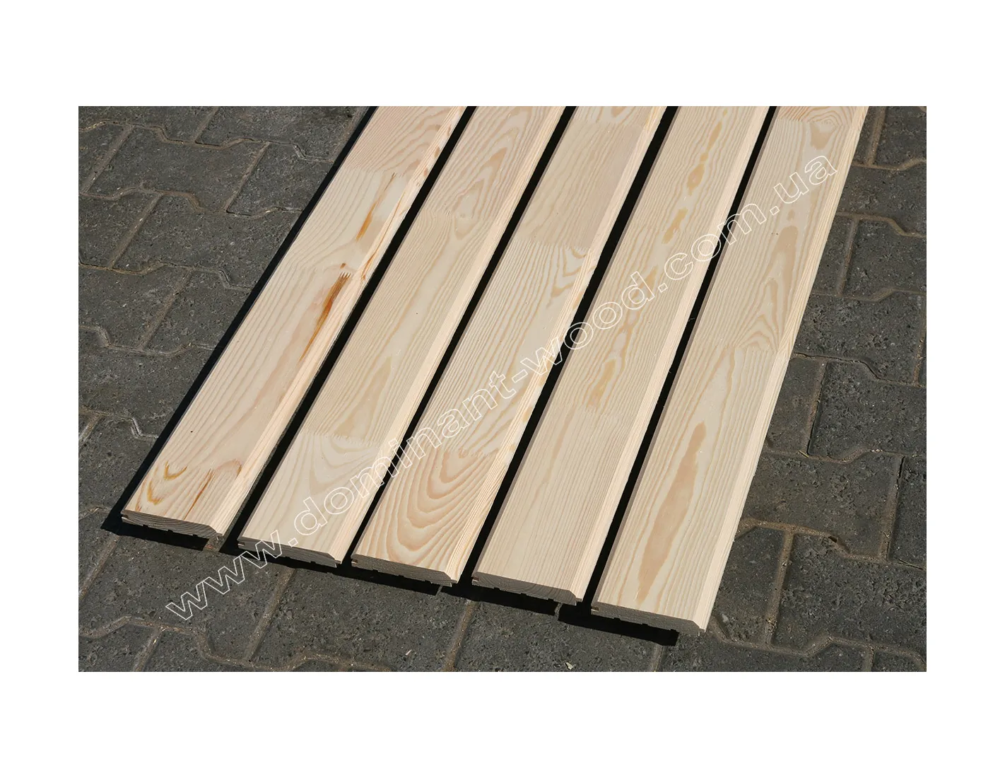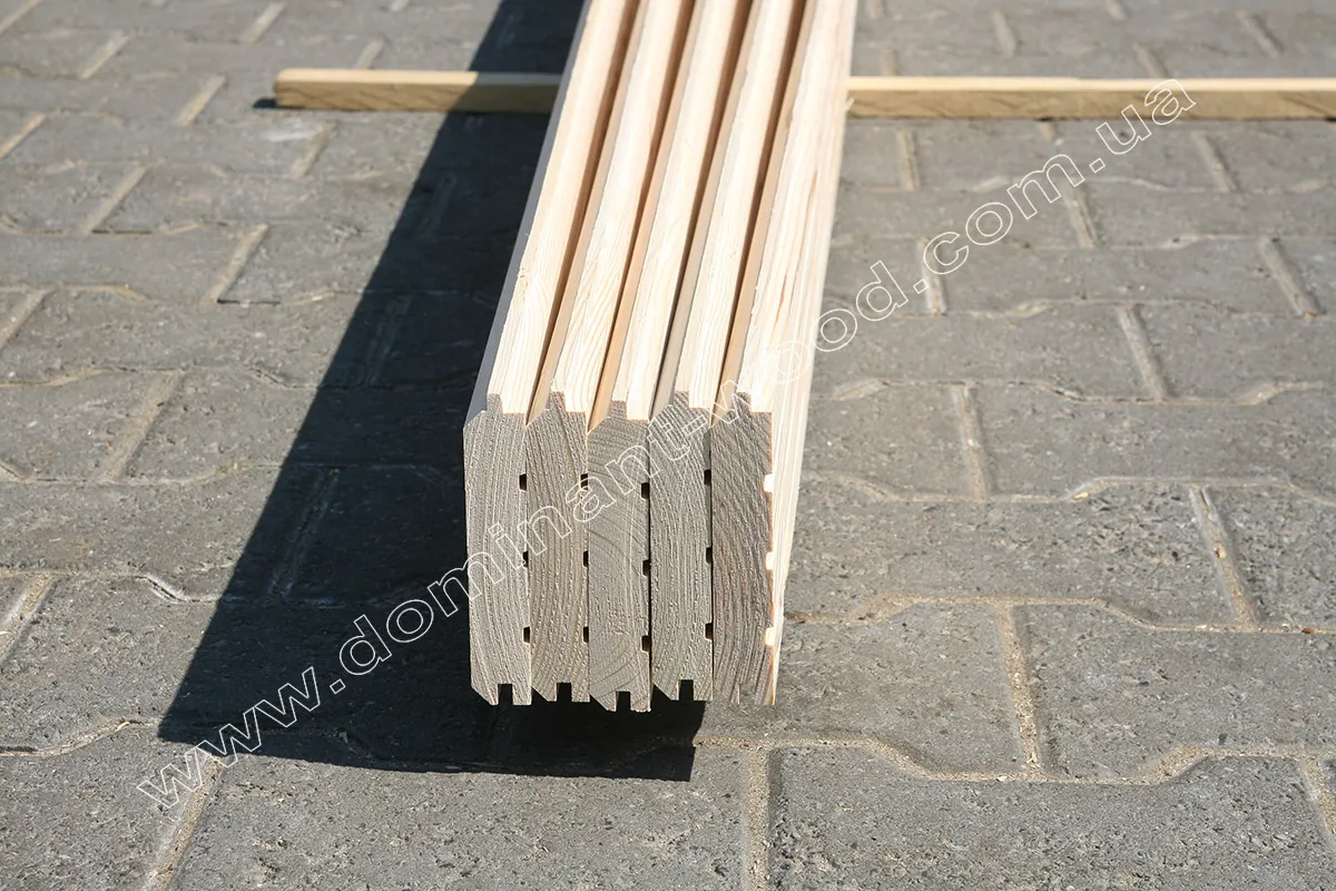 На виробництві «Домінант» фальш брус виготовляється з натурального дерева сосни. Після розпилювання колод на дошки заготовки відправляють на обробку спеціальними фрезами для надання фальш брусу необхідного профілю. Розміри фальш бруса нашого виробництва вказуються на цій сторінці поруч із фото продукції.