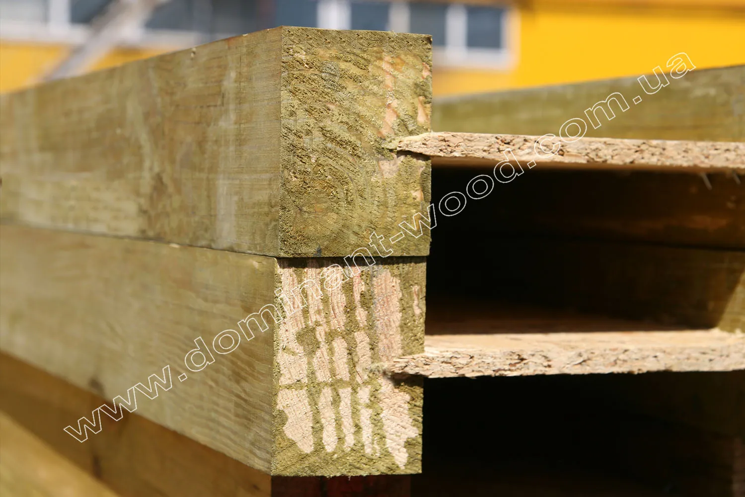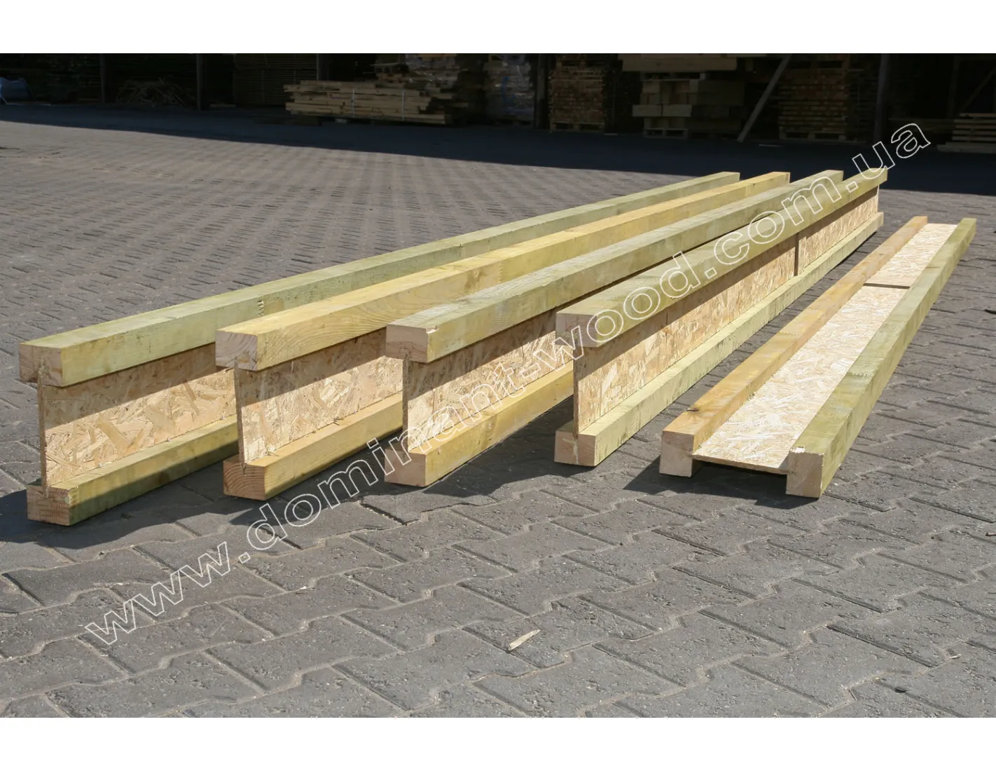 Відмінною заміною металевим двотавровим балкам стали такі ж конструкції з дерева. Виробництво дерев’яних балок перекриття досить складне і вимагає високої точності і підготовки. Дерев’яний двотавр компанії «Домінант» складається з якісних і перевірених матеріалів. Ми використовуємо правильно висушену колоду хвойних дерев (сосни) з вологістю 8%, між брусами укладається OSB-3, товщиною 10мм. Зчеплення цих складових забезпечує професійний поліуретановий клей (Kleiberit PUR).