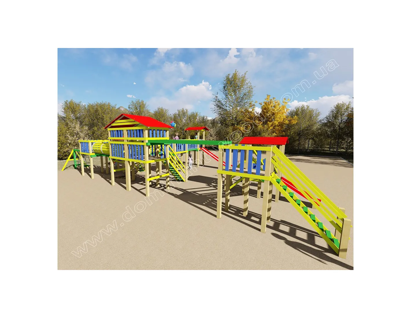 На сайті компанії «Домінант» представлено широкий асортимент дерев’яних комплексів для дітей. Всі вони різні за розмірами і складовими. Кожен майданчик ми виробляємо із соснового сухого брусу. Завдяки щільній структурі і відмінним характеристикам дерево надовго збереже природні властивості і буде забезпечувати надійність конструкції. Крім того, кожен виріб обробляється спеціальним безпечним розчином, що зробить дитячий комплекс по-справжньому міцним і довговічним. Замовляйте виготовлення та монтаж дерев’яного майданчика для ігор «Бебі Парк» - і діти отримають незрівнянне місце для ігор, де можна стати найсміливішим героєм своєї найулюбленішої казки.