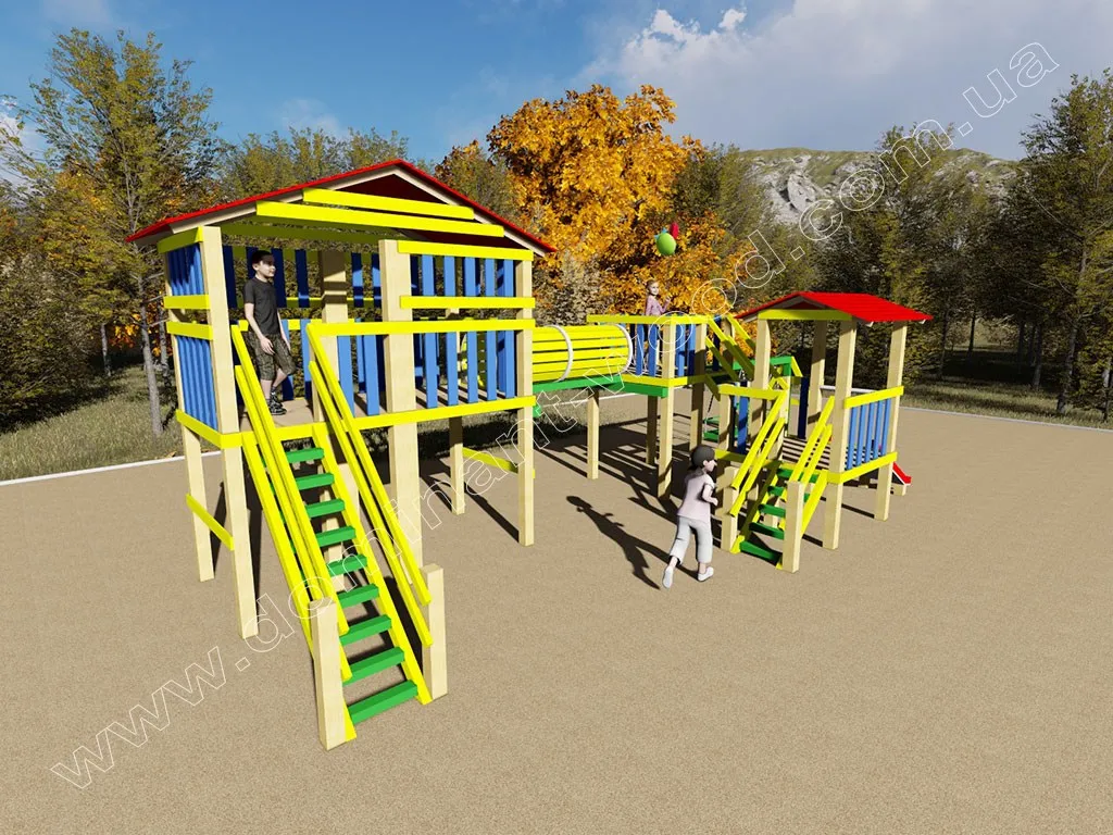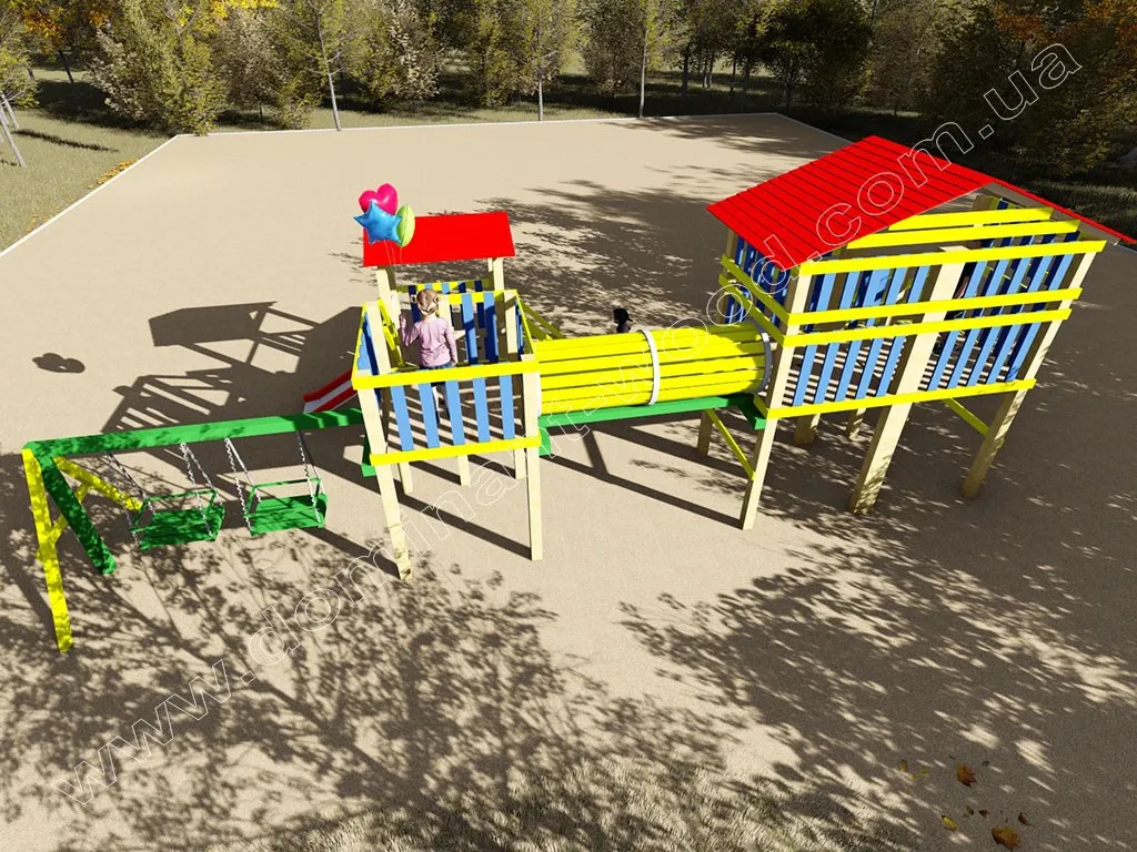 Фахівці компанії «Домінант» ретельно продумали проект дитячого майданчика «Дрімка», щоб він був безпечний для дитини. Оглядові майданчики з бортиками, зручні сходинки, екологічно чистий матеріал - все зроблено для того, щоб батьки не переживали за своїх малюків під час ігор. Ціна комплектації проекту включає башточки, сходи, гірки, тунель і дві гойдалки. Вартість дитячого майданчика вказана на сторінці з проектом. Багатофункціональна дитяча площадка «Дрімка» подарує дітям широкий простір для розваг, вони будуть лазити по сходах, грати на оглядовому майданчику і в будиночку, задовольнятися катанням на гірці і каруселях. Тільки уявіть собі, як добре буде запрошувати сюди друзів малюка і розважатися разом! Такий дерев’яний майданчик з гірками і гойдалками - це не тільки корисне містечко для дітей, а й чудовий внесок у здоров’я і розвиток дитини. Проект «Дрімка» можна розмістити як у дворі приватного будинку, так і біля багатоквартирного - різнокольорові дерев’яні гірки та гойдалки тільки прикрасять ваш двір!