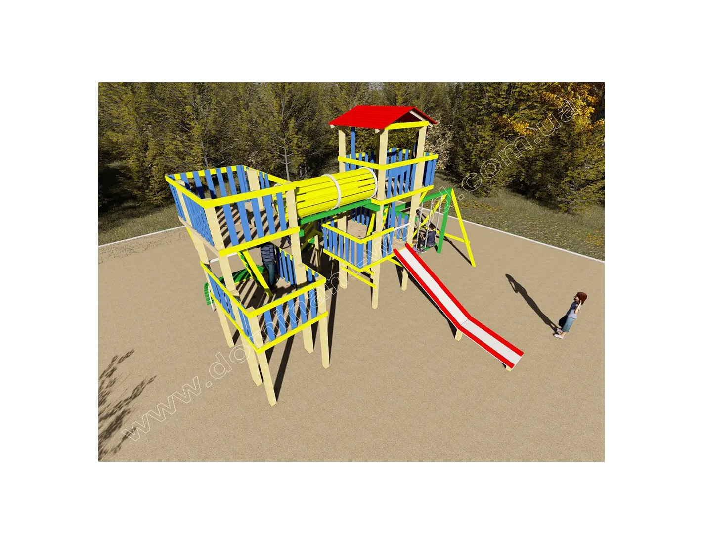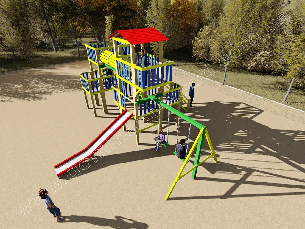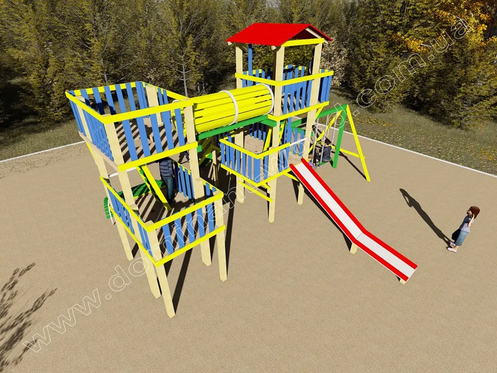 Будівництво дитячого дерев’яної майданчики з гірками і гойдалками