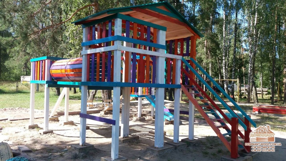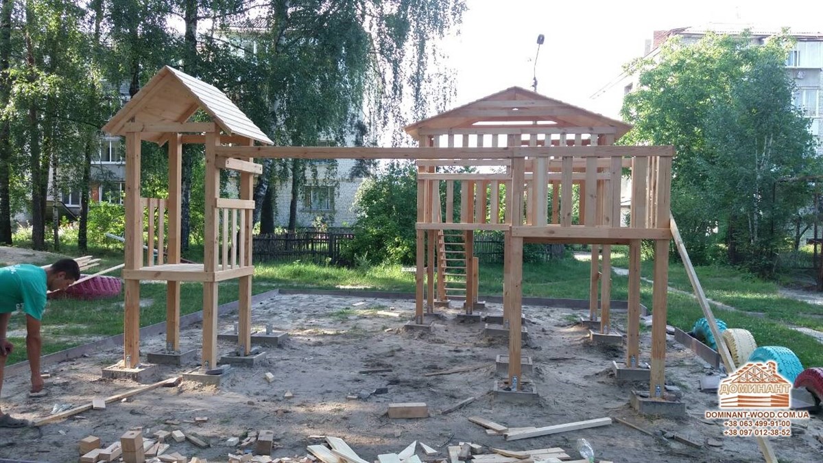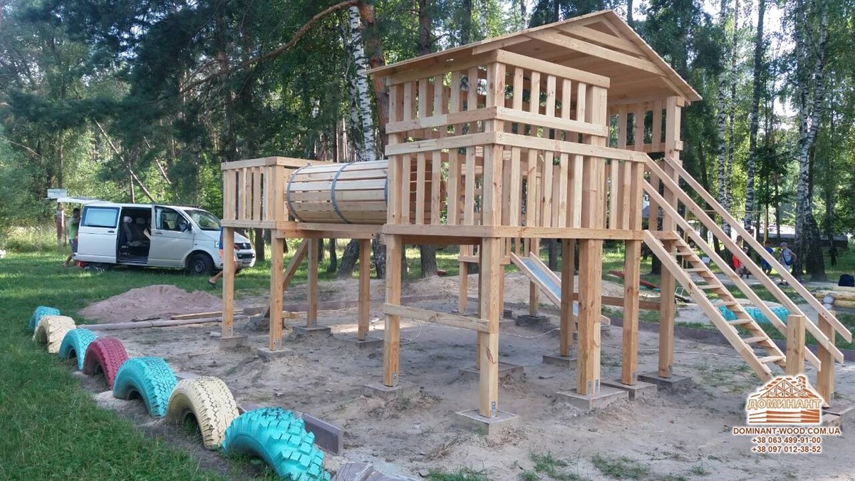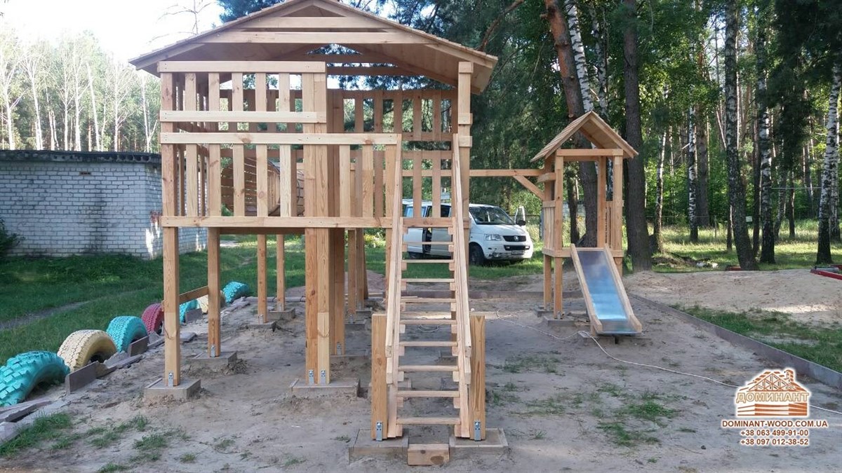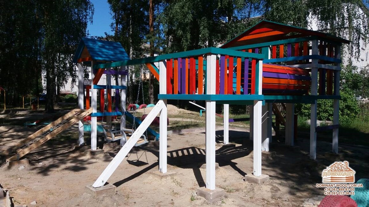 Якщо у вас підростає маленька дитина, фізична активність для неї вкрай необхідна. Не важливо, живете ви у багатоквартирному будинку або в приватному дерев’яному котеджі, головне, щоб у дітей було місце, де вони зможуть пустувати і гратися на свіжому повітрі. Як ви розумієте, дитячий майданчик - ідеальний варіант для таких занять. Дитячі комплекси розвивають координацію рухів, навчають вмінню постояти за себе та іншим корисним навичкам. Природно, дитячий майданчик повинний бути спроектований з розрахунком на повну безпеку дитини. Якщо у вашому дворі все ще немає такого, рекомендуємо терміново облаштувати його! Так ваші діти завжди будуть у полі зору, будуть захоплені цікавими іграми. На майданчику, який зведено у відповідності до норм безпеки, діти не отримають травм. При виборі проекту дитячого комплексу найкраще орієнтуватися на інтереси дітей, але при цьому стежити, що місце для ігор було міцним і надійним. Компанія «Домінант» пропонує будівництво дитячих майданчиків з дерева. Чому саме цей матеріал? Про властивості деревини і відмінності різних порід дерева можна прочитати в цікавій статті на нашому сайті. Деревина екологічна, довговічна і має приємний вигляд, а атракціони з дерева багатофункціональні, комфортні і приємні на дотик.