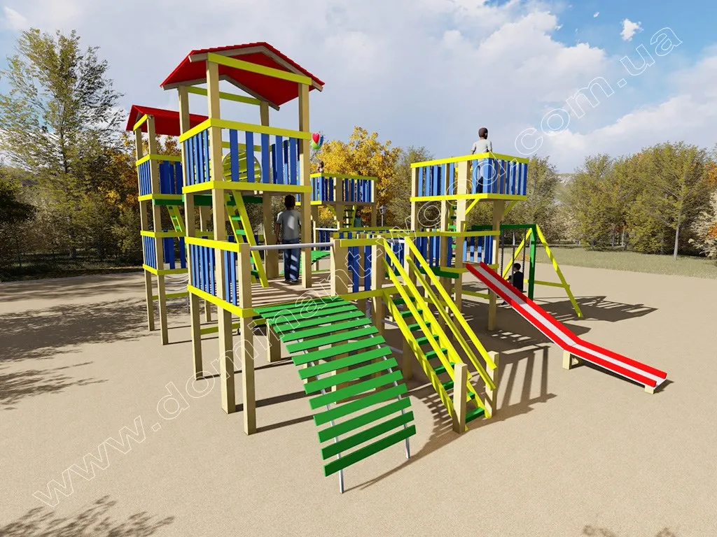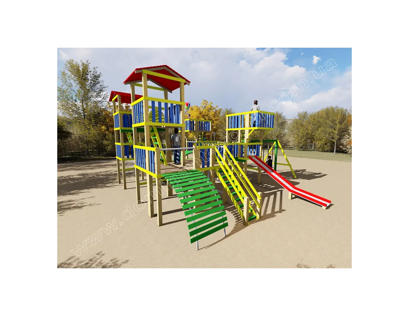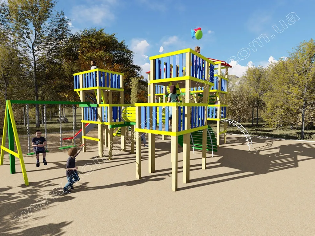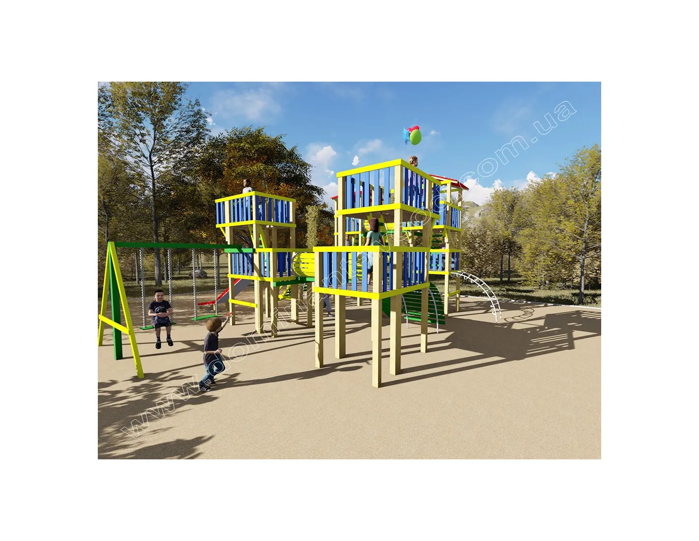 Ігровий майданчик з гіркою і гойдалками з брусу - «Пітер Пен»