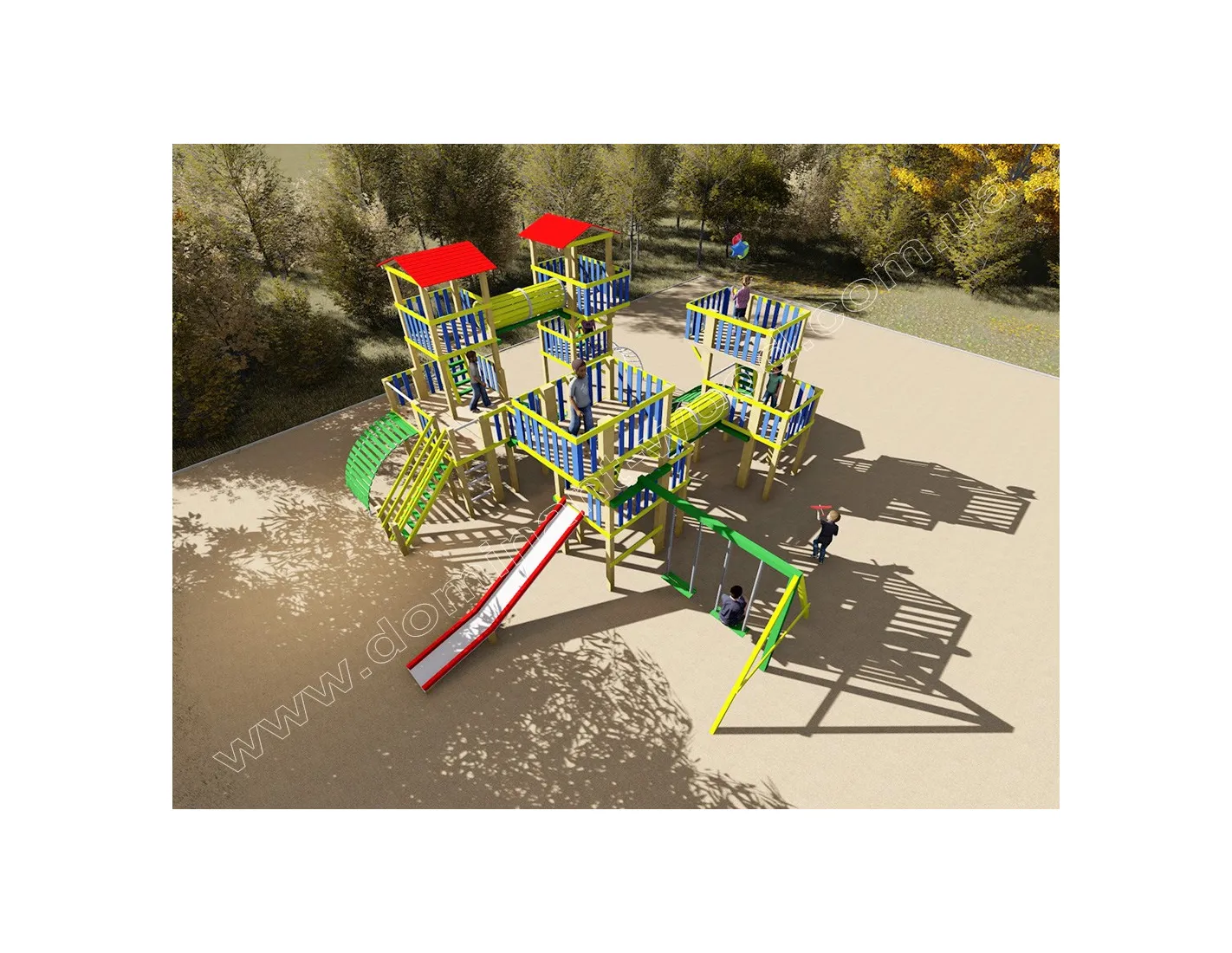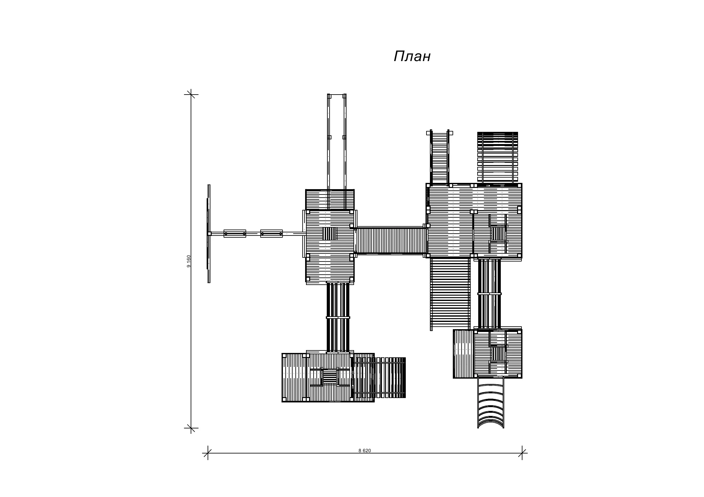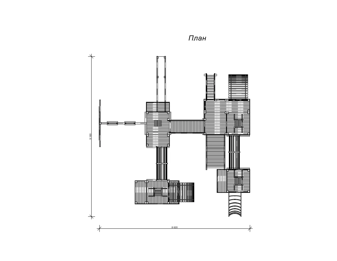 Ігровий майданчик з гіркою і гойдалками з брусу - «Пітер Пен»