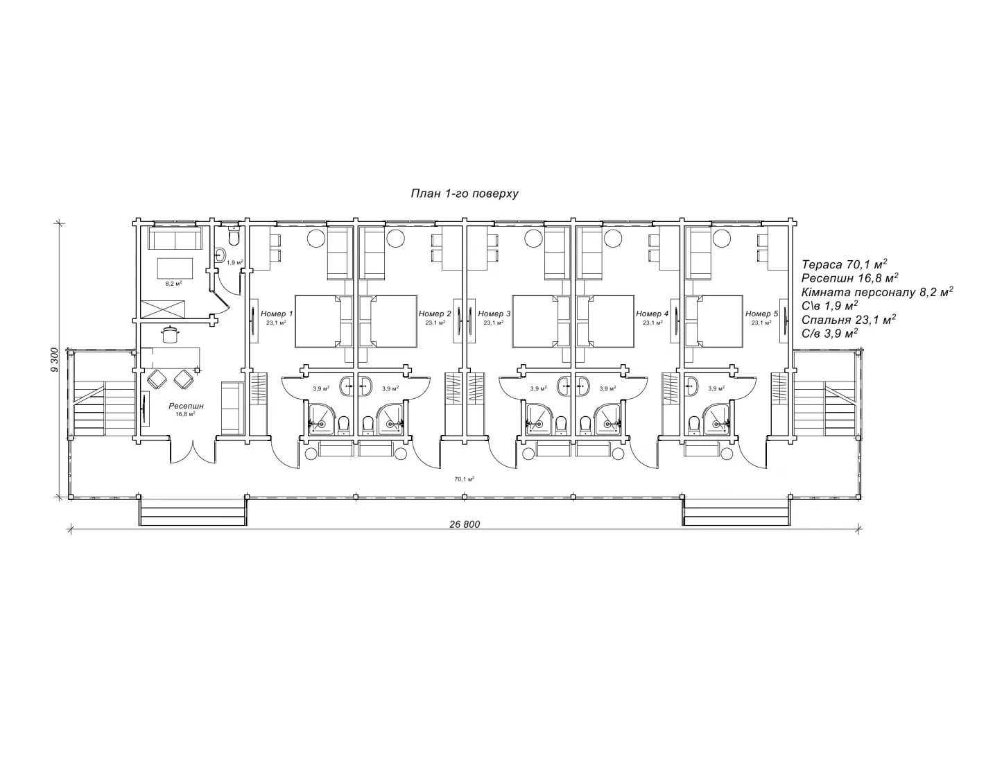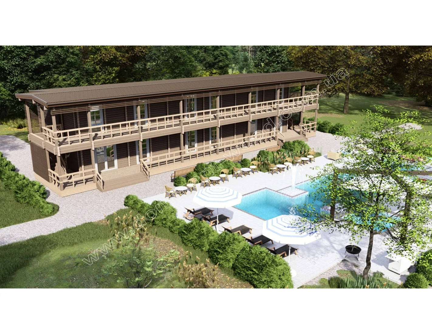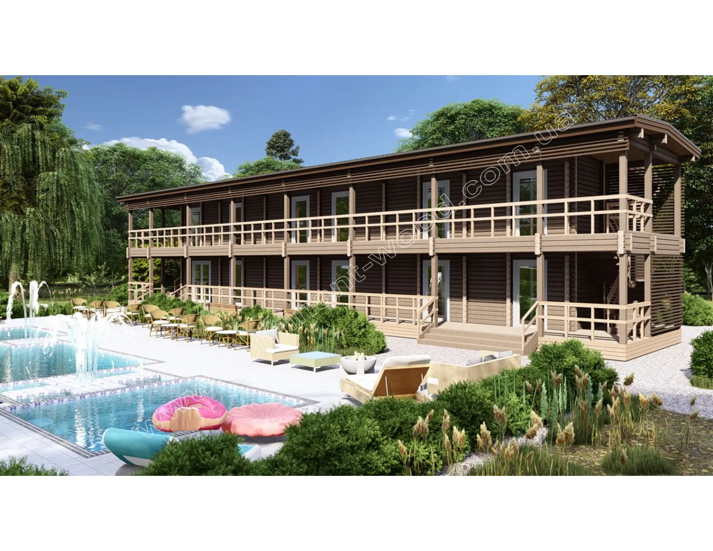 Будівництво дерев'яного двоповерхового готелю 9,3 на 26,8 м