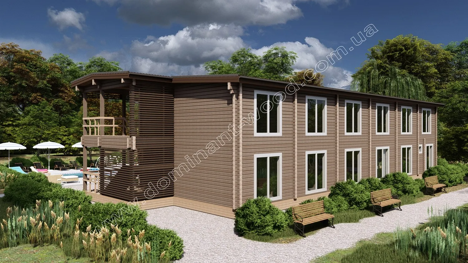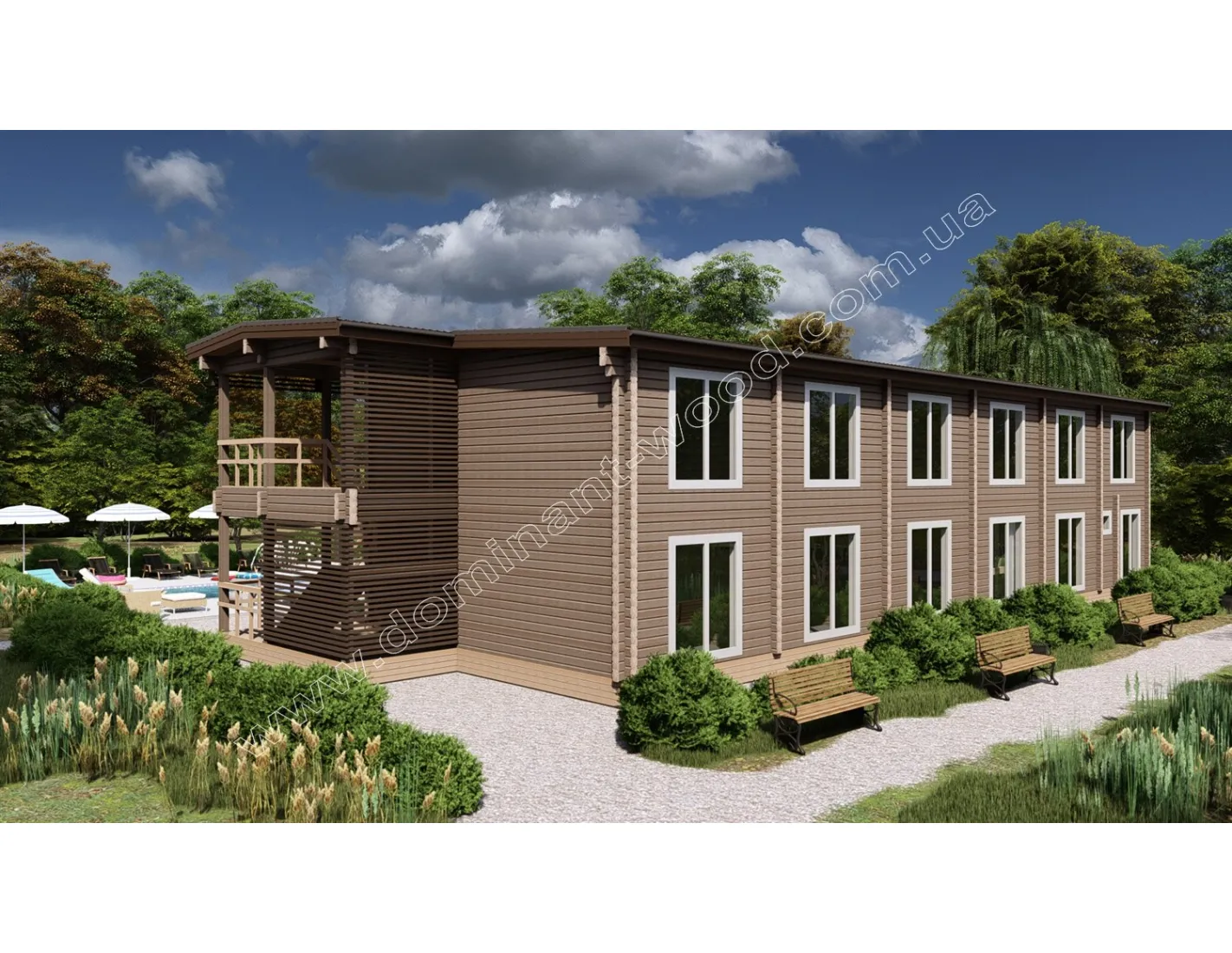 Готель «Шотен» - це прекрасне рішення для відпочинку на природі. Він приваблює унікальністю та самобутністю матеріалу виконання - натурального дерева. Фахівці «Домінант» з радістю реалізують цей проект за мінімальні терміни, з урахуванням вашого бачення і побажань щодо проекту. Відповідно до нашої філософії, ми працюємо з найвищою якістю і максимальною користю для клієнтів. За рахунок будівництва дерев’яного, двоповерхового готелю «Шотен» ви отримаєте високоякісний комерційний об'єкт, який буде приваблювати гостей і приносити вам дохід. Готель «Шотен» стане відмінним місцем для відпочинку, де можна буде отримати ідеальний релакс, насолодитися мальовничими краєвидами природи і зарядитися позитивною енергією.
