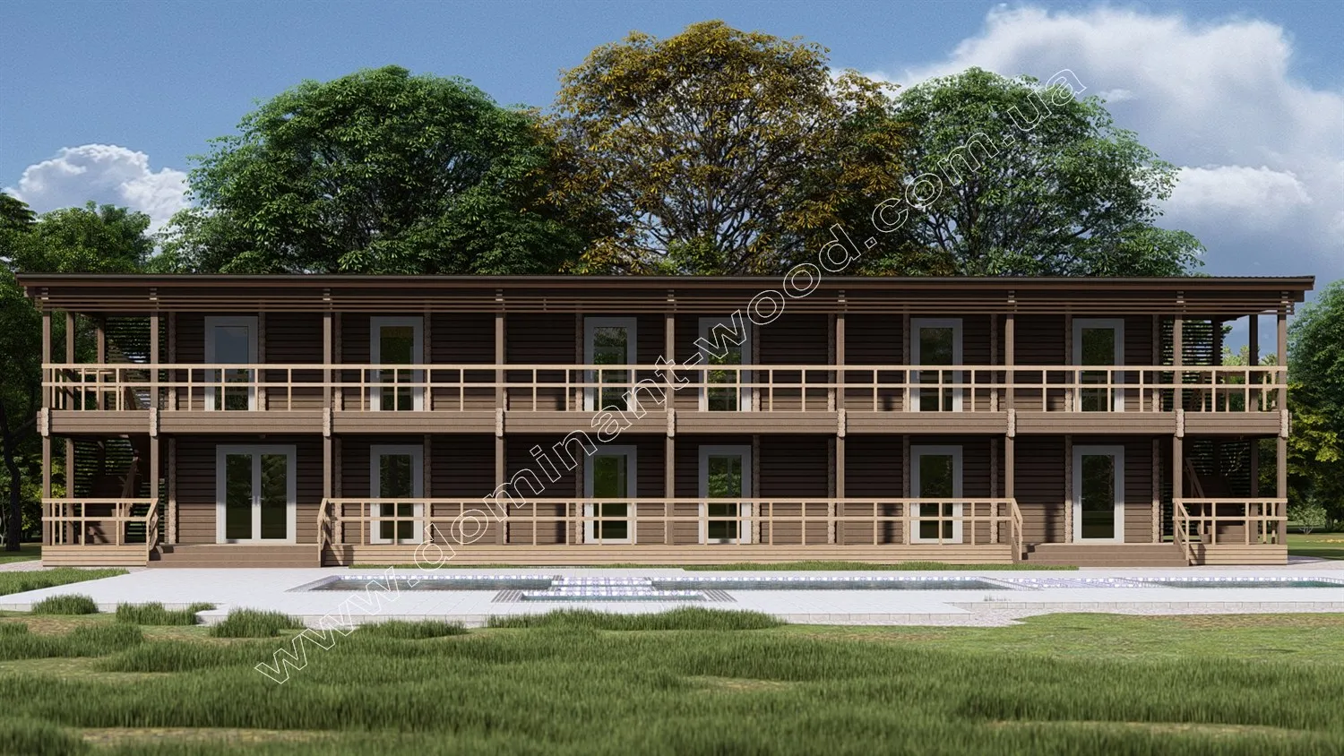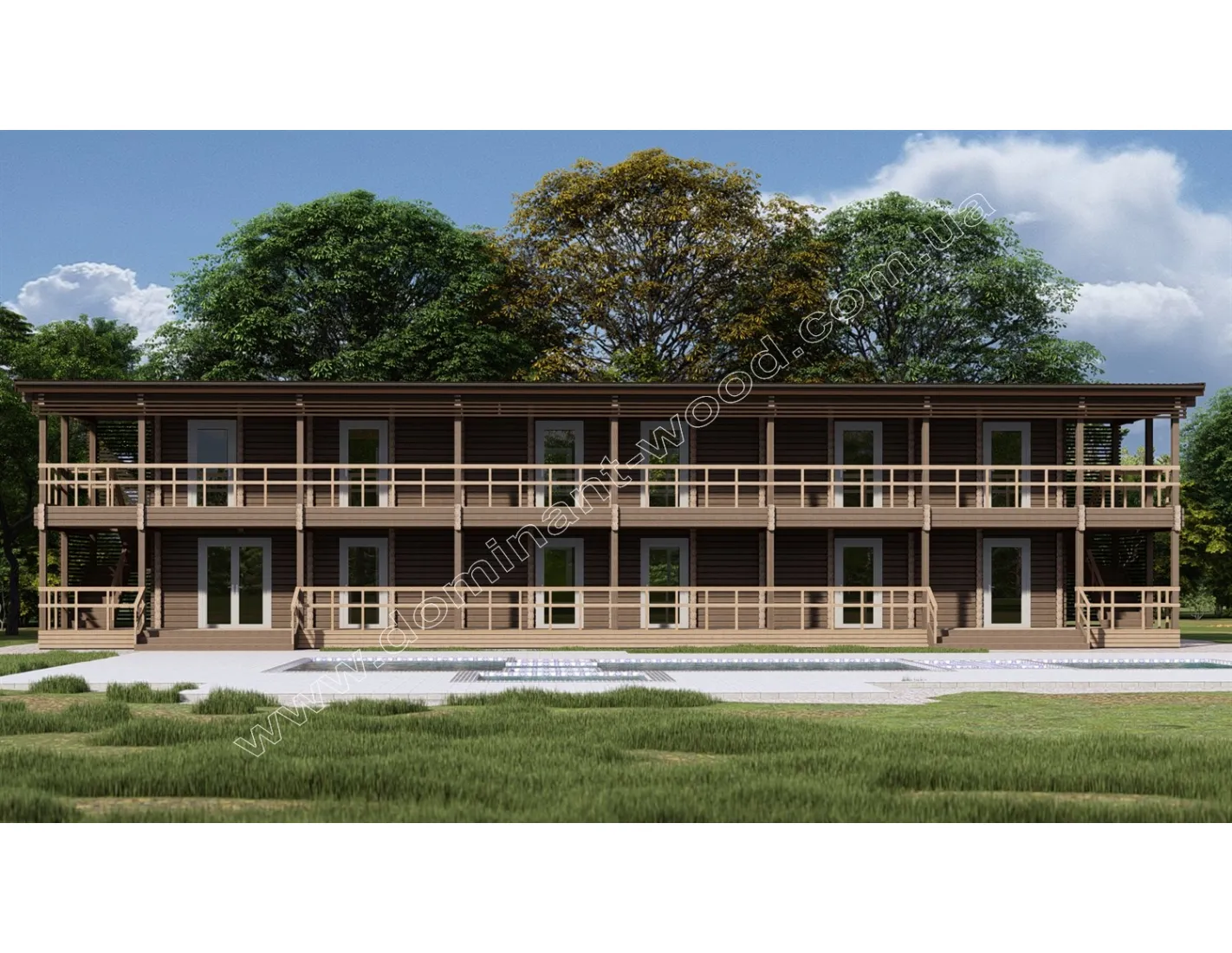 Дерев`яний двоповерховий готель 9,3 на 26,8 м - «Шотен»