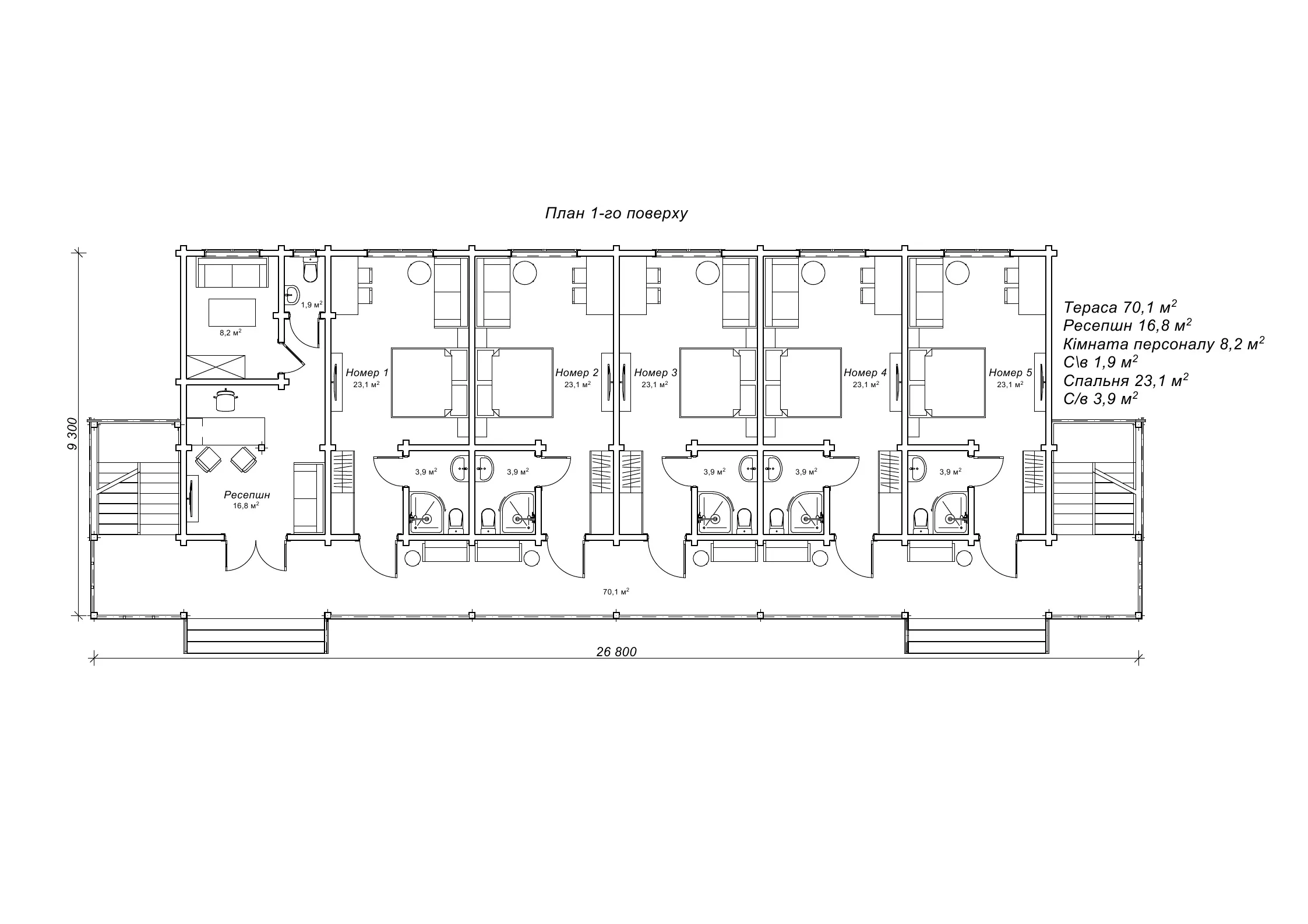 Дерев'яний готель «Шотен», площа 449,8 м²