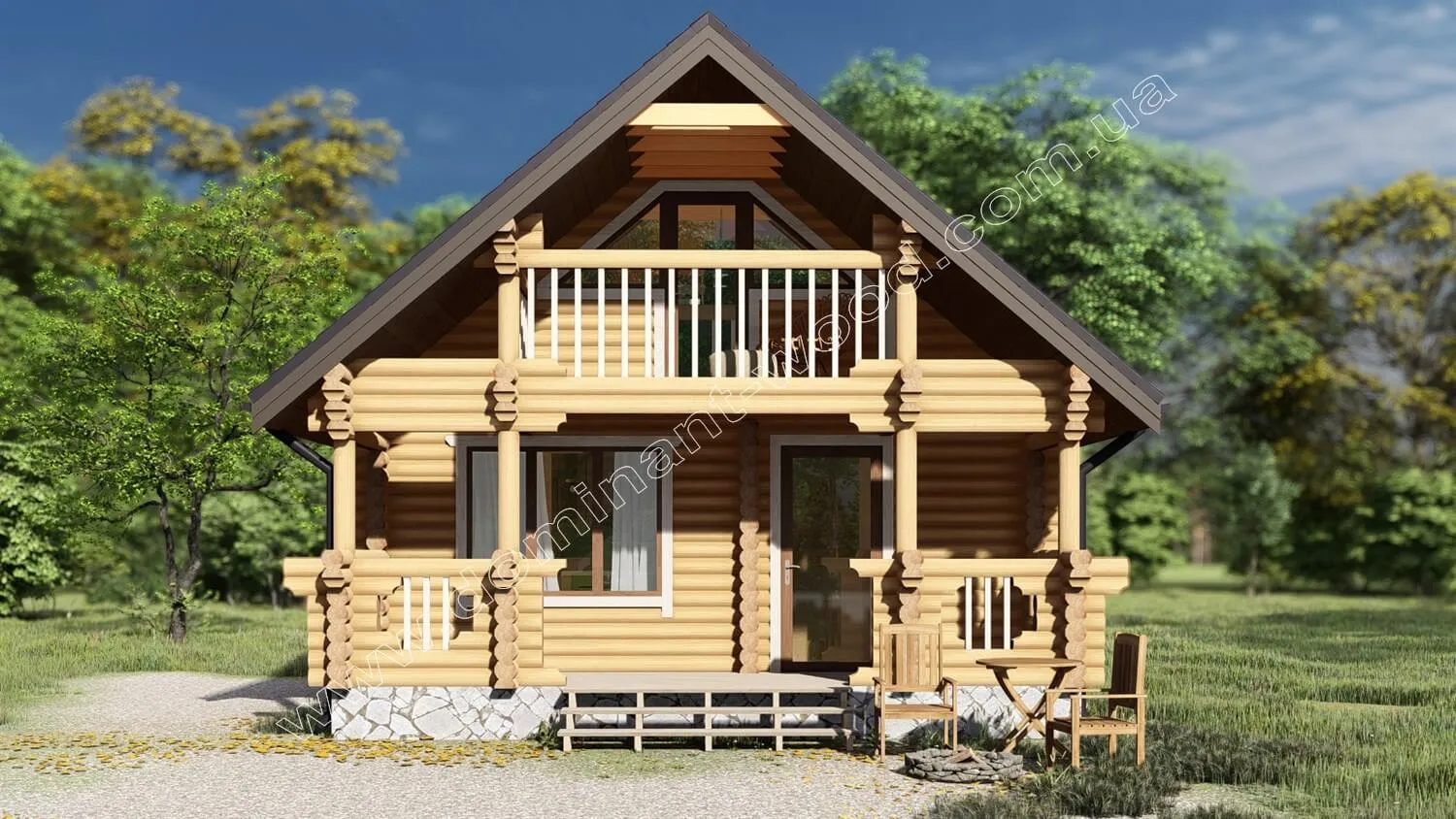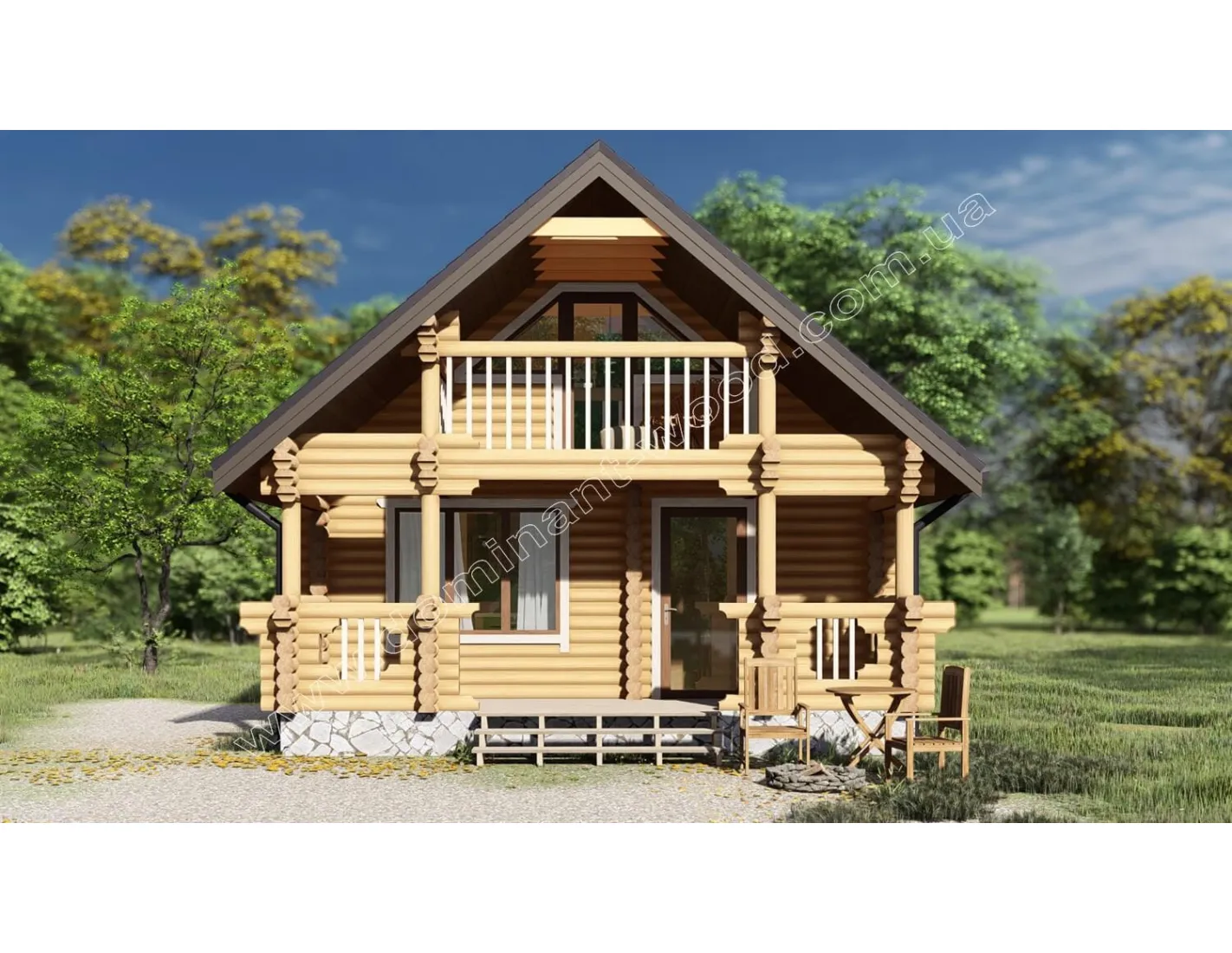 Проект двоповерхової лазні «Анір» виглядає розкішно і мальовничо. Затишні тераса і балкончик під мансардою прикрашають фасад колодчастого зрубу, який зовні можна порівняти з чарівною, казковою хатинкою. А всередині лазня включає всі необхідні зручності для найкращого відпочинку та водних процедур: просторий зал, душ, парилка, санвузол, і, у якості ексклюзивної особливості, більярдна мансарда. Це захоплюючий варіант для комерційного використання або у якості вишуканого гостьового чи заміського котеджу. Лазня «Анір» зроблена з оциліндрованих колод, які є ідеальним матеріалом для створення такого різновиду проектів. Відпочинок у колодчастій лазні приносить користь для здоров'я, додає енергії і, безумовно, піднімає настрій. Цей проект оснащений усім необхідним для цікавого спілкування з гостями, друзями і родичами в теплій атмосфері.
