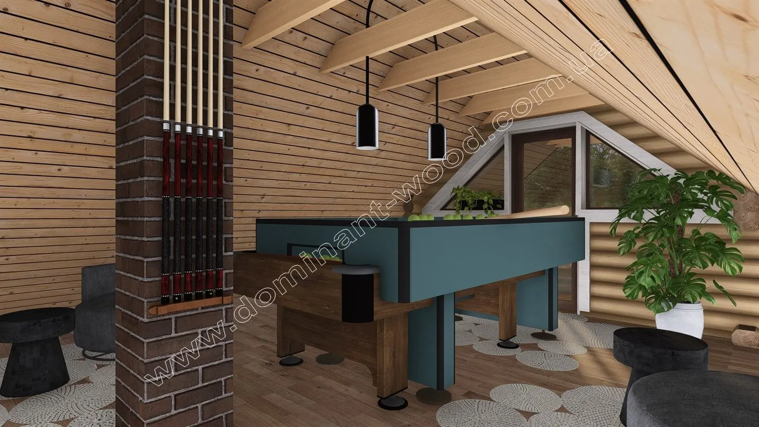Важливо відзначити, що аутентичний дизайн проекту «Анір» привертає увагу своєю природною красою і може стати яскравою прикрасою будь-якої території, викликаючи цікавість усіх, хто мандрує повз будиночка. Зовнішній ефектний вид дерев’яної споруди не вимагає дорогого оздоблення, він сам по собі виглядає естетично і не потребує додаткових витрат. Можливість побудувати проект «Анір» не залишить байдужими не лише поціновувачів банного відпочинку, або власників бізнесу, але й екологічно свідомих осіб, оскільки лазня виконується повністю з натуральних матеріалів. Крім того, фахівці компанії «Домінант» подбали про те, як ви можете провести дозвілля між парними процедурами, пропонуючи вам більярдну кімнату на другому поверсі. А якщо ваші інтереси більш різноманітні, цю кімнату можна використати на власний розсуд. Якщо вас зацікавив проект «Анір», не соромтеся звертатися до нашого менеджера і обговорювати всі деталі замовлення колодчастого комплекту лазні.