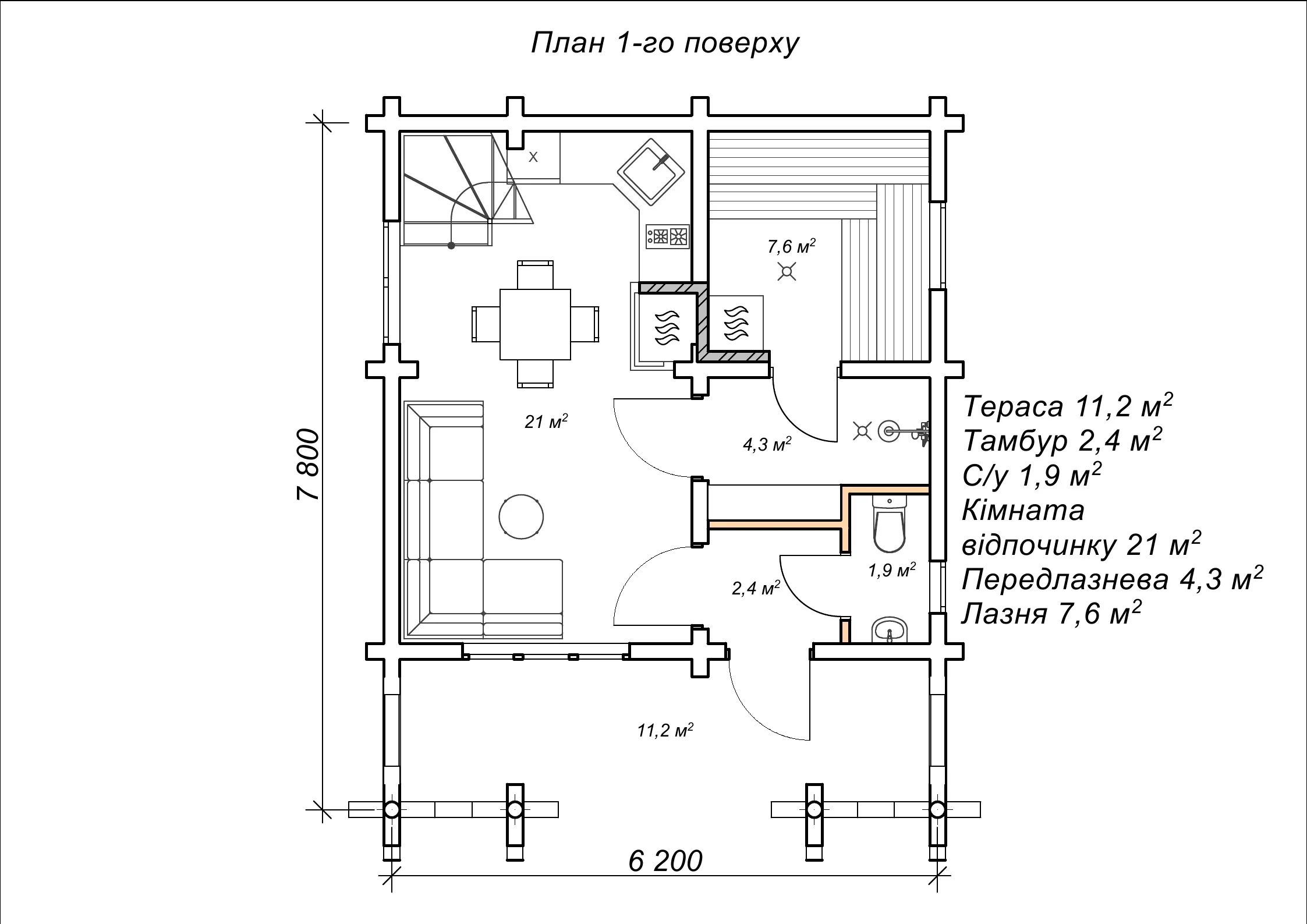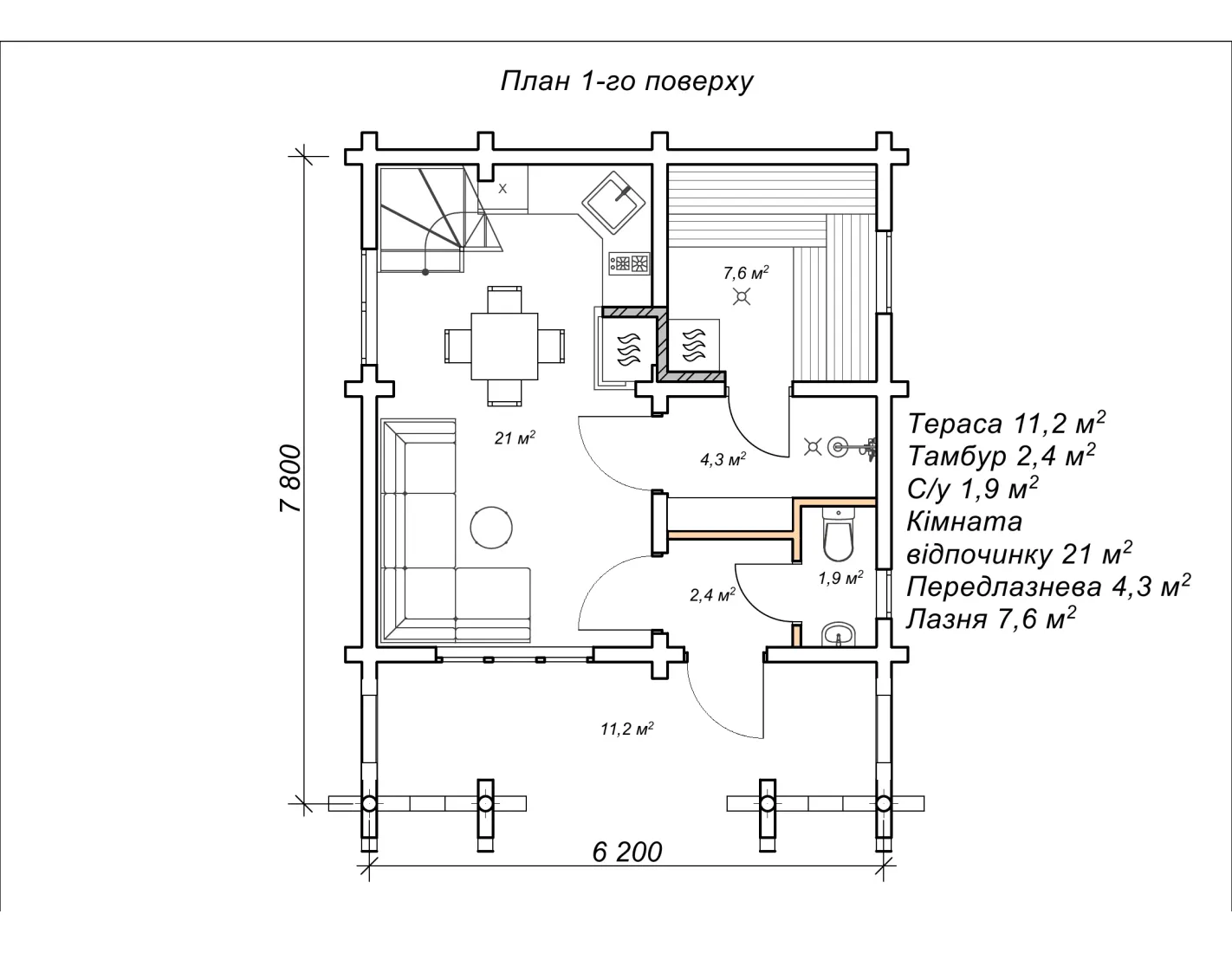 Двоповерхова лазня «Анір», площа 87,8 м²