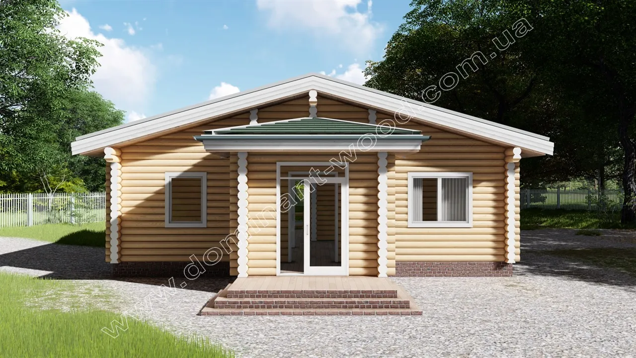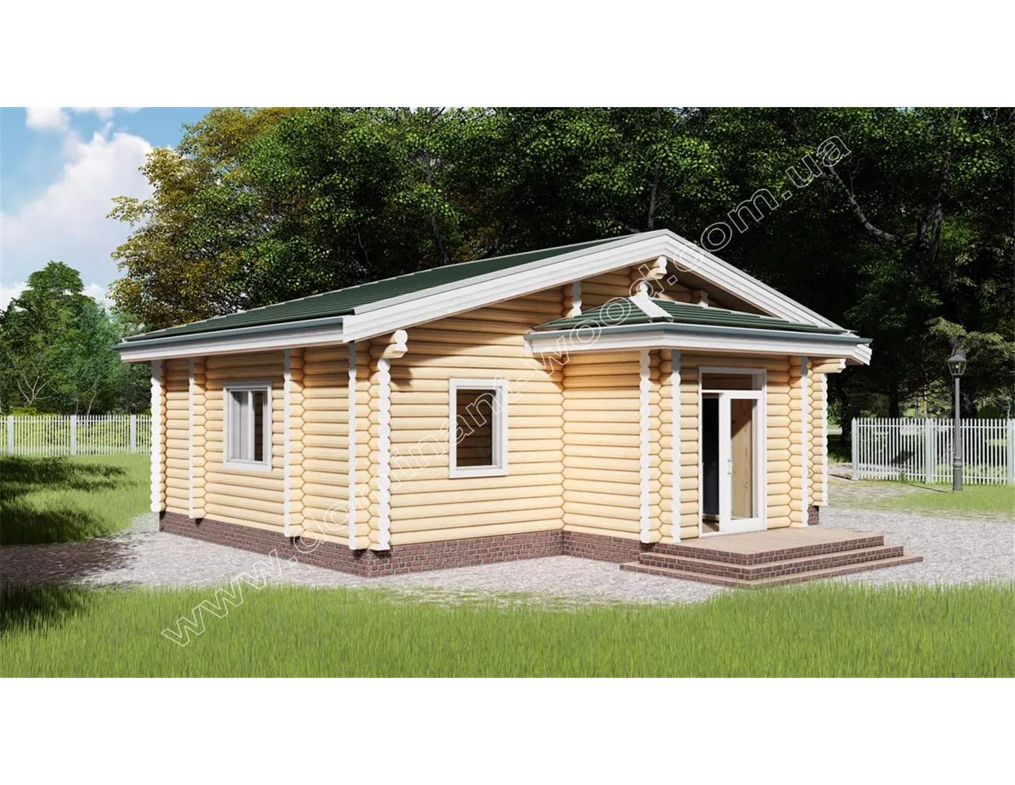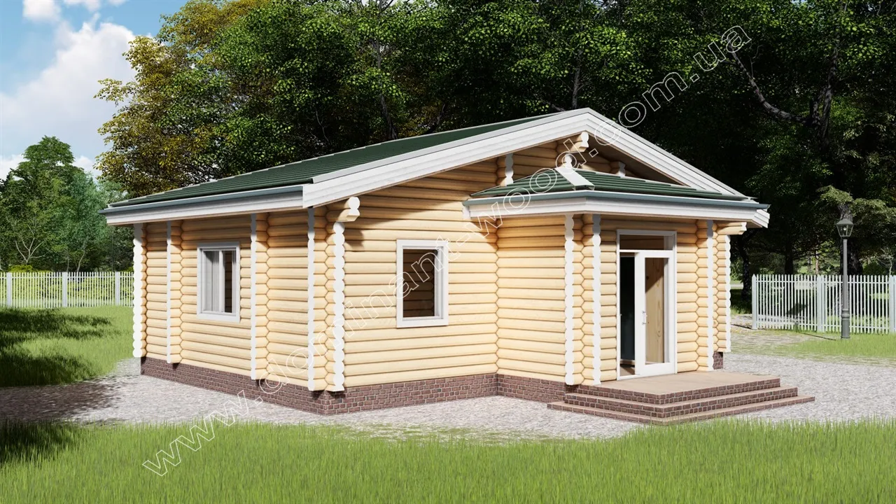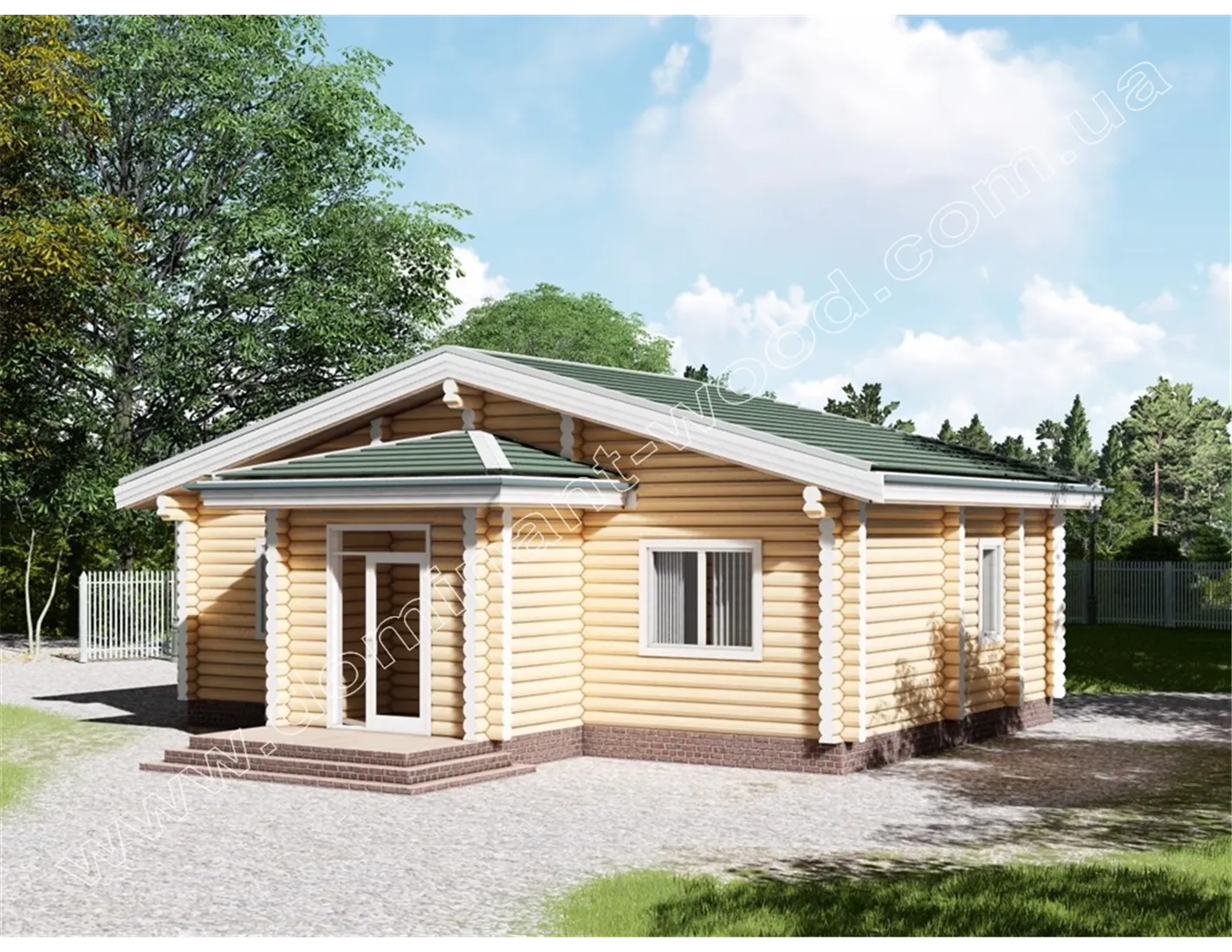 Проект будинку-зрубу «Лоя» з великими вікнами, площа 97 м²