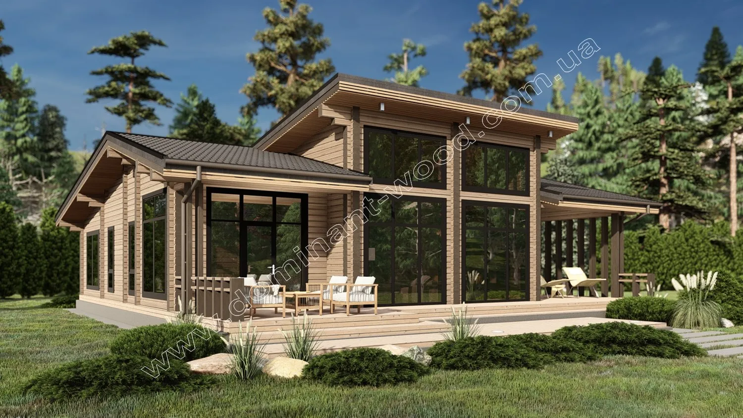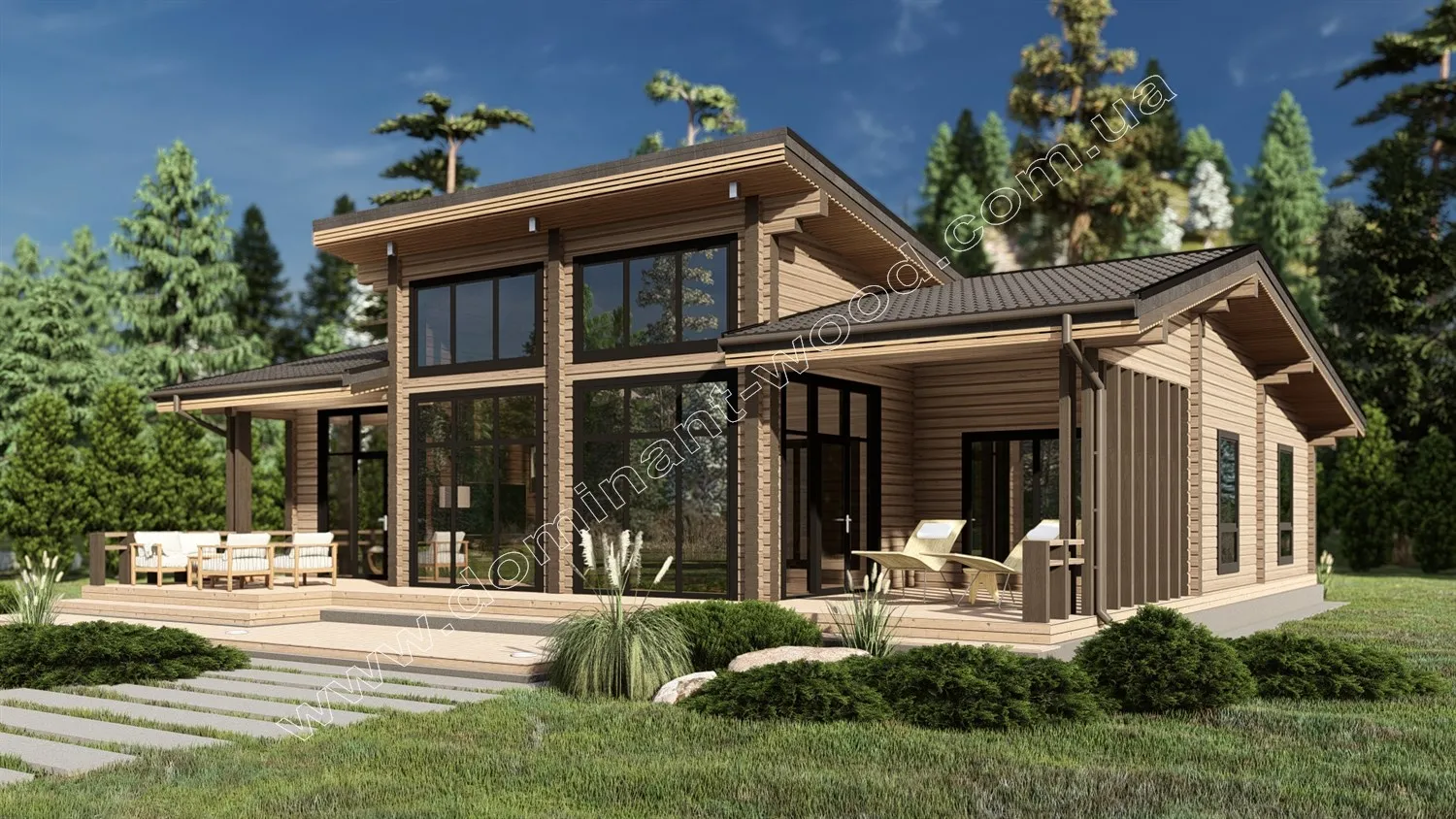 Проект сучасної вілли з соснового, просушеного брусу «Наві»