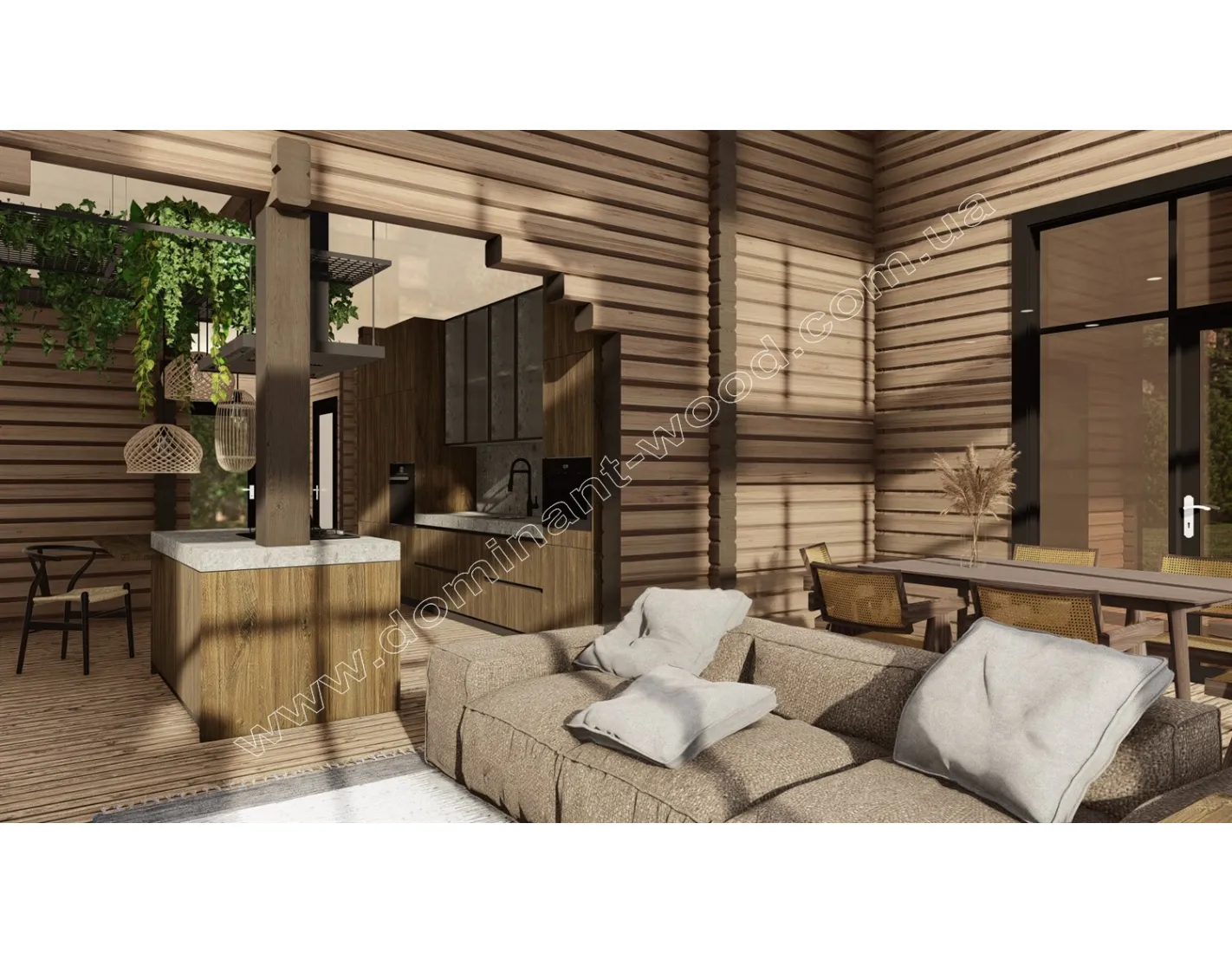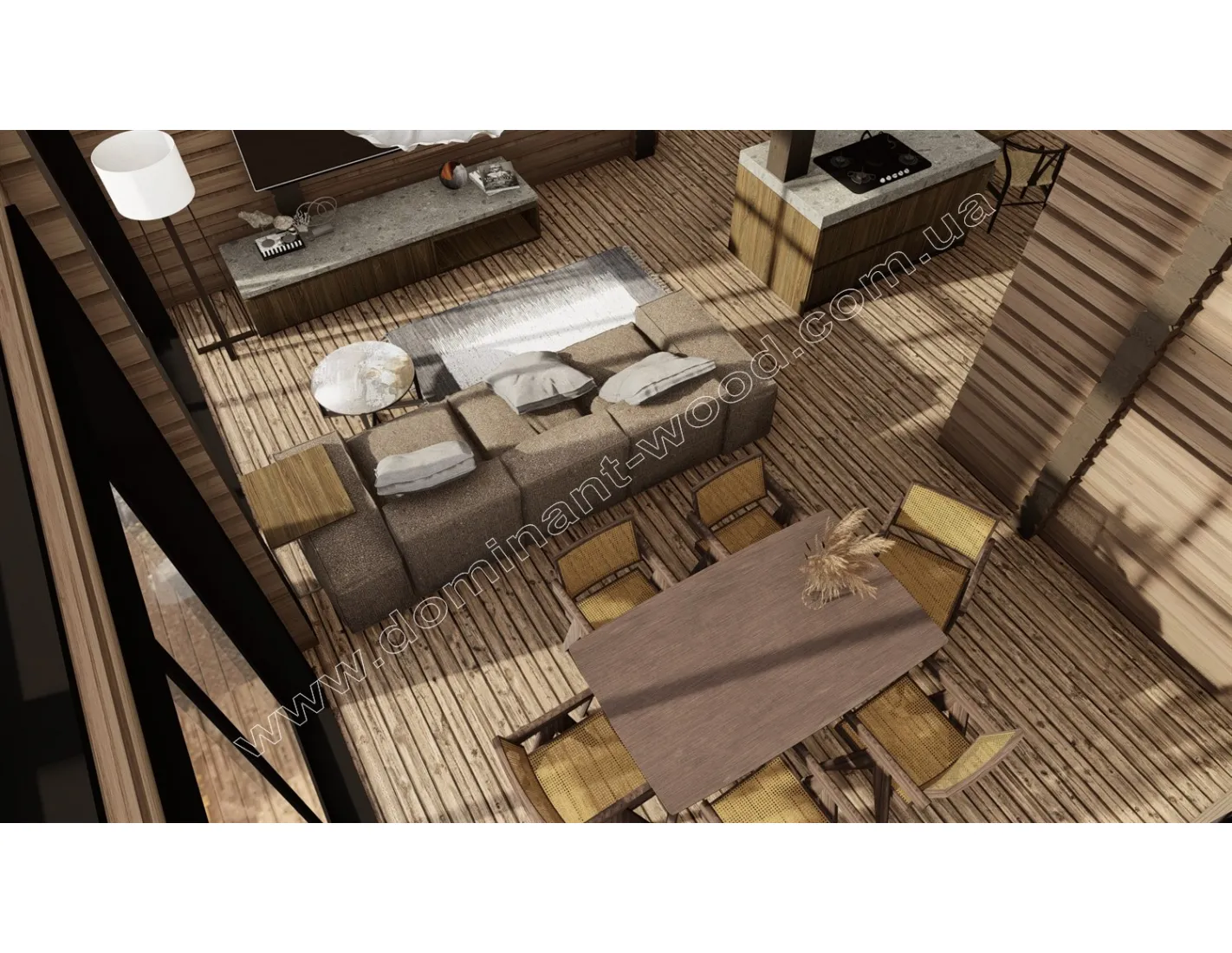 Каркасні конструкції виготовляються на власних виробничих потужностях компанії «Домінант», з використанням сучасних деревообробних станків. Імпортне, високоточне обладнання дозволяє нам високоякісно виконувати свою роботу. Каркаси складаються зі струганих, ретельно висушених балок 150х50 мм (сосна першого сорту). Ці балки застосовуються для зовнішніх каркасів.