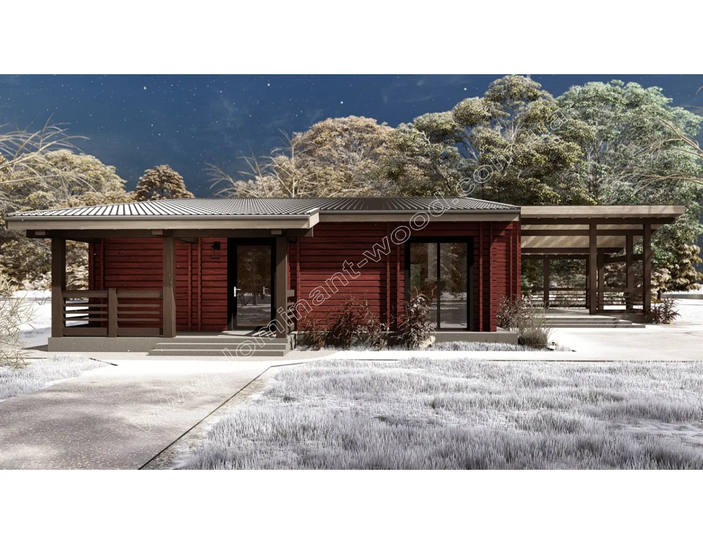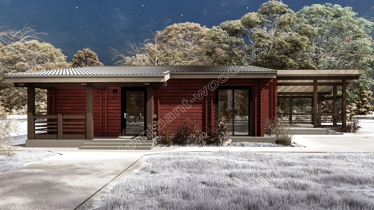 «Гранат», спроектований за параметрами 16,2х17 м, містить по периметру і між кімнатами стіни з подвійного брусу з утеплювачем. Це свідчить про високу тепло- і шумоізоляцію не тільки по відношенню до вуличних звуків, але й в середині будинку. Планування приміщень передбачає простору вітальню розміром 30 м2, кухню та їдальню розміром 31,5 м2, в якій відокремлене місце під камін. Дві спальні спроектовані на 18 і 16 м2, таким чином, в будинку «Гранат» кожен буде мати вдосталь особистого простору, а також багато зон для комфортного дозвілля в компанії близьких та друзів. Розкішна тераса під навісом утворює ще одне чудове місце для вечірок на свіжому повітрі біля оселі. Дуже зручно організований простір в будинку завдяки наявності підсобних приміщень. В технічному приміщенні можна зібрати побутову техніку, не захаращуючи нею житлові квадрати. Таким чином, цей одноповерховий котедж містить всі необхідні умови для максимального комфорту, побуту та відпочинку для господарів та їхніх гостей. Житло з екологічно чистого дерева, з внутрішнім утеплювачем в стінах для ефективного утримання тепла та економії на опаленні, стане оптимальним варіантом сьогодення. Якщо вас зацікавив проект будинку, або ви вже готові замовити його будівництво, звертайтеся за номерами офісу «Домінант» +38 063 499-91-00; +38 097 012-38-52 (Viber; WhatsApp), де завжди проводиться активна робота з розробки нових проектів, впровадження новітніх технологій та будівництва нових дерев'яних будинків!