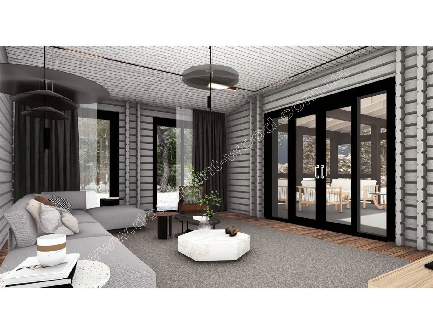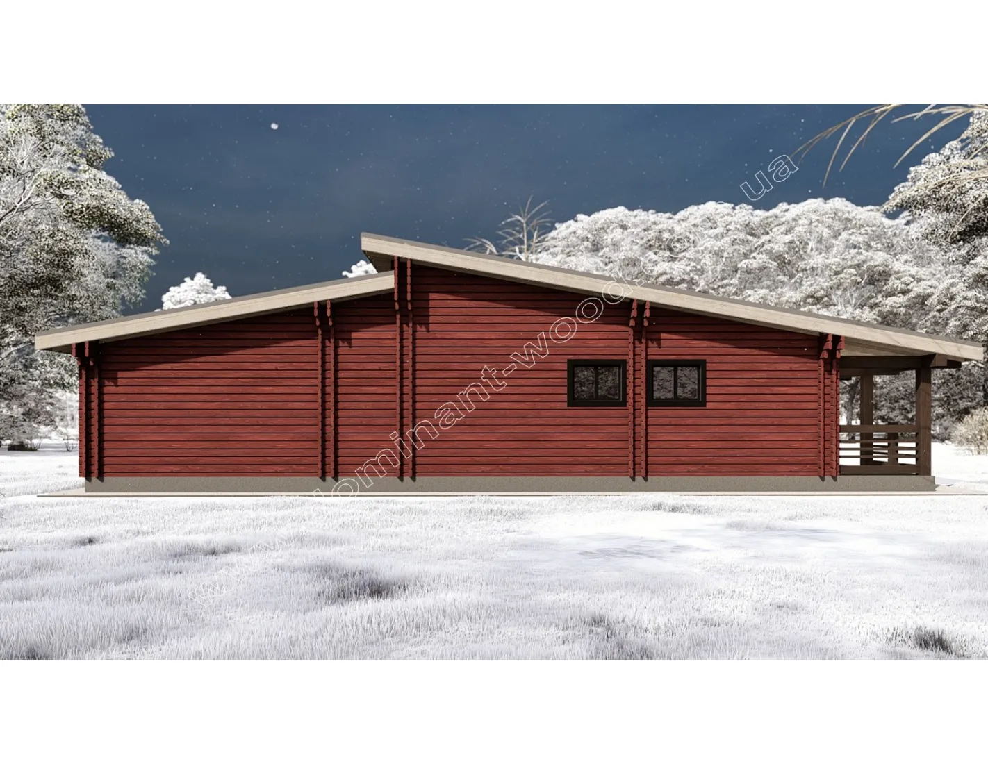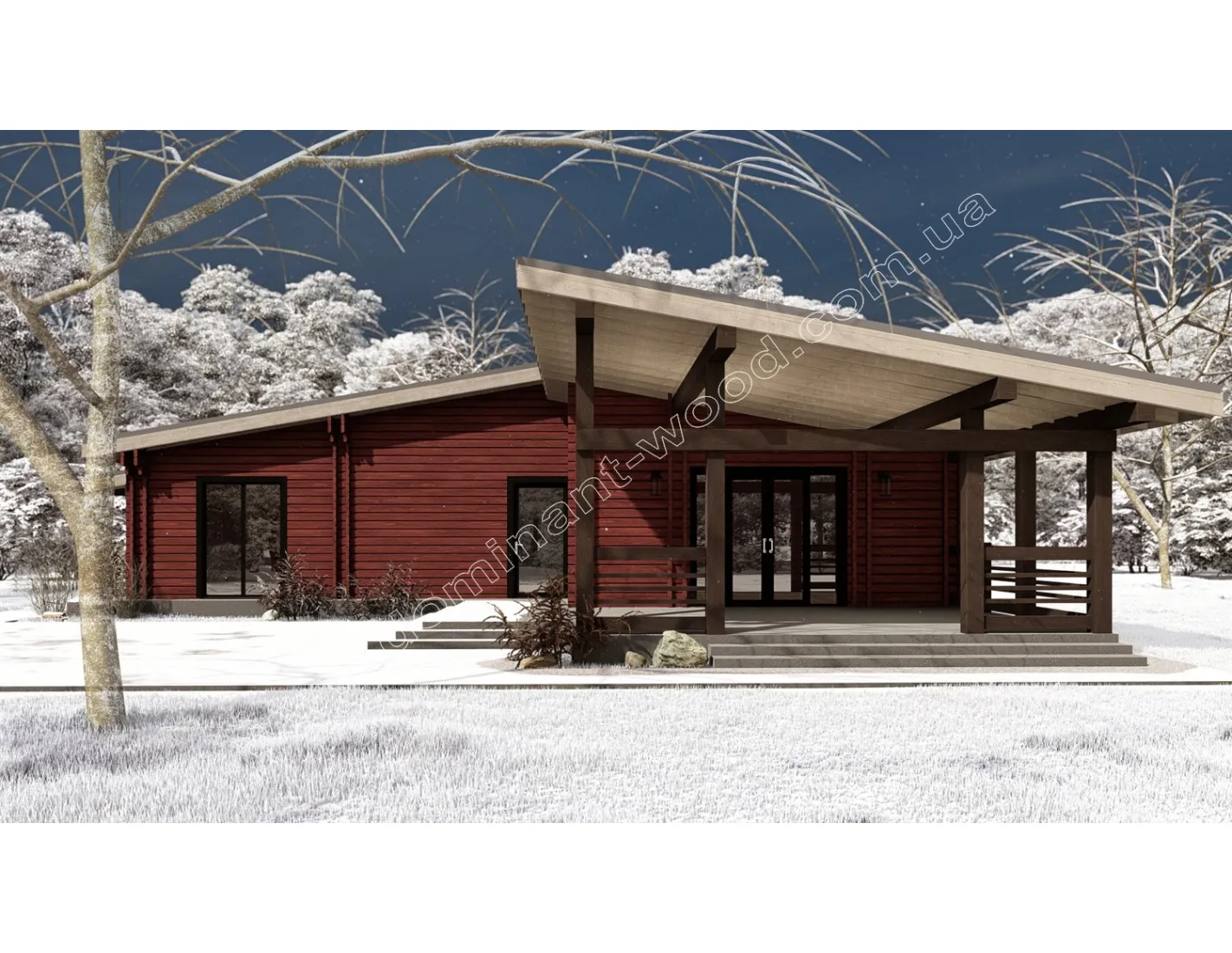 Проект «Гранат» привертає увагу своїм сучасним і добротним виглядом масивних, брусових стін. Скати покрівлі знаходяться на різних рівнях, створюючи деяку асиметрію, що можна відзначити як справжню родзинку проекту. Фасади будівлі елегантно обрамляються подвійними рядами брусів, що є характерним виключно для будівель, зведених за технологією паралельного брусу з утепленням. Високі вікна допомагають отримати природне освітлення в достатку та відчути присутність природи навіть за несприятливої погоди, залишаючись в комфорті будинку. Дизайн будинку «Гранат» справді неповторний, та його можна ще більше підкреслити насиченим кольором стін. «Який вибрати колір для фарбування дерев’яного будинку?» можна дізнатись з відповідної публікації на нашому сайті. Унікальний екстер’єр проекту в поєднанні з прогресивною технологією будівництва наділяє цю споруду перевагами, дізнавшись про які, ви точно забажаєте цю оселю собі.