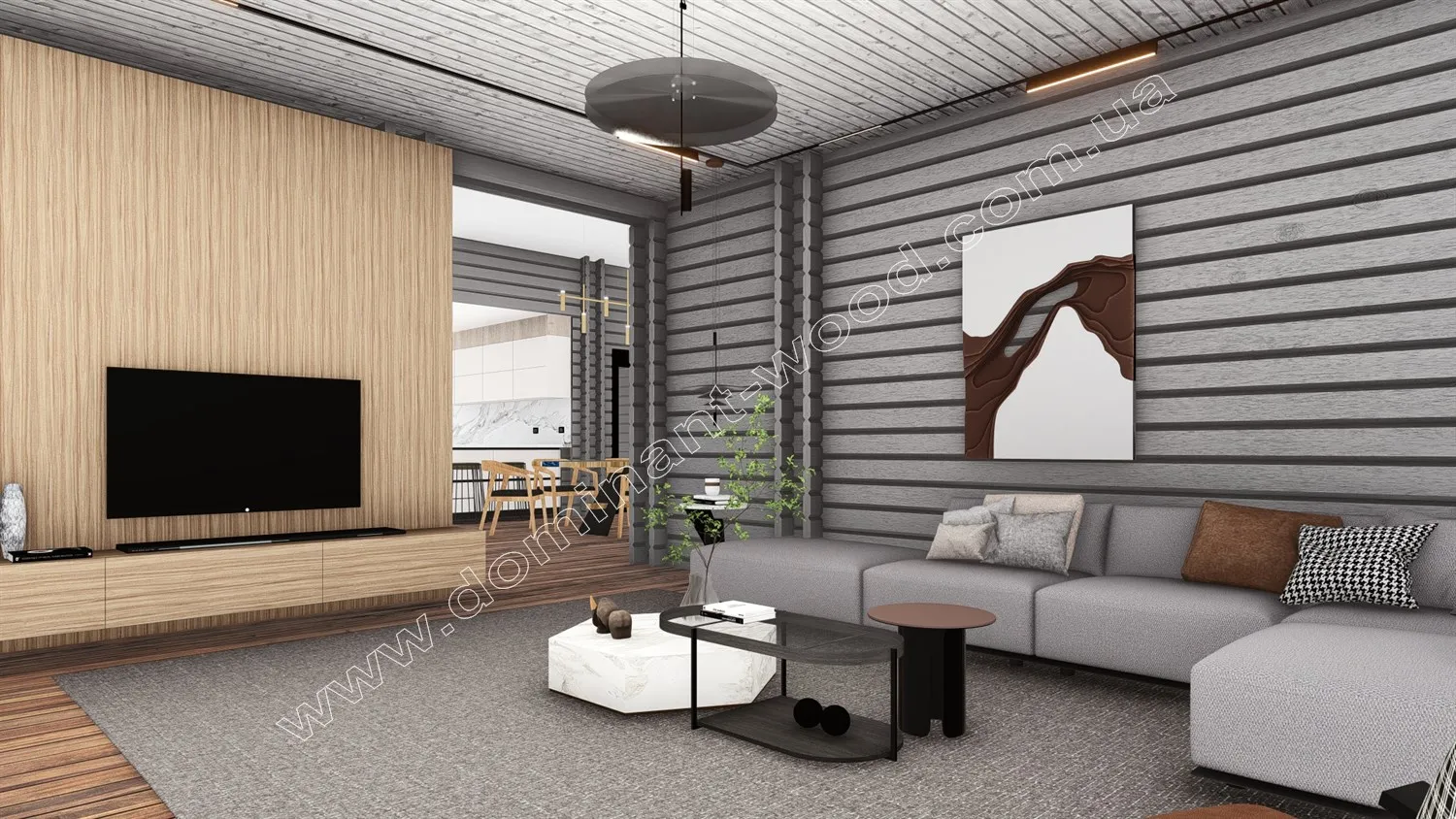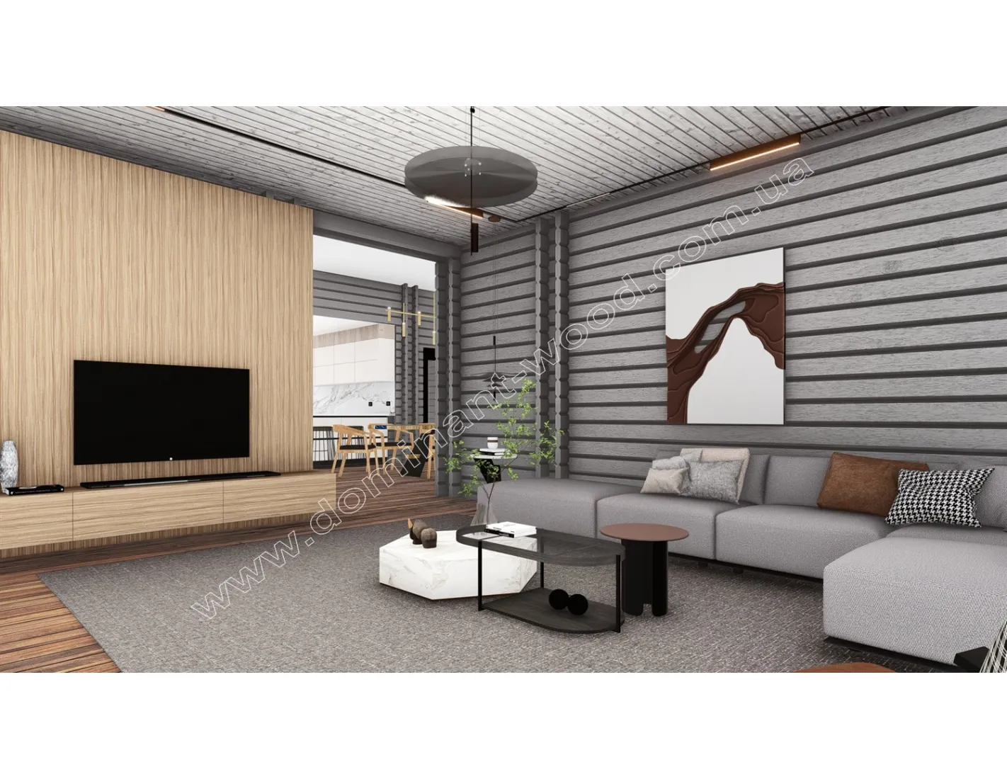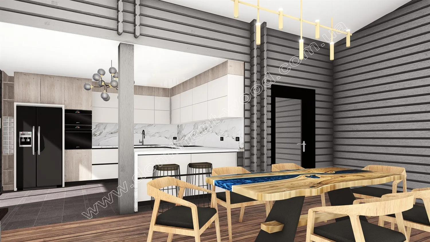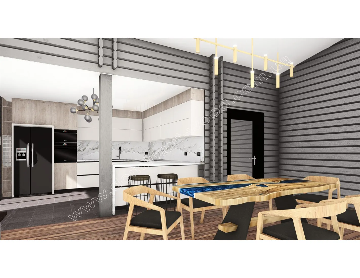 Проект «Гранат» привертає увагу своїм сучасним і добротним виглядом масивних, брусових стін. Скати покрівлі знаходяться на різних рівнях, створюючи деяку асиметрію, що можна відзначити як справжню родзинку проекту. Фасади будівлі елегантно обрамляються подвійними рядами брусів, що є характерним виключно для будівель, зведених за технологією паралельного брусу з утепленням. Високі вікна допомагають отримати природне освітлення в достатку та відчути присутність природи навіть за несприятливої погоди, залишаючись в комфорті будинку. Дизайн будинку «Гранат» справді неповторний, та його можна ще більше підкреслити насиченим кольором стін. «Який вибрати колір для фарбування дерев’яного будинку?» можна дізнатись з відповідної публікації на нашому сайті. Унікальний екстер’єр проекту в поєднанні з прогресивною технологією будівництва наділяє цю споруду перевагами, дізнавшись про які, ви точно забажаєте цю оселю собі.