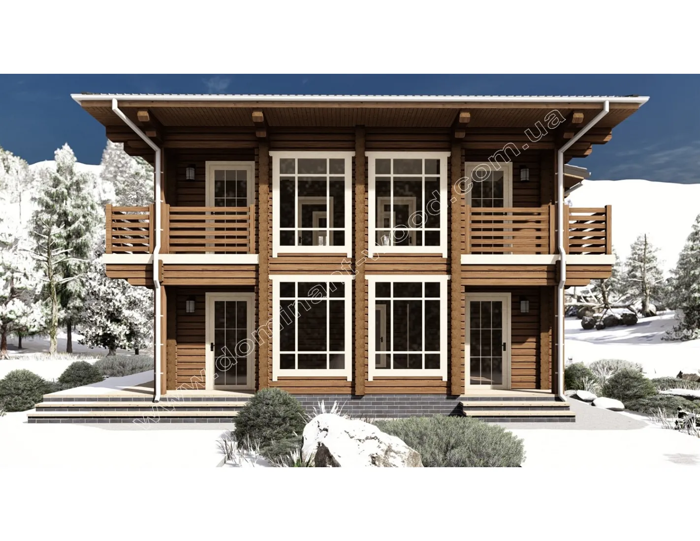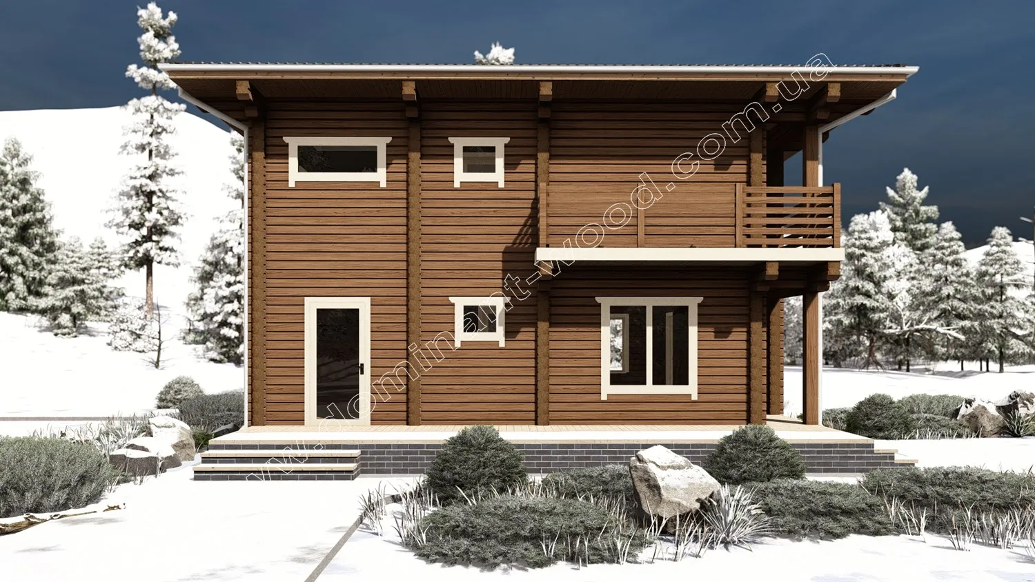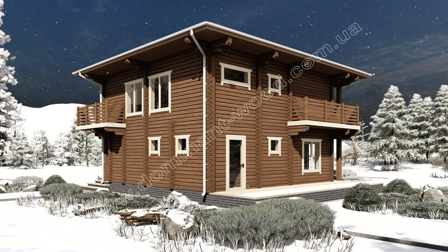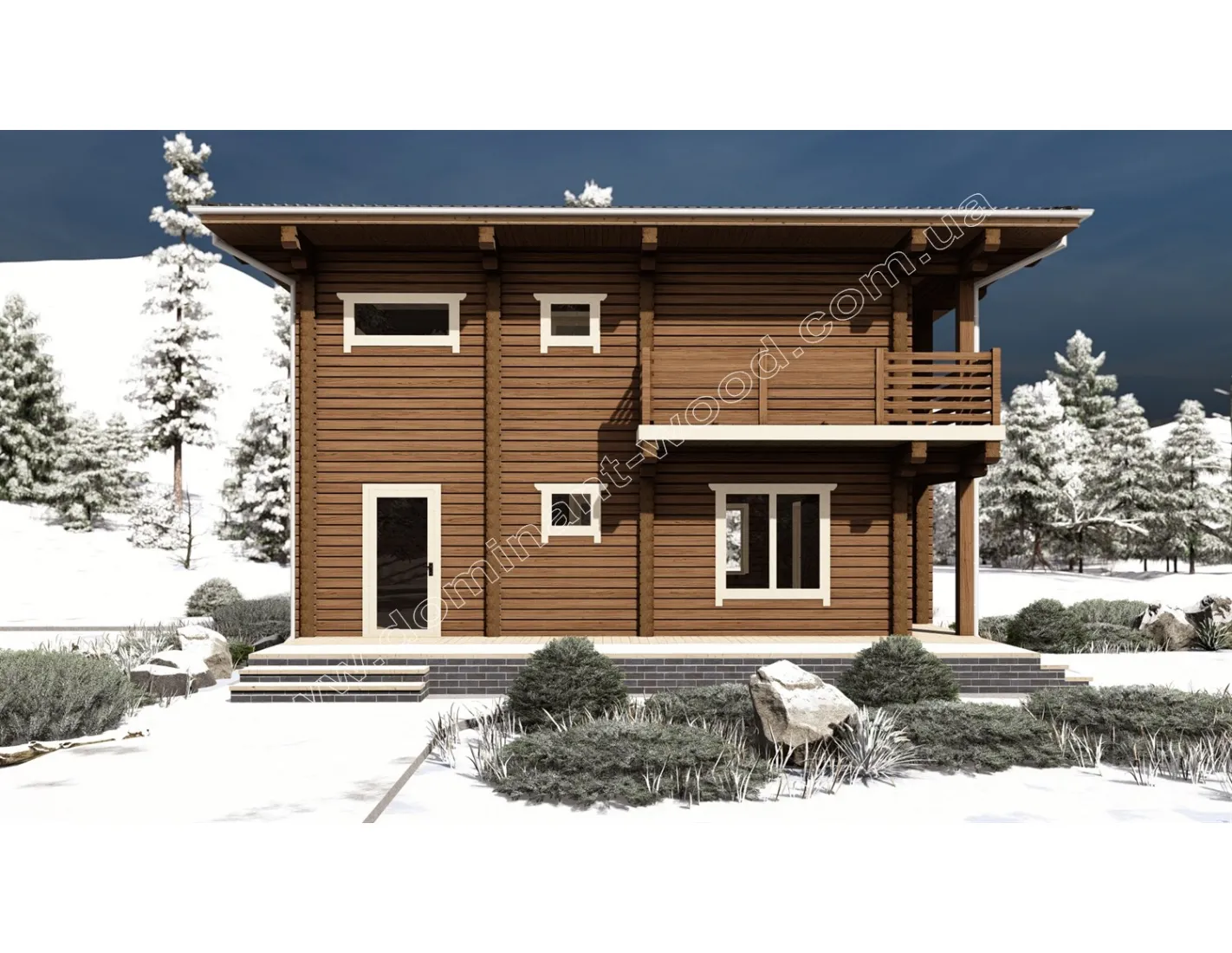 Проект «Енотера», виконаний у сухому профільованому брусі, виділяється цікавими стилізованими рішеннями, такими як ажурні балкончики, навіси та вікна різних розмірів і форм. Архітектурною особливістю цього проекту є повноцінний другий поверх. Завдяки майже квадратній формі 9,3 на 9,5 м і однакової висоти обох поверхів, будиночок дещо нагадує мальовничу, дерев’яну скриньку. Схожий стиль котеджів ми розробляли на експорт до Японії. Такі будови лаконічні, компактні, відрізняються чіткою геометрією та мінімалізмом. Але стилізовані під східний стиль завдяки цікавій формі та симетричному розташуванню вікон та балкончиків. Крім екзотичного зовнішнього вигляду, вам обов’язково сподобається внутрішнє наповнення котеджу, який має велику кількість спалень, ще й оснащений парилкою.