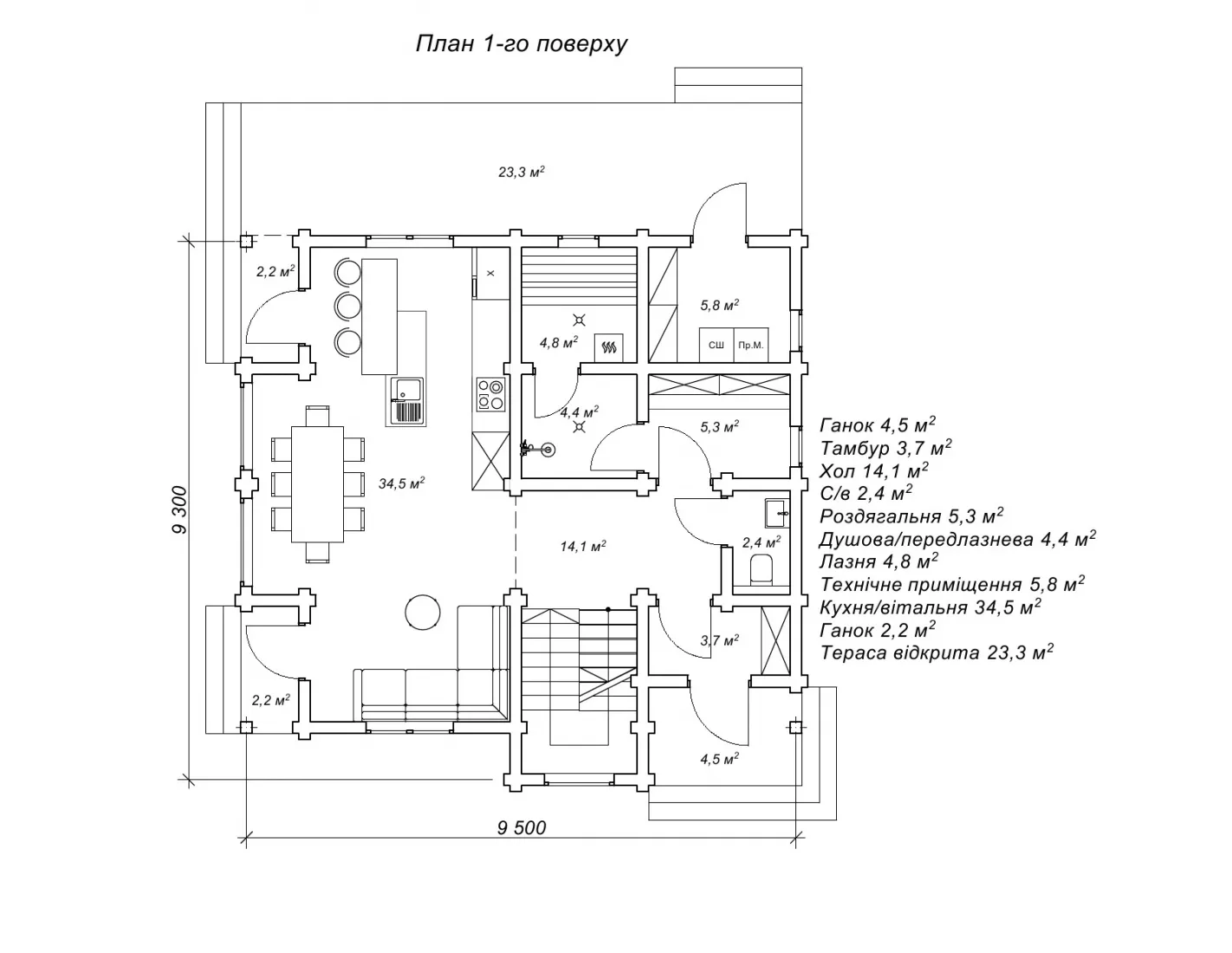 кухня/вітальня (м²) 34,5