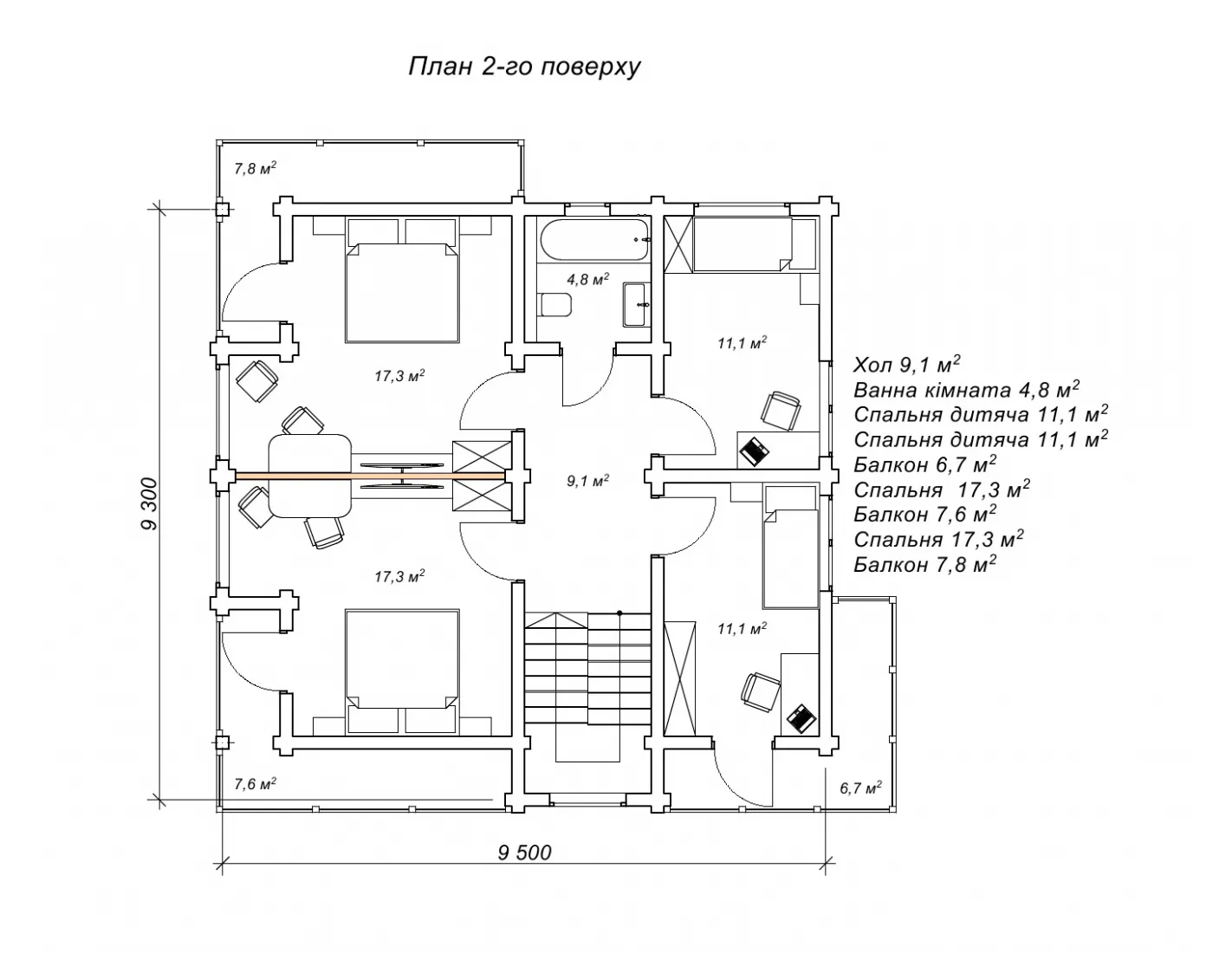 спальня х2 (м²) 17,3