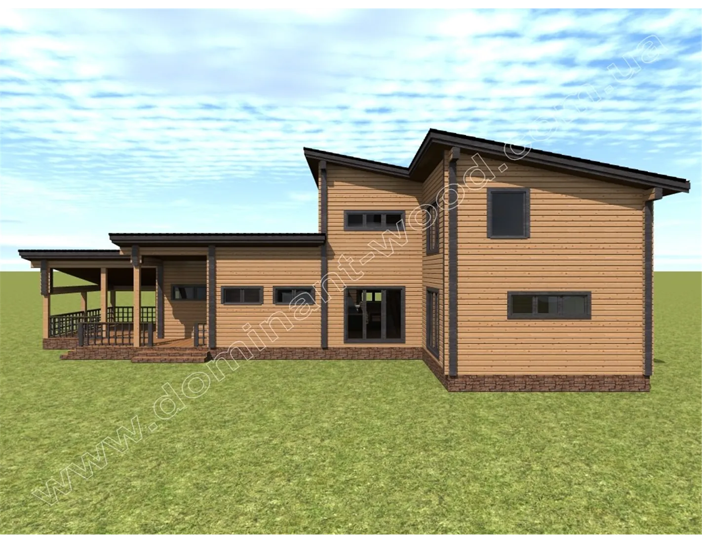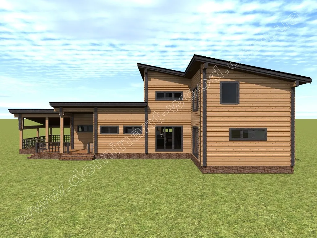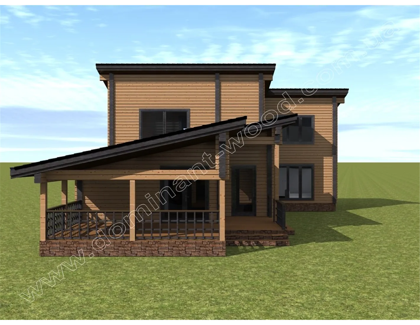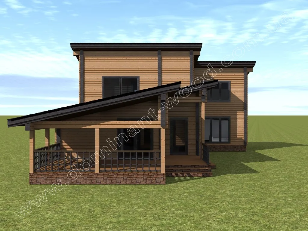 Проект Стейнмун є розкішною сучасною віллою з сухого профільованого бруса. Елегантний, стриманий дизайн будови припаде до смаку справжньому естету, який розбирається в тонкощах архітектури і цінує високий стиль. Високотехнологічна садиба, виконана в стилі хай-тек з натурального дерева, зовні є втіленням грації, а за внутрішнім наповненням - зразком екологічності, ергономічності і конструктивних рішень з благоустрою постійного проживання.