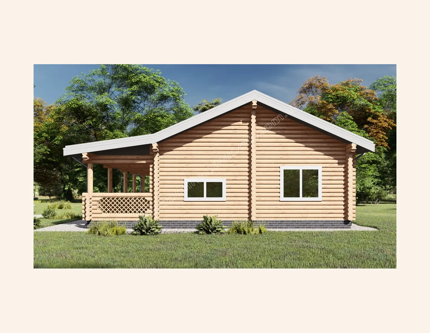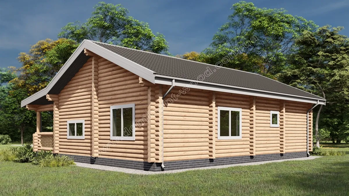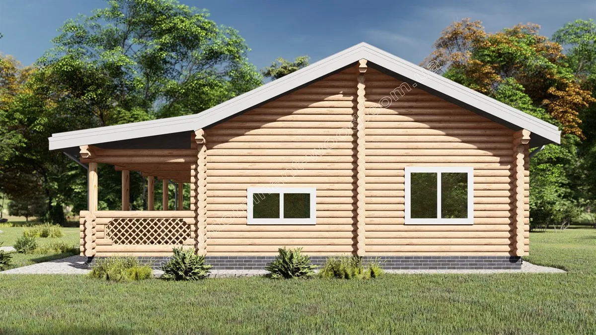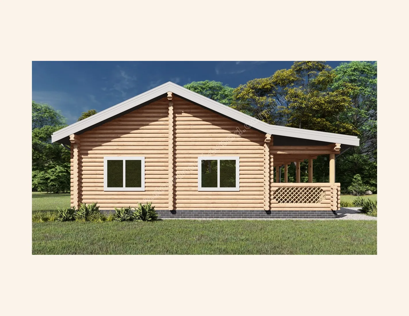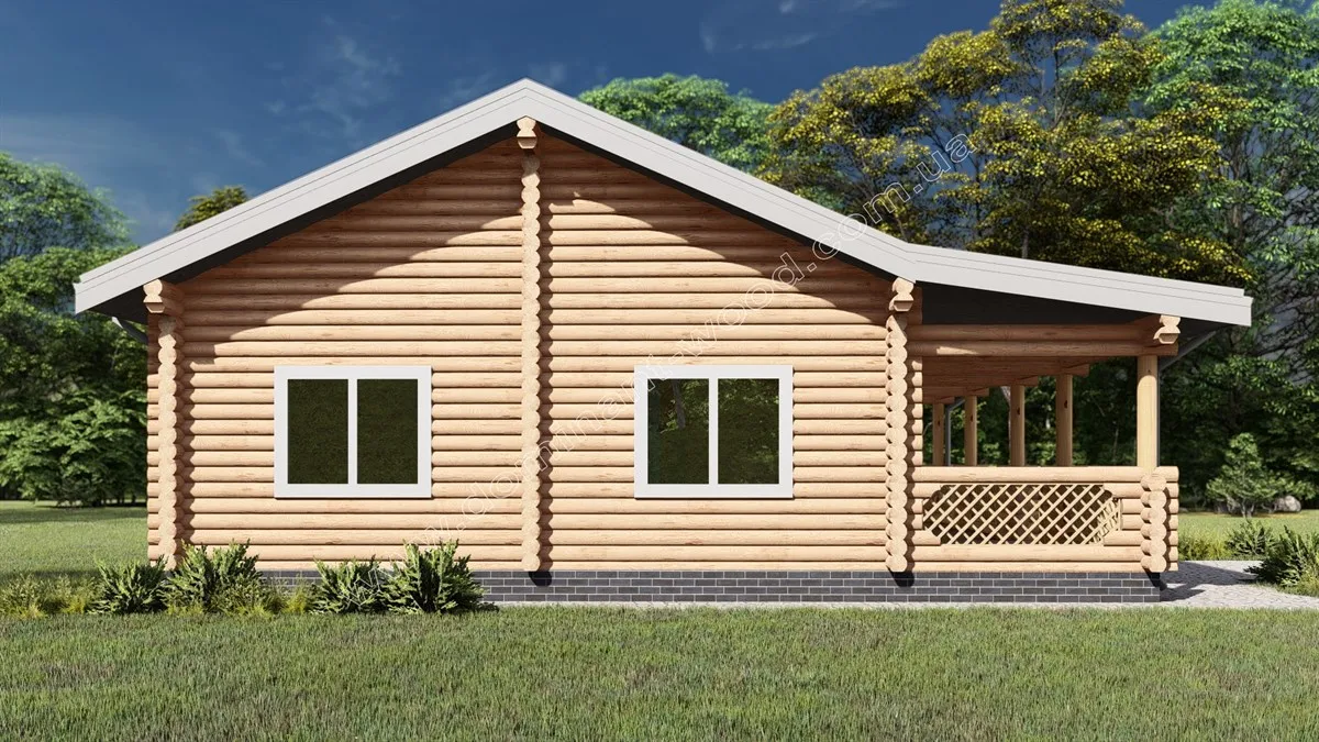 Проект будинку «Тресет» з оциліндрованих колод пропонує ідеальне рішення для тих, хто прагне забезпечити собі і своїй родині максимальний комфорт у заміському просторі. Цей гарний дерев'яний будинок, розроблений з урахуванням потреб сім'ї 4-5 мешканців. Проект включає три спальні по 12 м2, тамбур, хол, велику вітальню з кухнею більше тридцяти квадратів, ще й окремий, невеличкий кабінет на 8 м2. Тобто план будинку 10х12 м передбачає всі необхідні зони для комфортного проживання з врахуванням сучасних реалій, а також додаткові приміщення. Одноповерхове планування особливо актуальне для тих, хто бажає облаштувати житловий простір на одному рівні без зайвих переміщень по сходах.