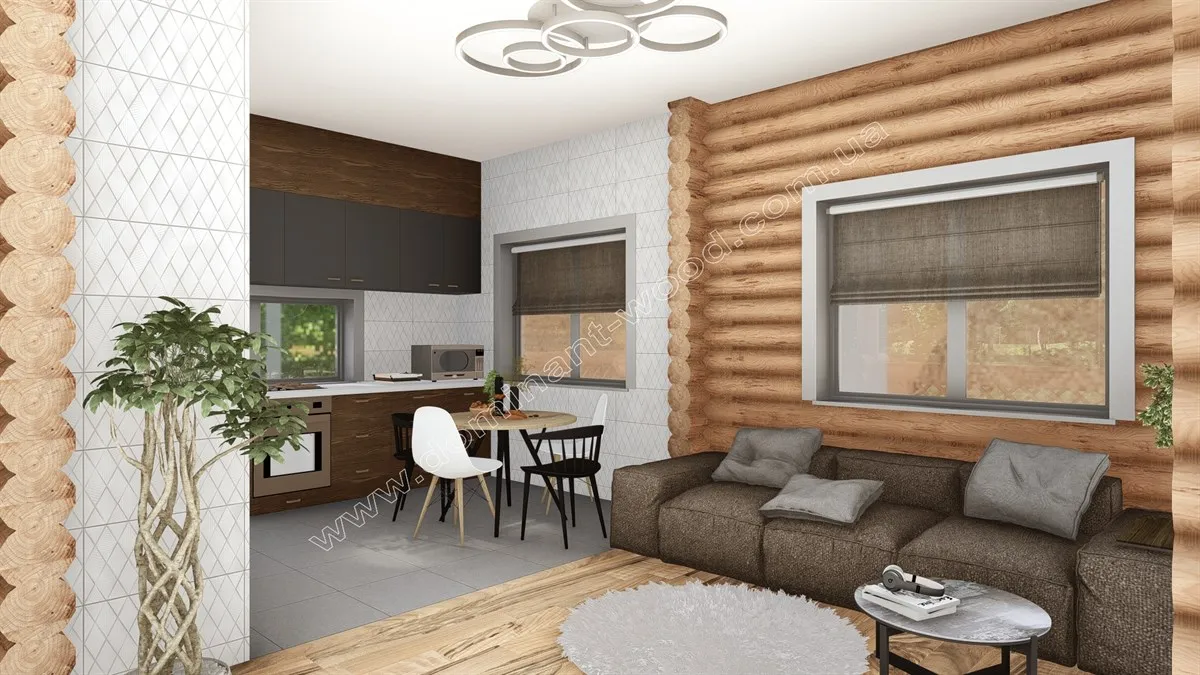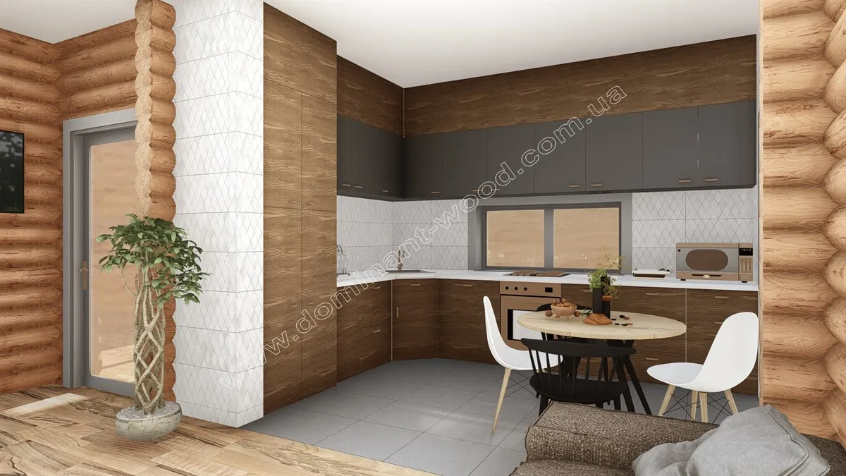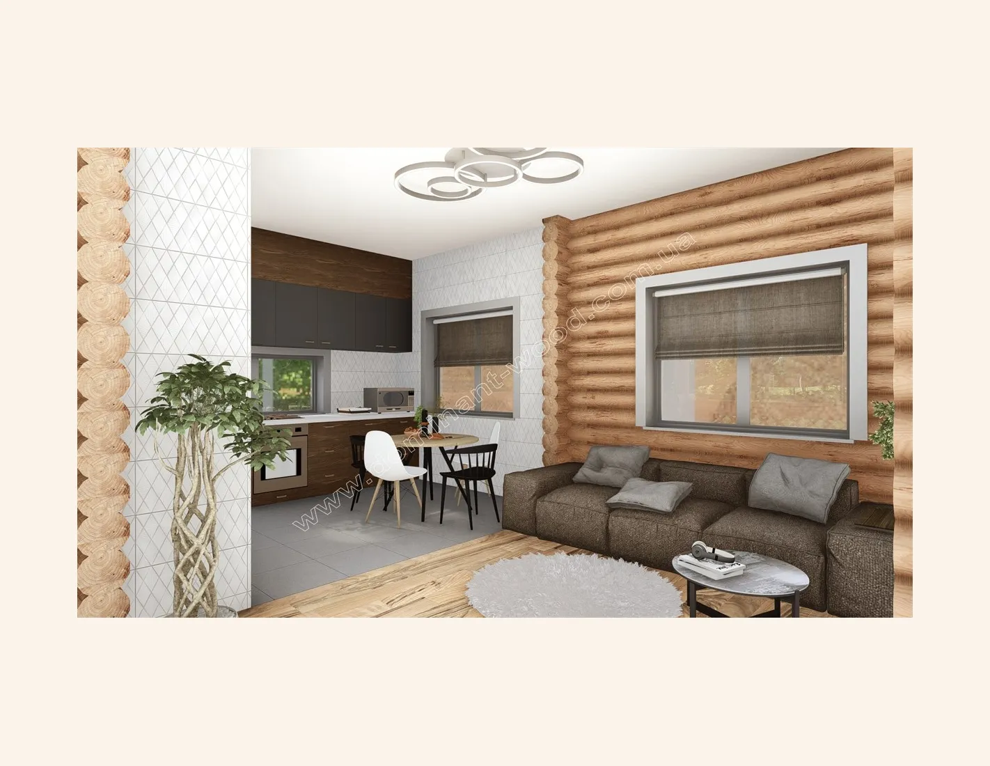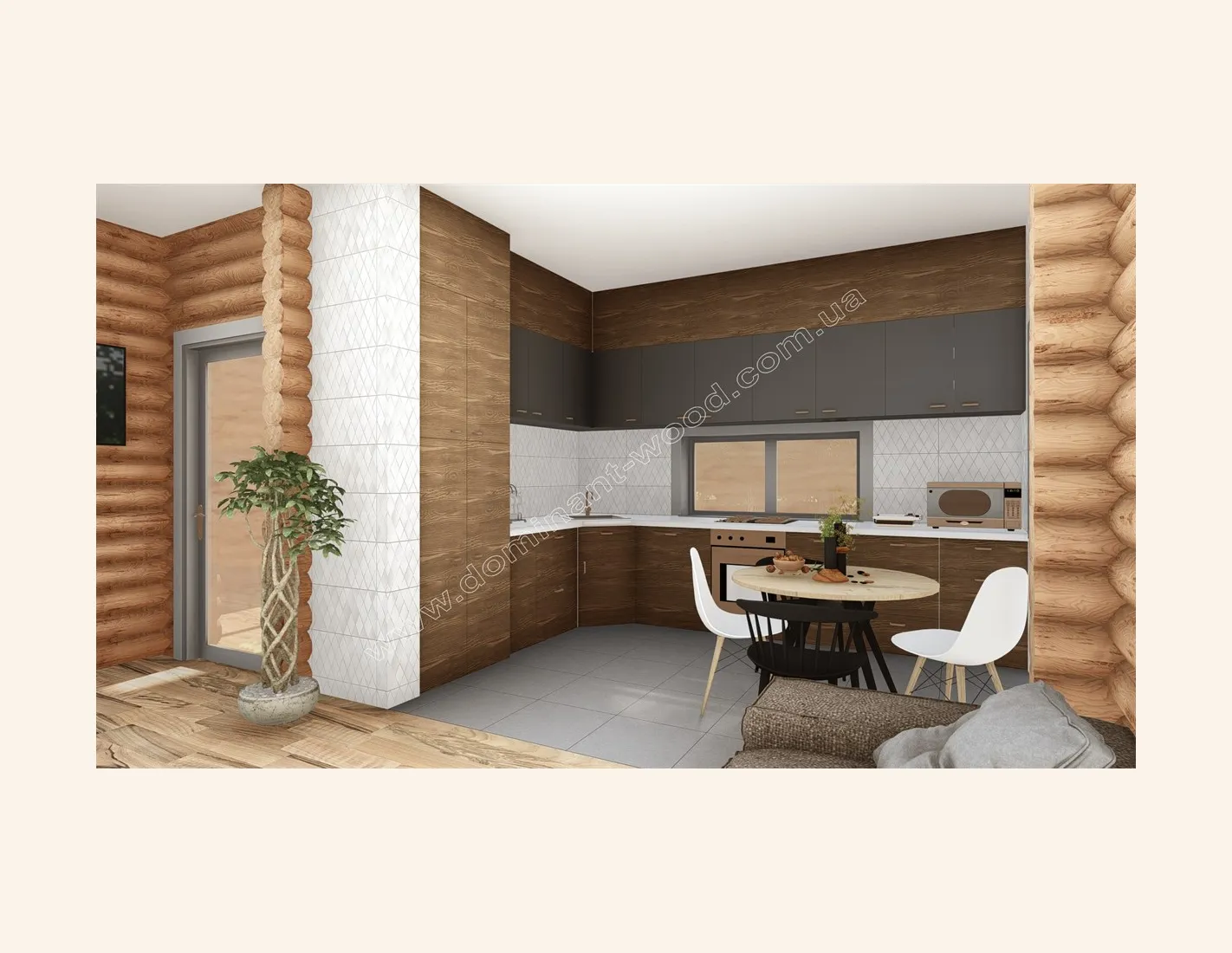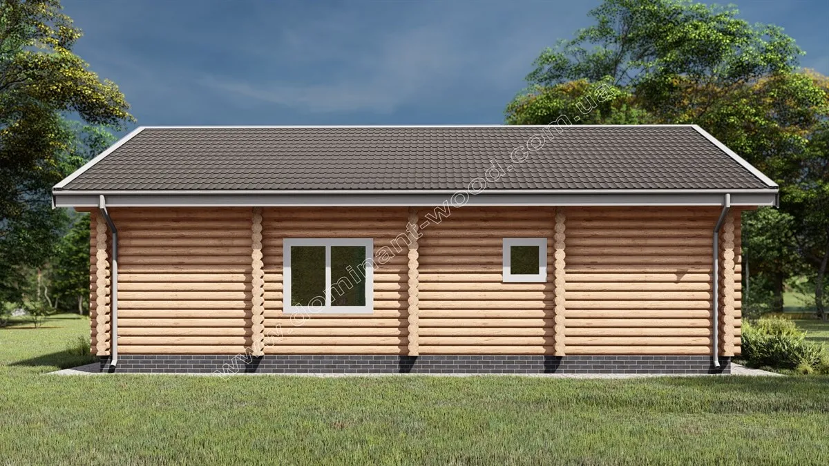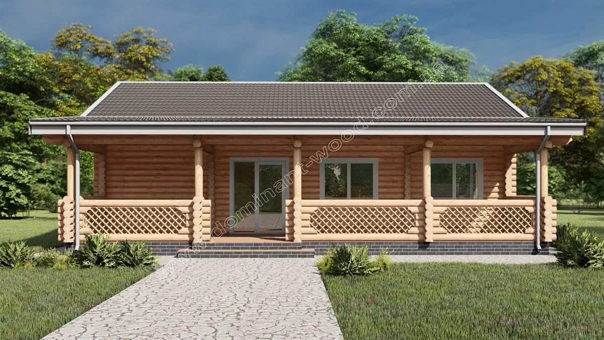 Проект будинку «Тресет» з оциліндрованих колод пропонує ідеальне рішення для тих, хто прагне забезпечити собі і своїй родині максимальний комфорт у заміському просторі. Цей гарний дерев'яний будинок, розроблений з урахуванням потреб сім'ї 4-5 мешканців. Проект включає три спальні по 12 м2, тамбур, хол, велику вітальню з кухнею більше тридцяти квадратів, ще й окремий, невеличкий кабінет на 8 м2. Тобто план будинку 10х12 м передбачає всі необхідні зони для комфортного проживання з врахуванням сучасних реалій, а також додаткові приміщення. Одноповерхове планування особливо актуальне для тих, хто бажає облаштувати житловий простір на одному рівні без зайвих переміщень по сходах.