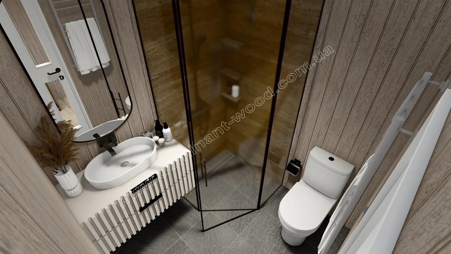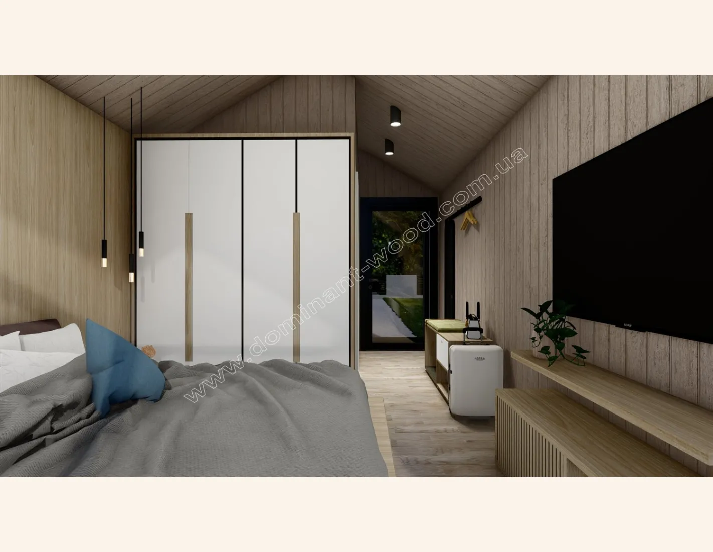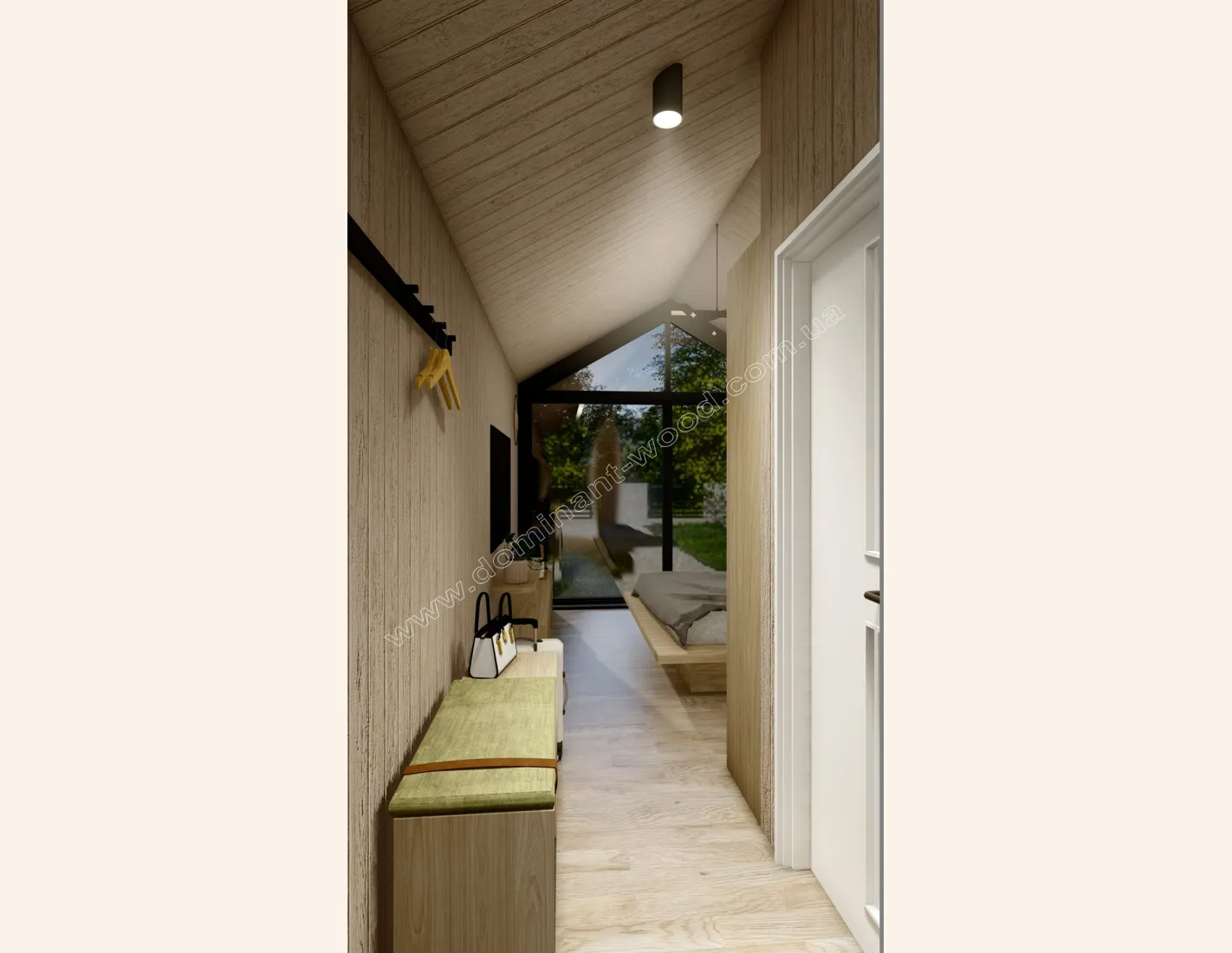 Пароізоляція з проклейкою швів та обрешіткою, сітка від гризунів, OSB 10 мм (Крона, Egger) + Гіпсокартон зі шпаклюванням та фарбуванням, дерев’яна вагонка фарбована
