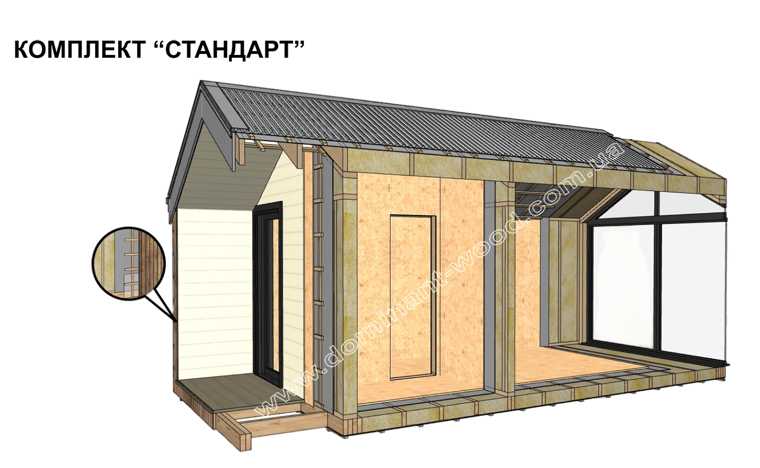 Каркасні конструкції виготовляються на власних виробничих потужностях компанії «Домінант», з використанням сучасних деревообробних станків. Імпортне, високоточне обладнання дозволяє нам високоякісно виконувати свою роботу. Каркаси складаються зі струганих, ретельно висушених балок 150х50 мм (сосна першого сорту). Ці балки застосовуються для зовнішніх каркасів.