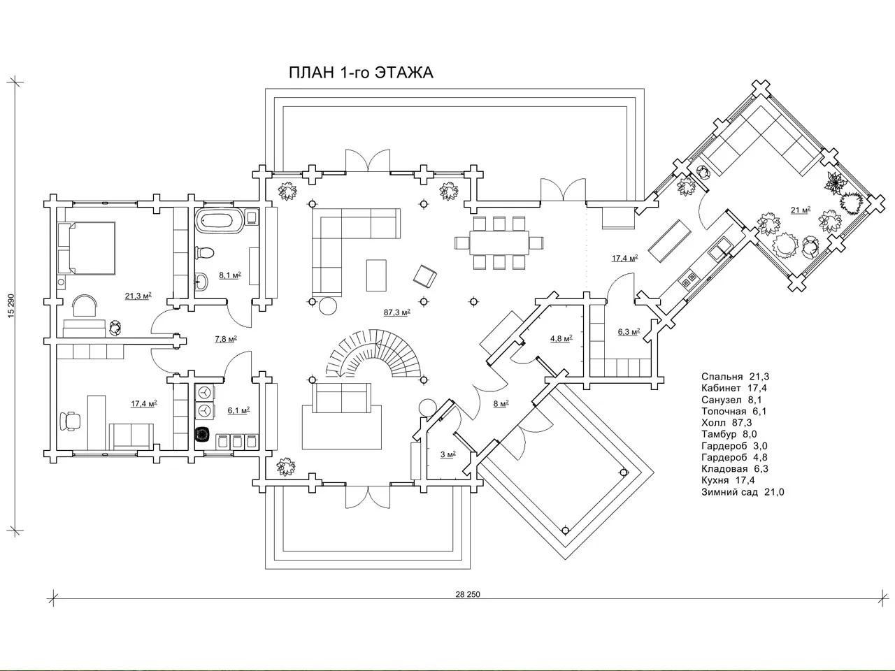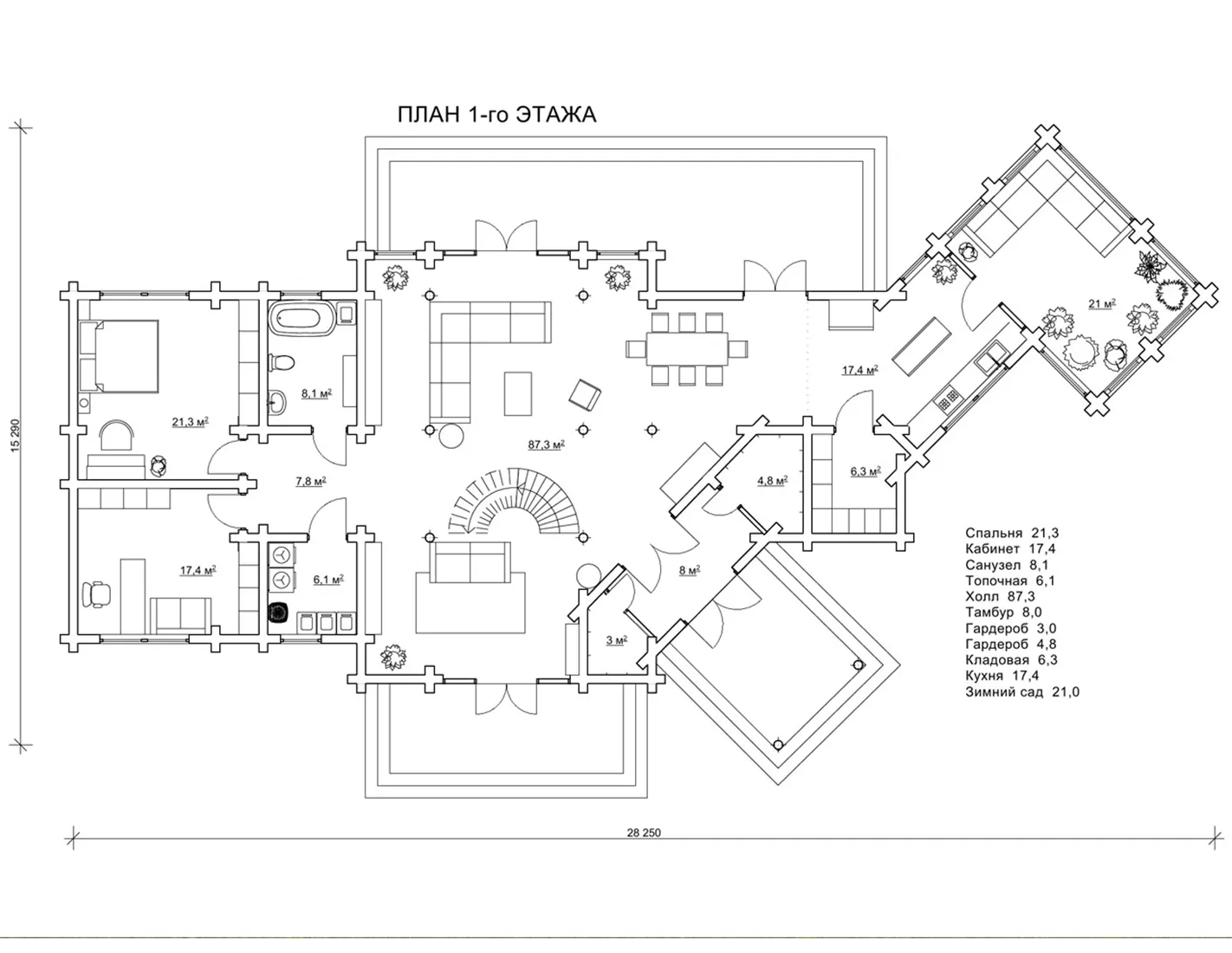 Двоповерхова садиба 391,7 м2 із зимовим садом - «Лодміра»