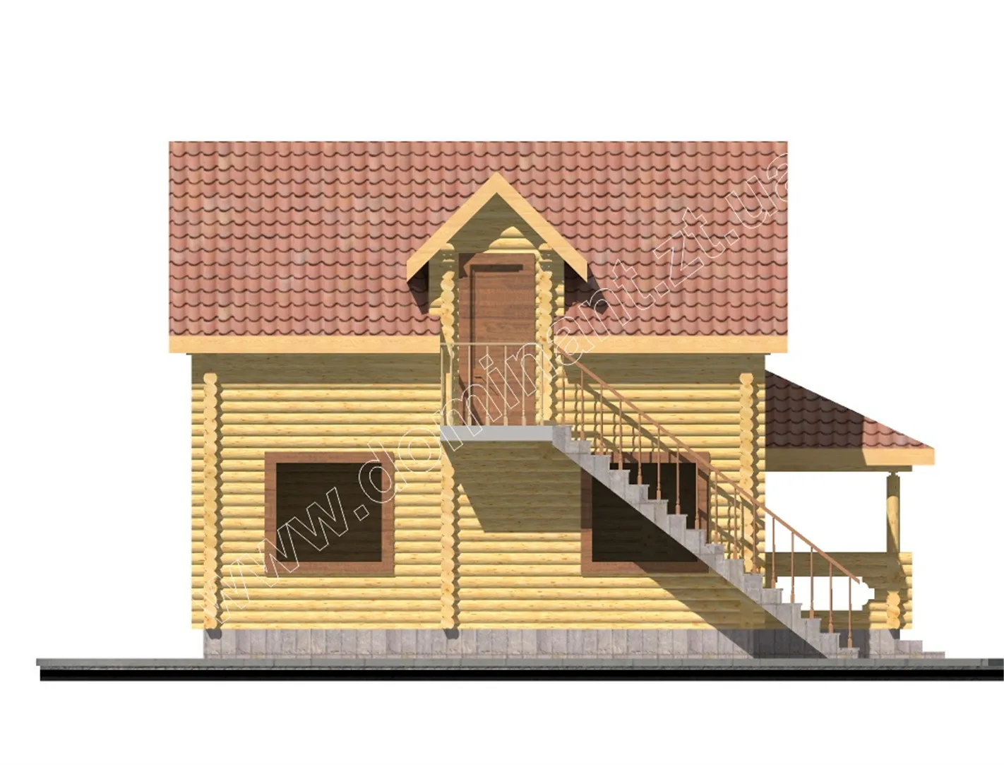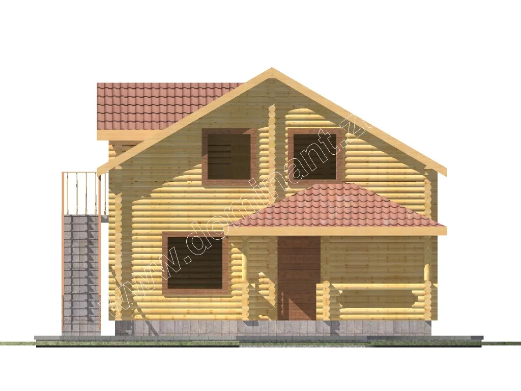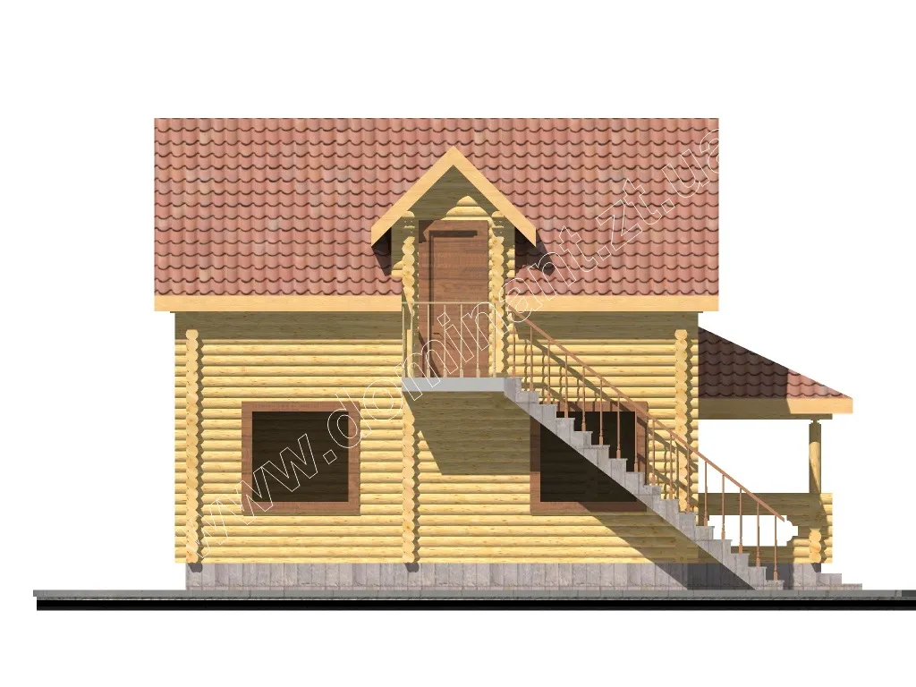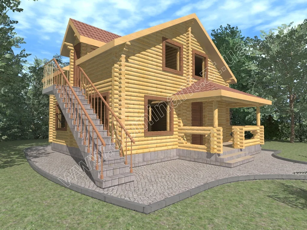 Представляємо оригінальний проект Бегонія дерев’яного будинку з лазнею з бруса зі сходами, що ведуть на другий поверх прямо з вулиці. Оригінальне рішення з розташуванням сходів на вулиці дає вам багато можливостей. По-перше, ви розмежовувати зону відпочинку і баню. Використовуючи проект в комерційних цілях, ви можете використовувати споруду як баню і окремо готельні номери. По-друге, використовуючи споруду в особистих цілях, ви можете використовувати котедж як гостьовий будиночок з лазнею. З огляду на все вищесказане, ви поєднуєте в одній споруді дві важливі функції - це відпочинок і розваги.