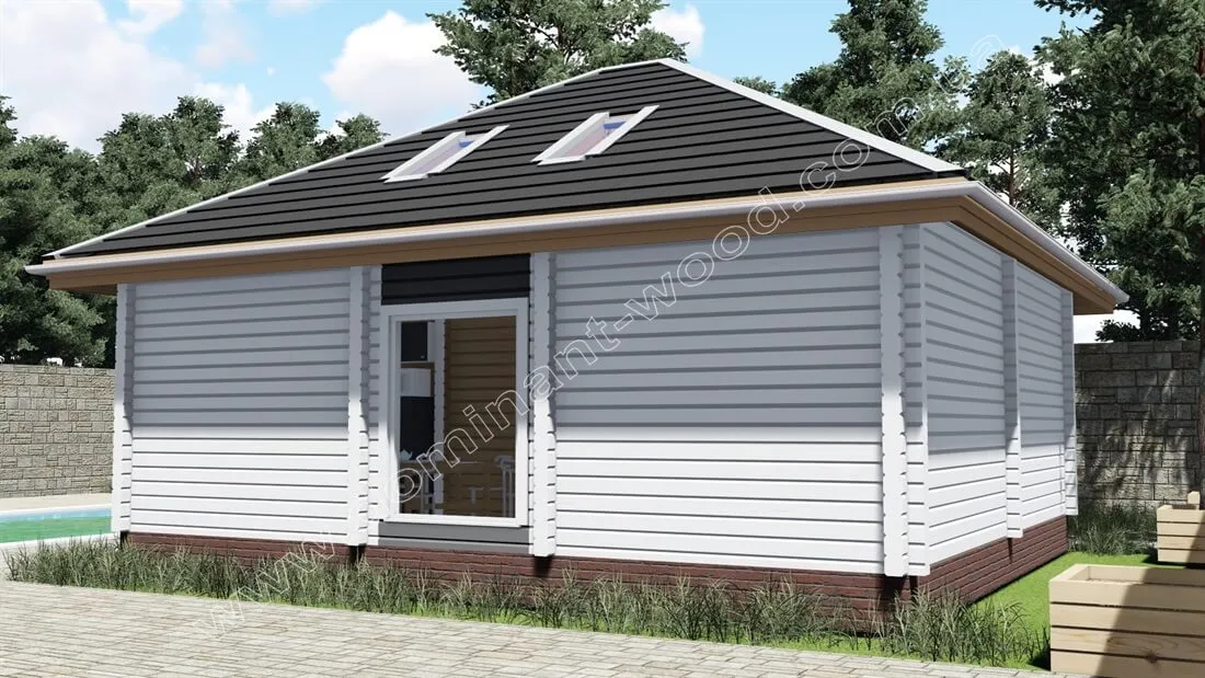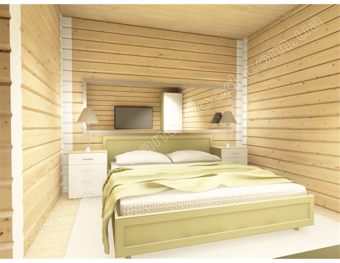 Двокімнатний будиночок «Шайна» з просторим холом і розкішною мансардою - це чудовий вибір проекту для будівництва комфортного житла. Готовий дерев'яний зруб з послугою монтажу на попередньо підготовлений фундамент ви отримаєте за доступну вартість базової комплектації, що порахована на цій же сторінці. Після установки дерев'яного корпусу за проектом «Шайна» у вас буде повна свобода дій щодо його подальшого облаштування, створення оригінального дизайну і фарбування в бажаний колір. З прикладами гарного інтер'єру в дерев'яному зрубі виробництва «Домінант» можна ознайомитися у відповідній статті на сайті.