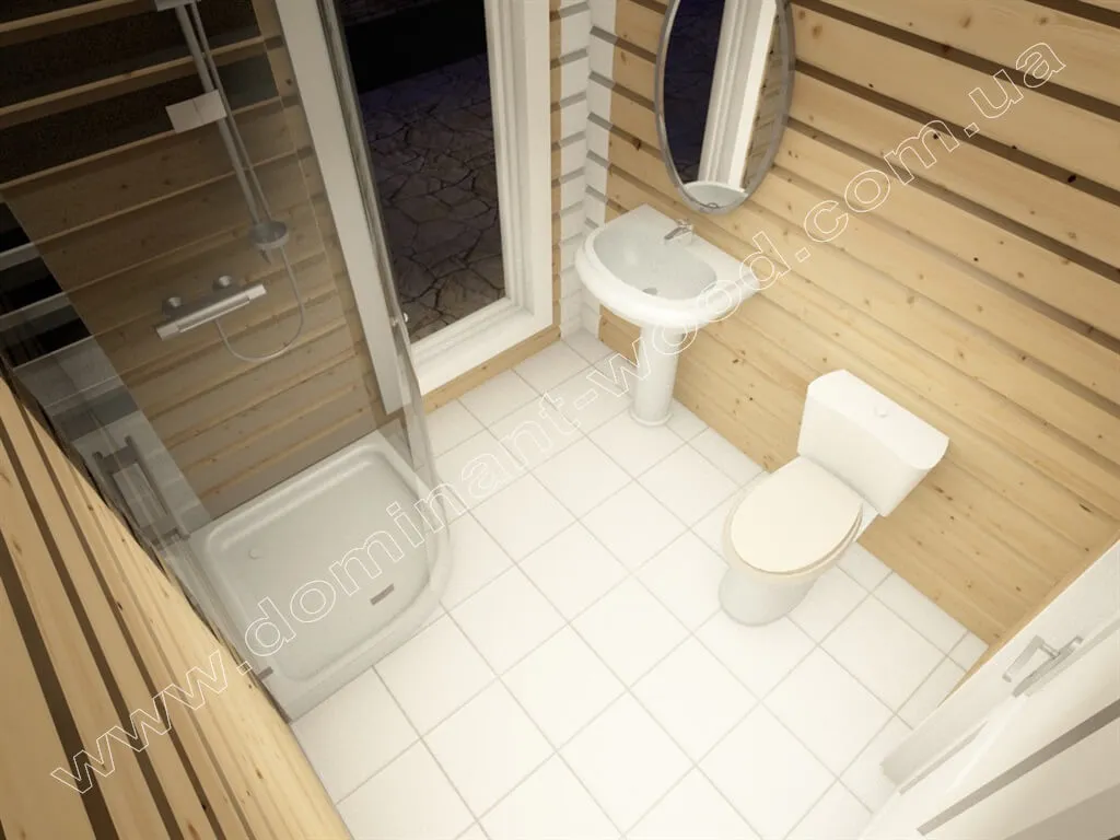Проект «Шайна» володіє компактними габаритами 8,4 на 7,5 м, що дозволяє розмістити будову на невеличкій території. Але за рахунок наявності мансарди корисна площа будиночка збільшується. Загальна площа дерев'яного котеджу становить 126,2м2. Це дуже просторий будинок з профільованого брусу з двома спальнями, який рекомендується для постійного, цілорічного проживання. Вхід в будиночок «Шайна» починається з невеликого ґанку розміром 5,6 м2. Далі слідує коридор, санвузол, кухня спальня і хол, з якого сходи піднімається на розкішну мансарду площею 63,1 м2. Тут можна заповзято організувати кілька функціональних зон, насолоджуючись широтою простору і мансардними вікнами, що виходять прямо в піднебесся.
