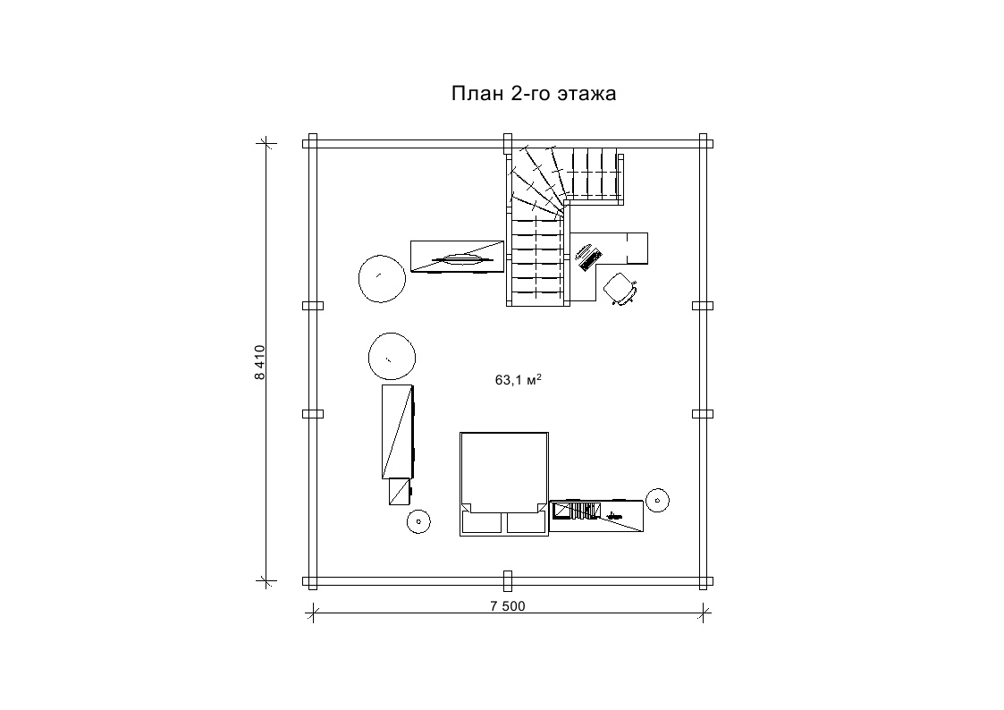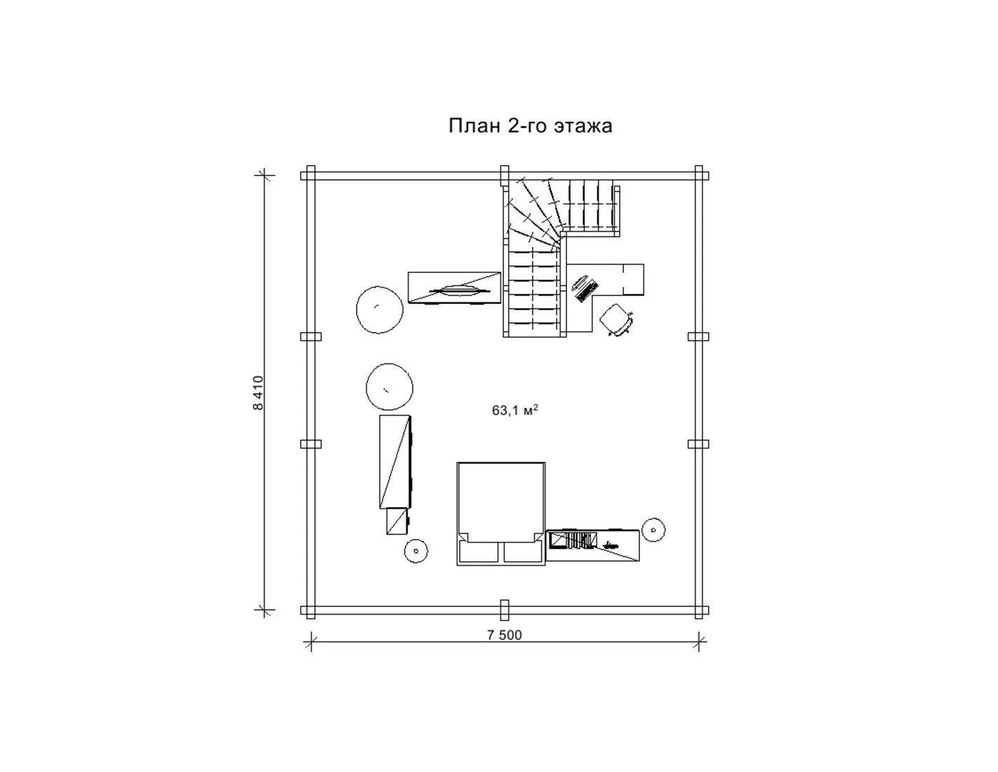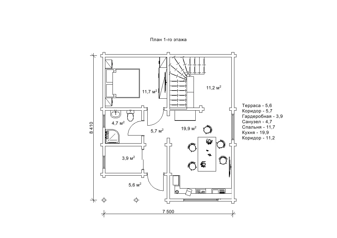 Проект дерев'яного будинку 8,4 на 7,5 м з мансардою «Шайна»