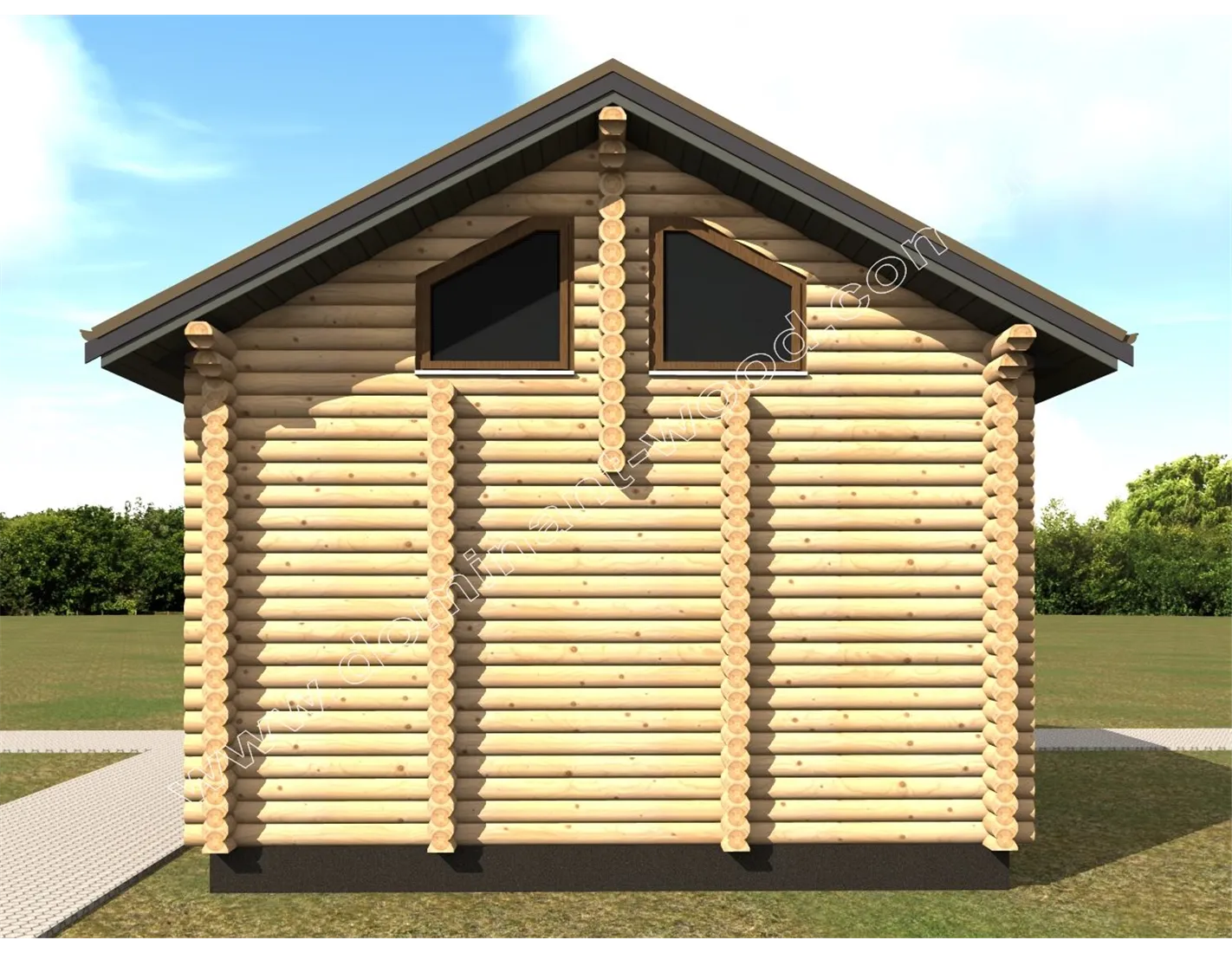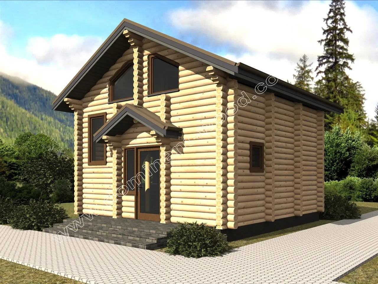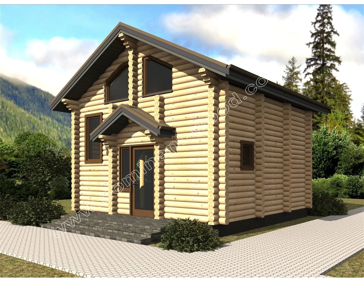 Ідеально симетричний і неймовірно привабливий, немов казковий котедж «Тергай», нагадує своїми рисами ляльковий дерев’яний будиночок. Квадратна форма будови під двосхилим дахом, невеликий козирок навісу над ґанком - нічого надто видатного, нічого зайвого, тільки витончений, класичний дизайн дерев’яного зрубу. Такий привабливий і невеликий дерев’яний котедж несе в собі оптимальне поєднання ціна/якість і являє собою не тільки красиву, але і багатофункціональну, і найголовніше, бюджетну будівлю.
