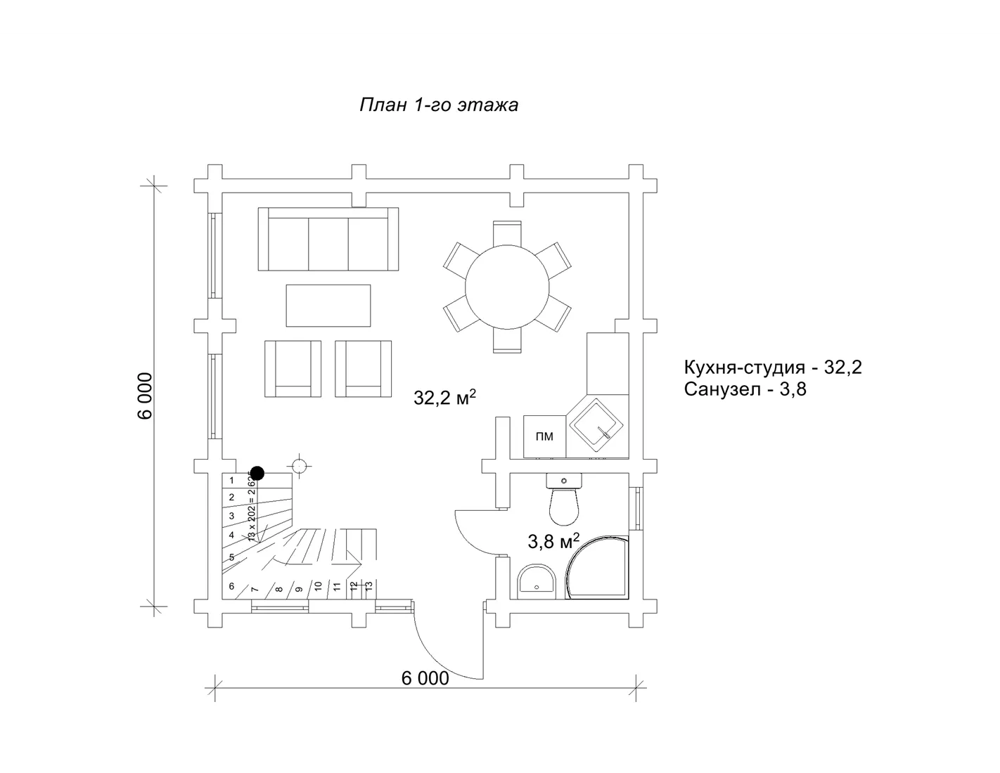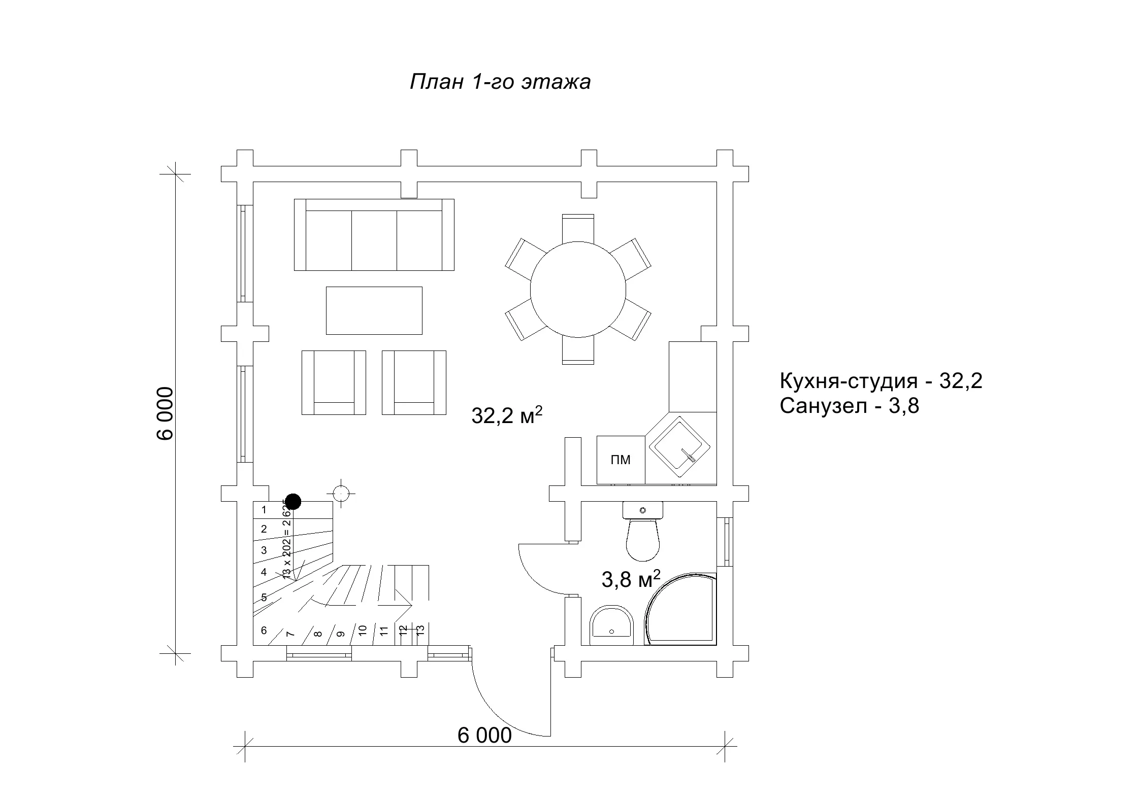 Планування двоповерхового котеджу 6х6 м «Тергай»