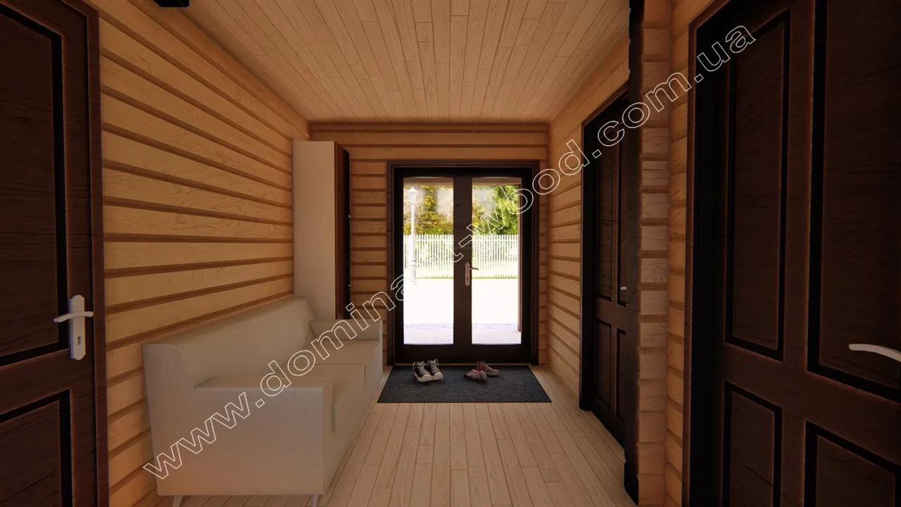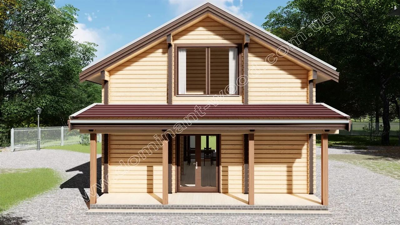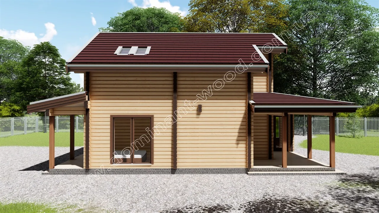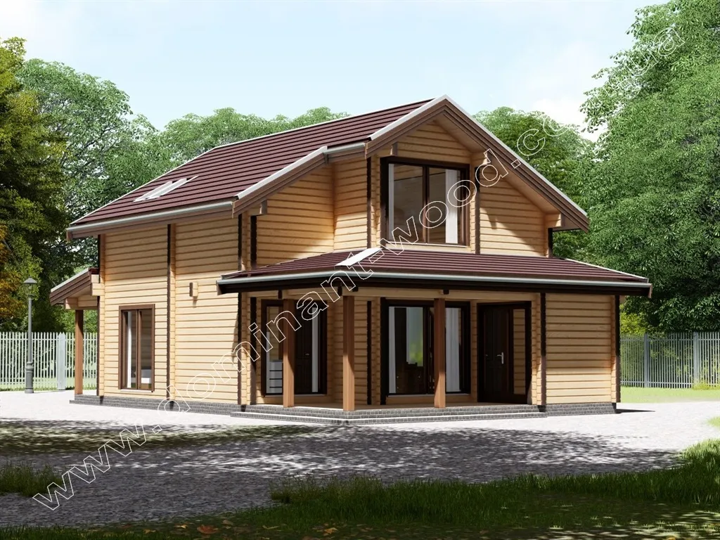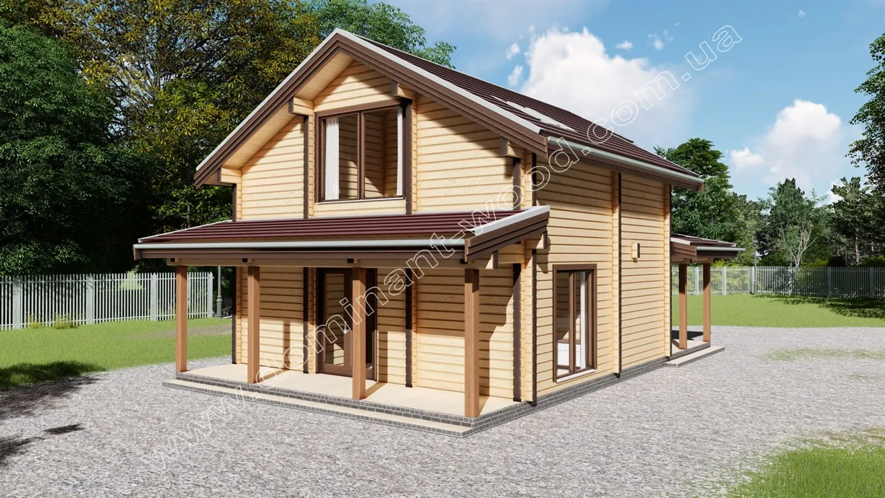Будівництво маєтку з брусу з трьома спальнями, площа 109,8 м2