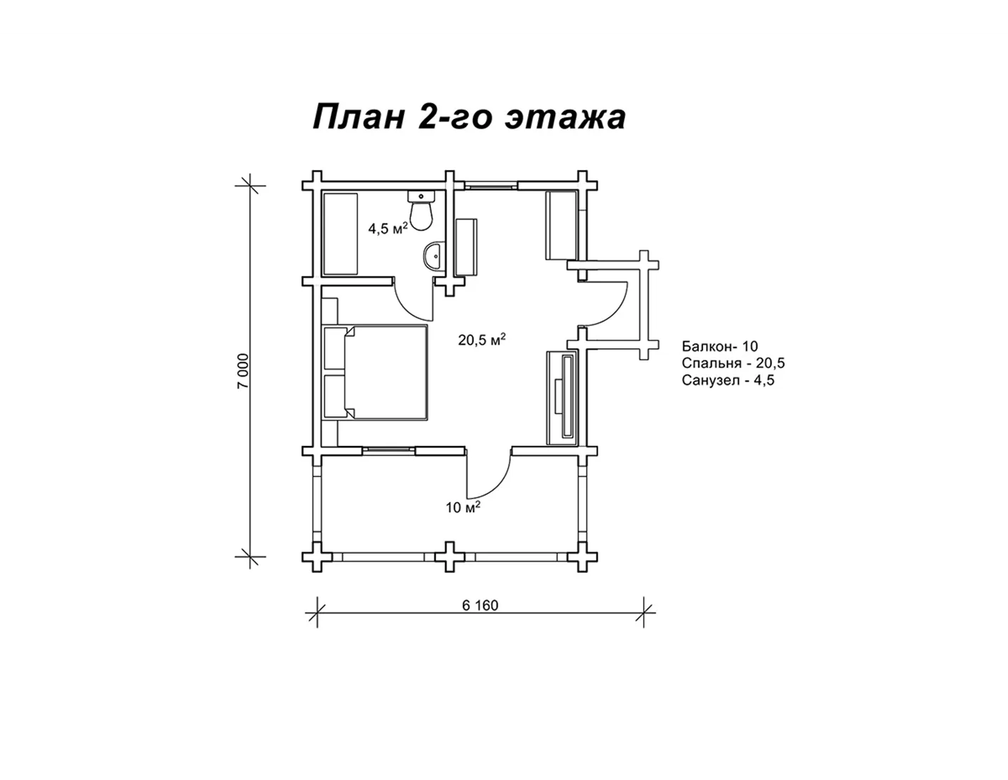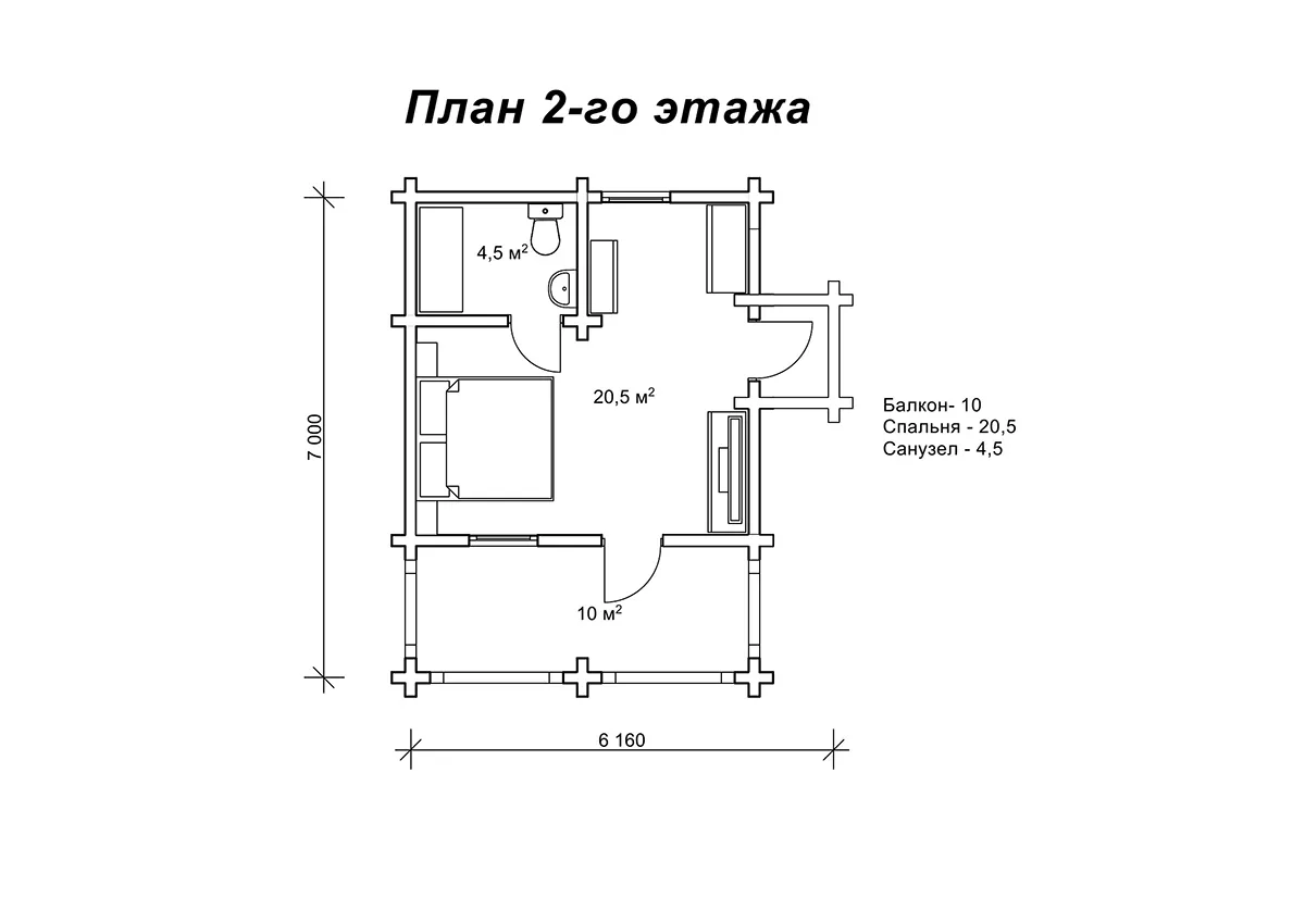 Планування внутрішніх кімнат проекту «Майлана» на першому поверсі містить одне студійне приміщення, що об’єднує зал з кухонною зоною, і санвузол. На другому поверсі знаходиться простора спальня на 20,5 м2. Параметри забудови: 7 на 6 м. Таке компактне планування дає можливість помістити проект котеджу навіть на невеликій площі. Як правило база відпочинку містить кілька таких котеджів, які можна доповнити дерев’яним рестораном і дерев’яної лазнею. І тоді ресторанно-готельний комплекс буде постійно затребуваний серед відвідувачів. Всі хочуть хоч на кілька днів опинитися далеко від щоденної міської метушні і зануритися в атмосферу природи і краси.