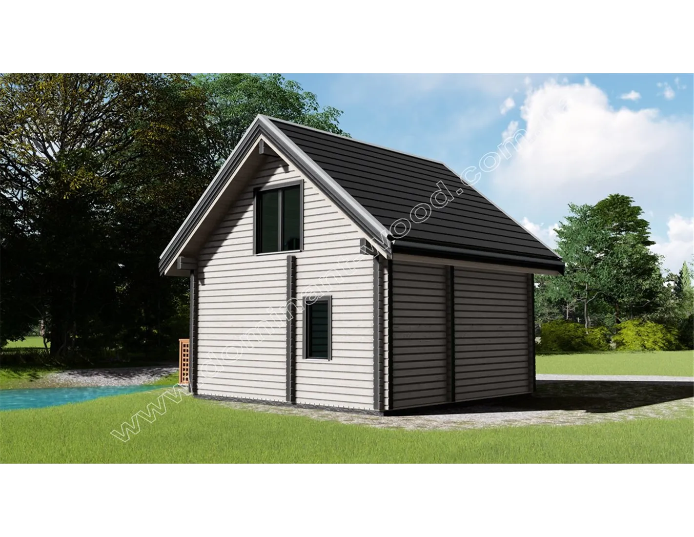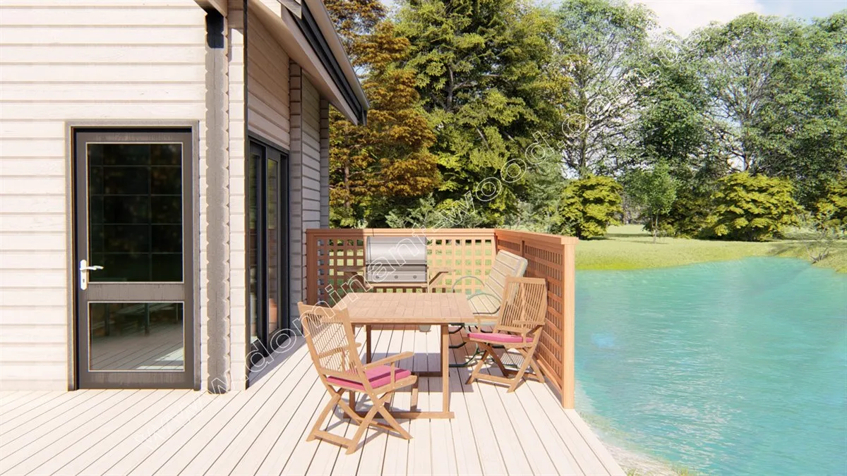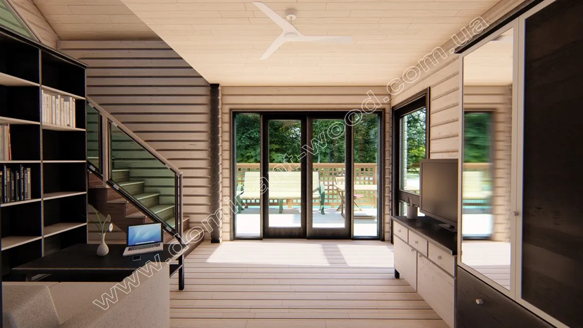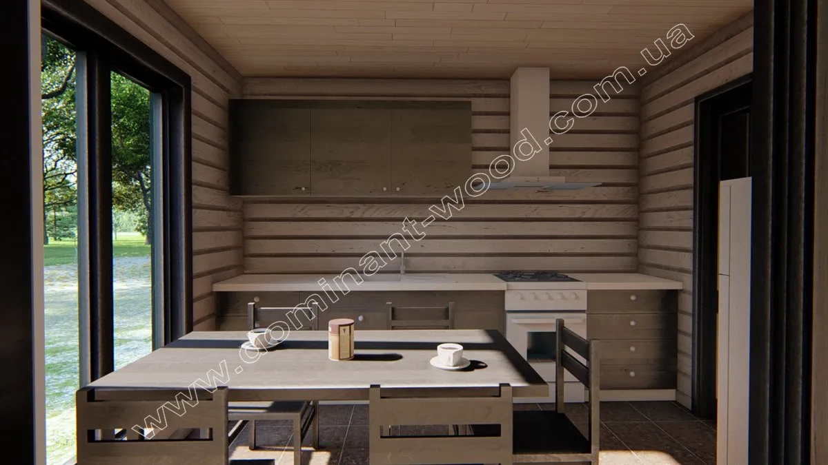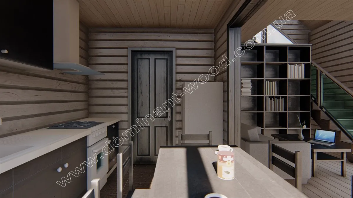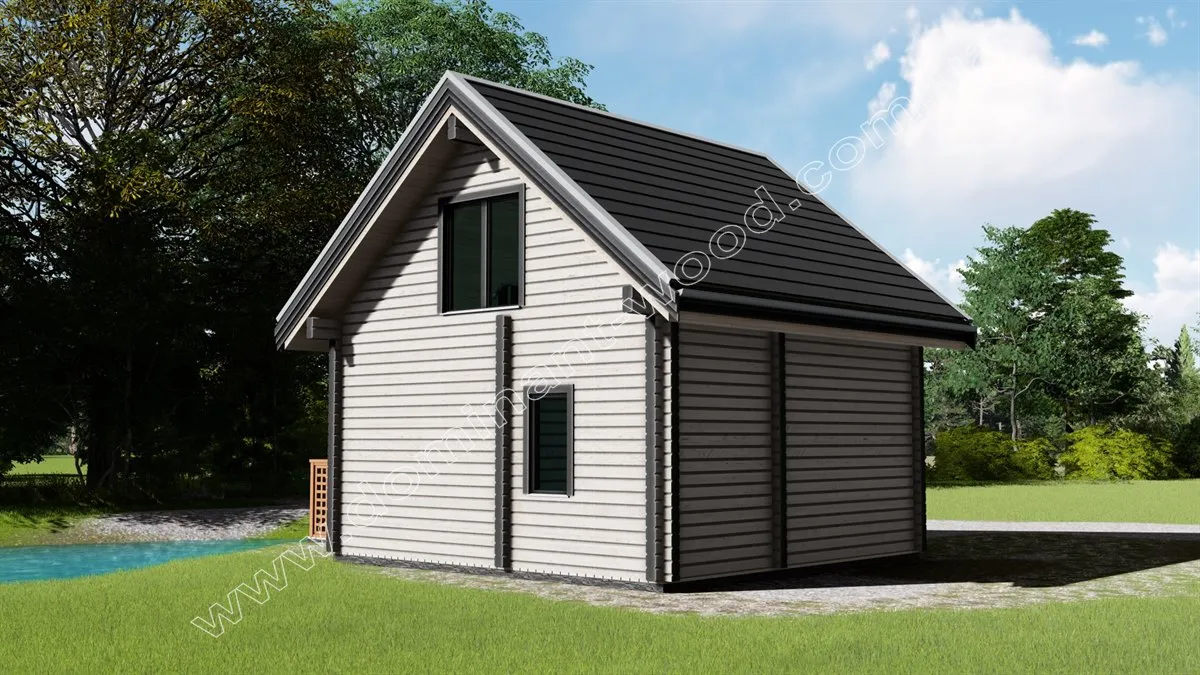 Бази відпочинку з дерев’яних котеджів завжди затребувані серед відпочиваючих завдяки сприятливому впливу корисних деревних фітонцидів. Час, проведений, в гостьовому котеджі «Домарі» стане по-справжньому цілющим. На першому поверсі проекту розташовується зал зі сходами, кухнею та санвузлом. Другий поверх повністю складається з просторої спальні розміром 26 м2. Дерев’яний зруб «Домарі» являє собою екологічно чисту і надійну споруду з сухого, профільованого бруса, який відомий своєю стабільністю і надійністю. Простота і лаконічність обрисів будиночка обумовлює його економічність і привабливість, як для бажаючих побудувати комерційний об’єкт, так і для тих, хто мріє придбати максимально комфортну дачу.