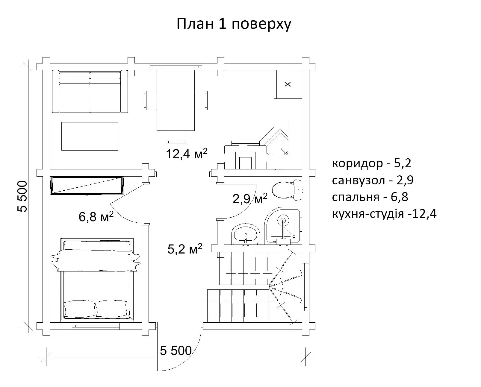 Проект теплого котеджу 5,5х5,5 м на дачу