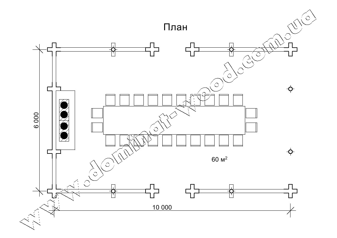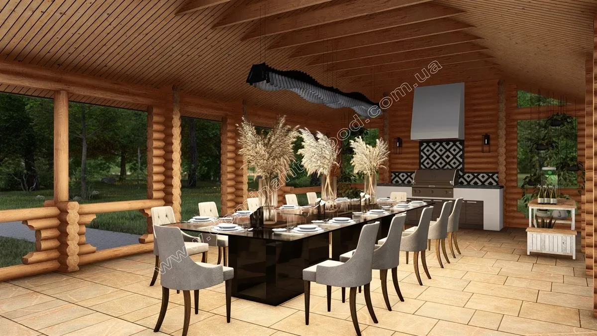 Проект павільйону 6 на 10 м з колод «Поляна»