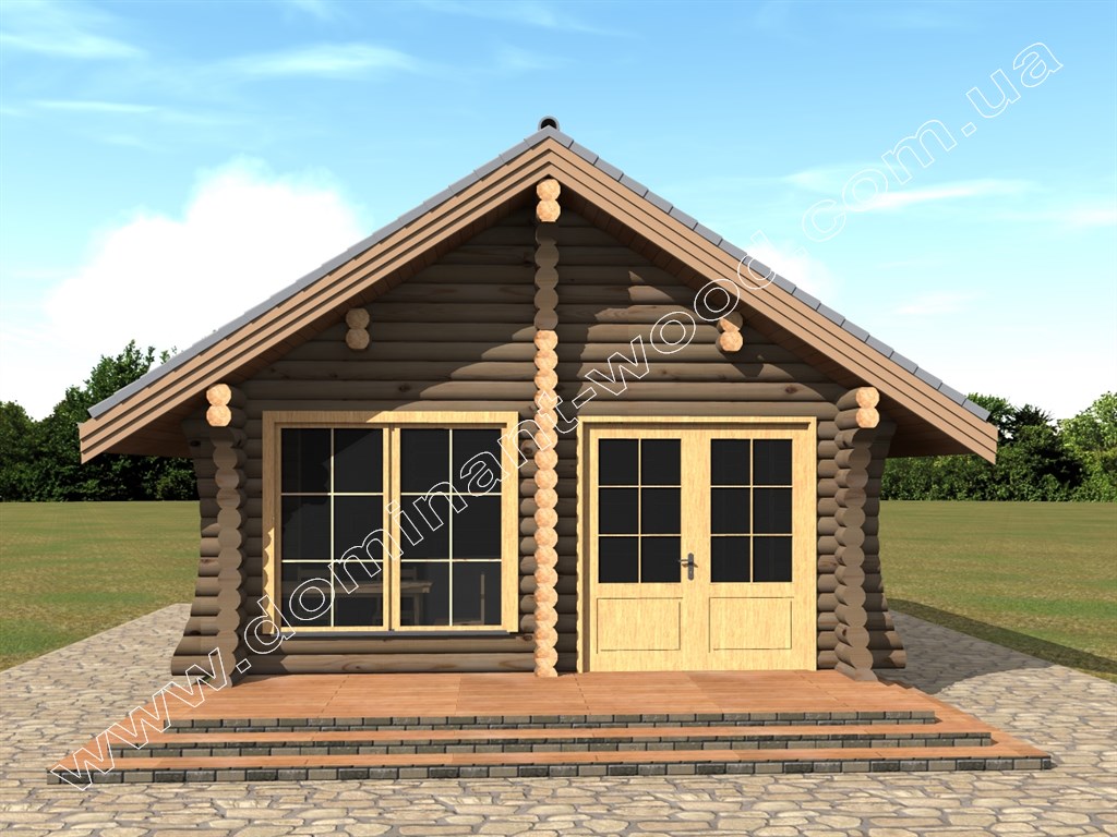 Мініатюрний, дуже привабливий, будиночок «Драгут» оформлений вишуканими декорами в стилі казкової хатинки. Ця невелика споруда поміститься навіть на дуже маленькій ділянці, гармонійно доповнюючи і прикрашаючи її. На окрему увагу заслуговує велике панорамне вікно на головному фасаді проекту «Драгут». Воно дозволить не тільки насолоджуватися внутрішнім комфортом приміщення, а й милуватися навколишньою природою, не виходячи на вулицю. Будиночок з дерева забезпечить затишок на дачі або в саду, стане чудовим місцем для прийому гостей, які гідно оцінять красу дизайну і приємну атмосферу дерев’яного соснового зрубу!
