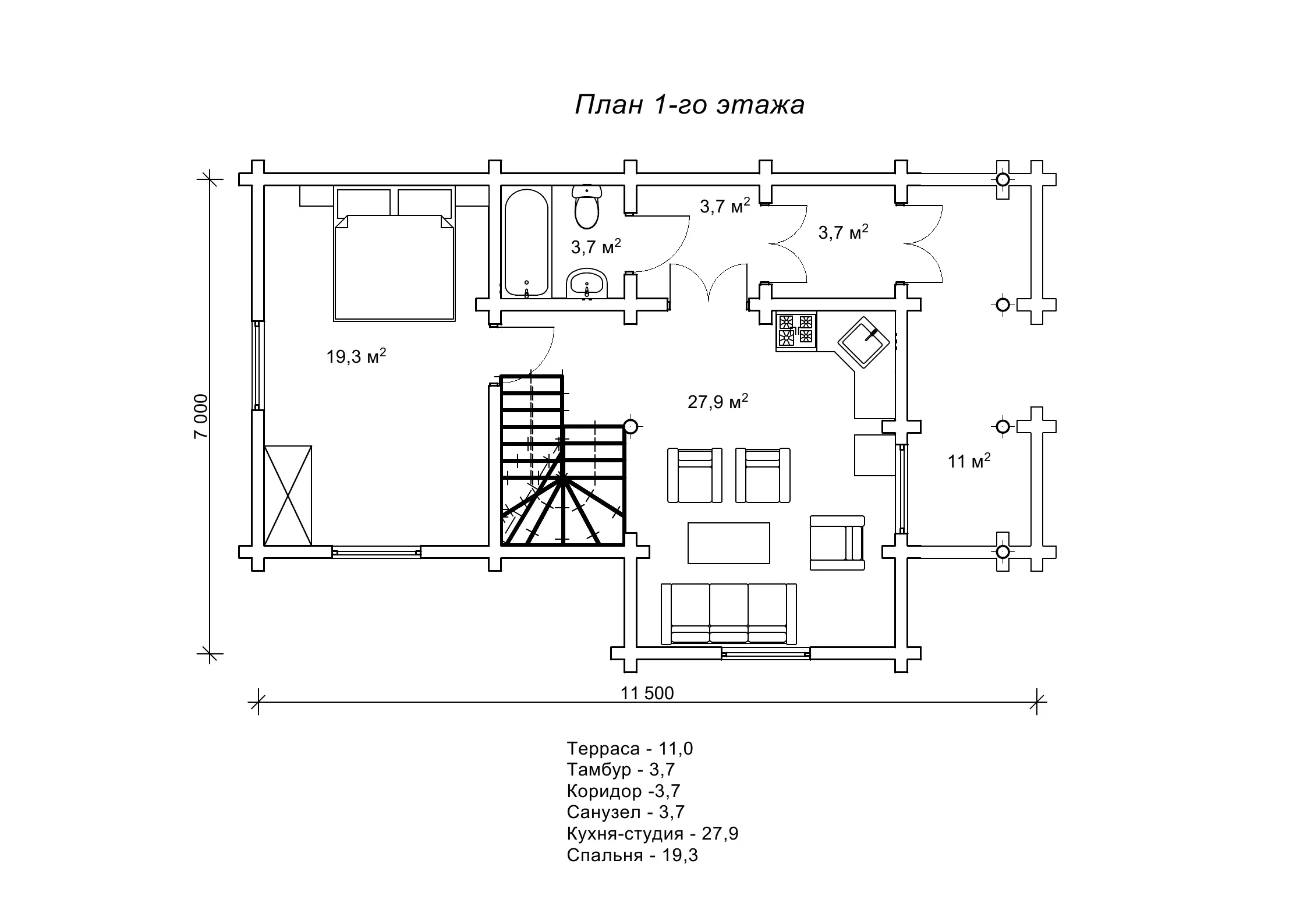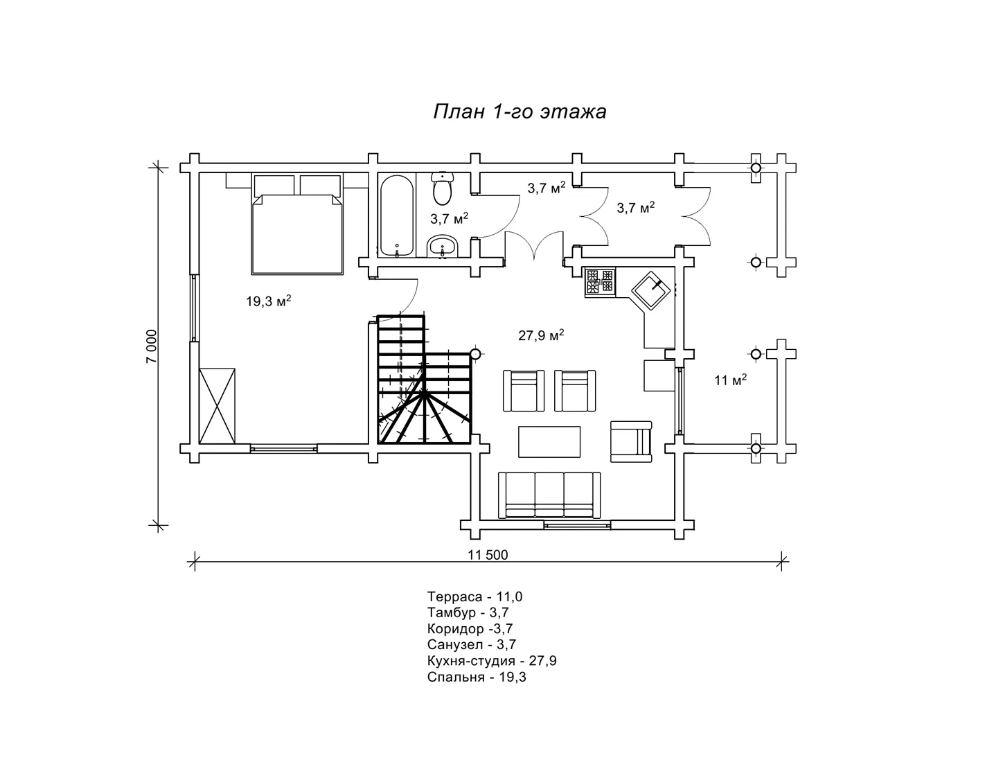 Дерев`яний будинок 7х11,5м недорого зі зрубу, ціна - «Айстра»