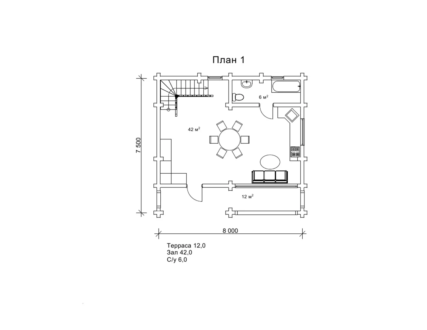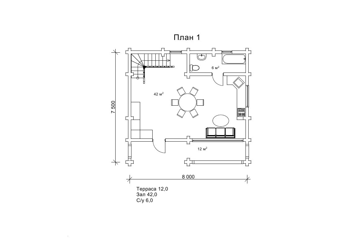 зал (м²)42
