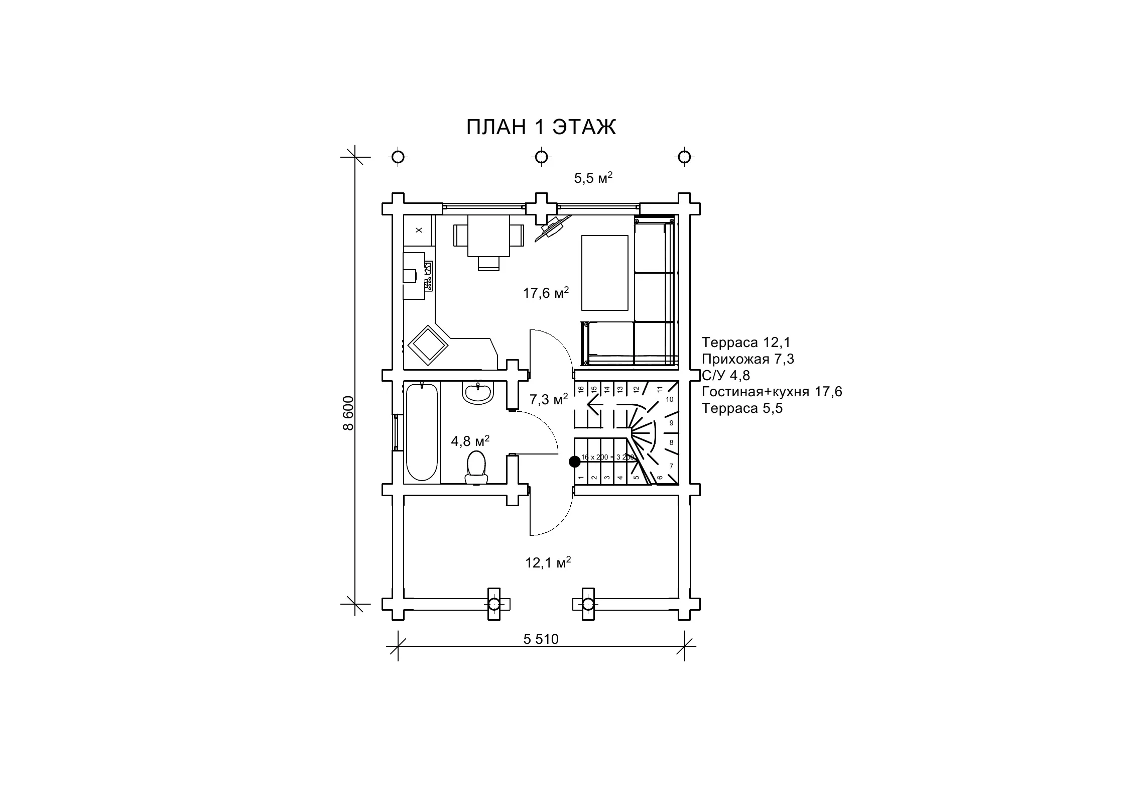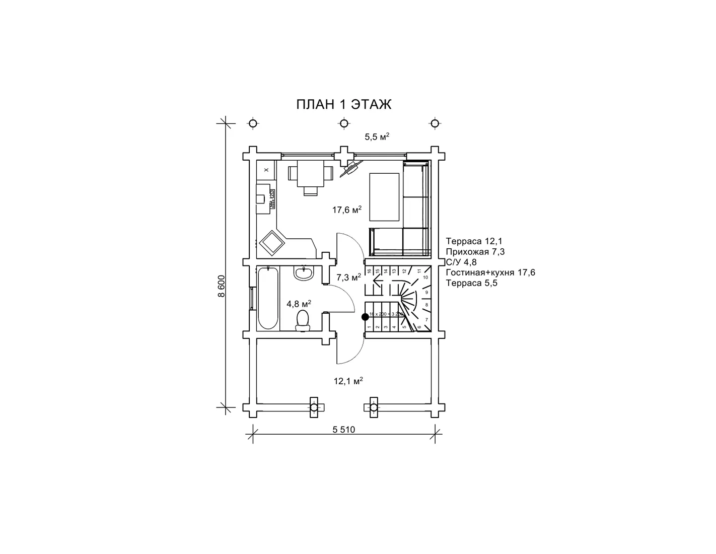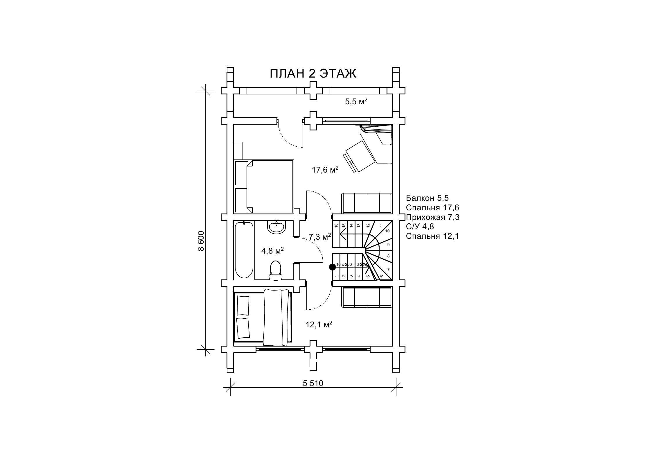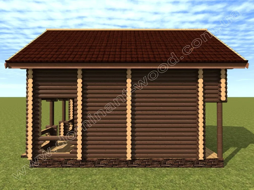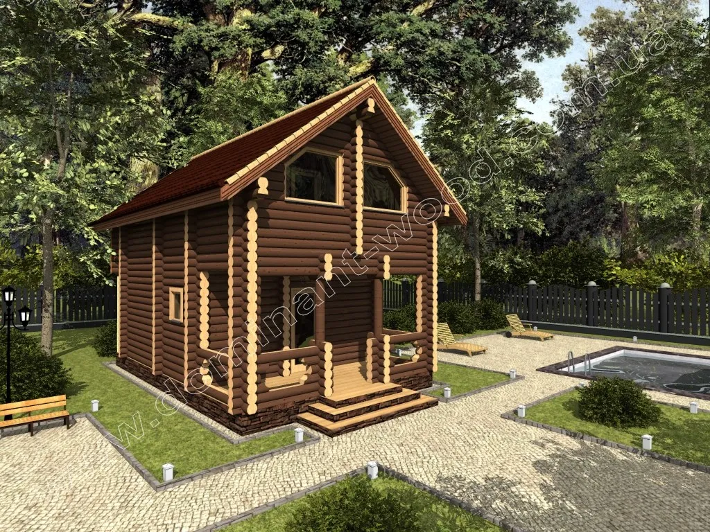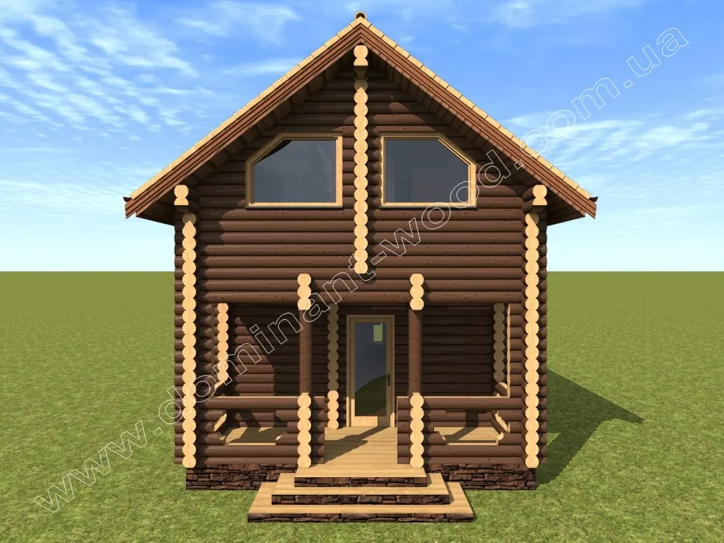 Мальовничий і схожий на казковий будиночок Гордож dominant-wood.com.ua/uk/proekty/208-gordozh є яскравим втіленням класичної краси дерев’яного зрубу з оциліндрованого бруса. Приємні для очей округлості колод складаються в ідеальну геометрію. Затишна, невелика тераса додає будиночку привітності і тепла. Розглядаючи внутрішнє наповнення котеджу Гордож, ви переконаєтеся, що розроблений в компактних розмірах 8,6 на 5,5 м проект володіє великою корисною площею і є дуже містким.